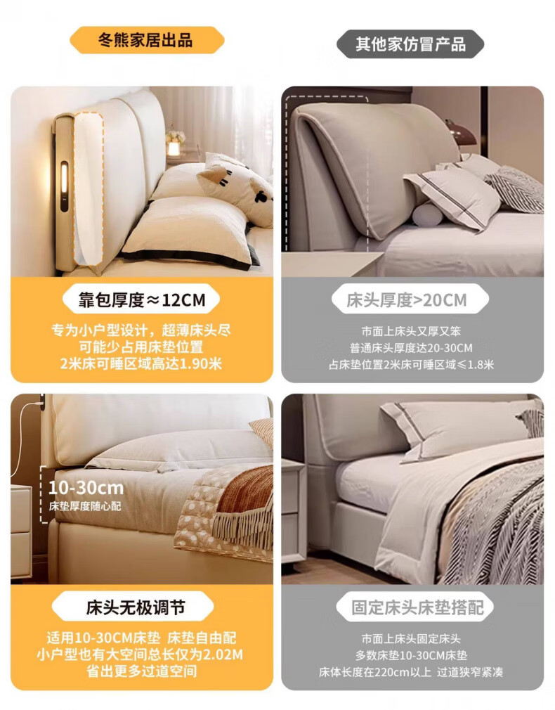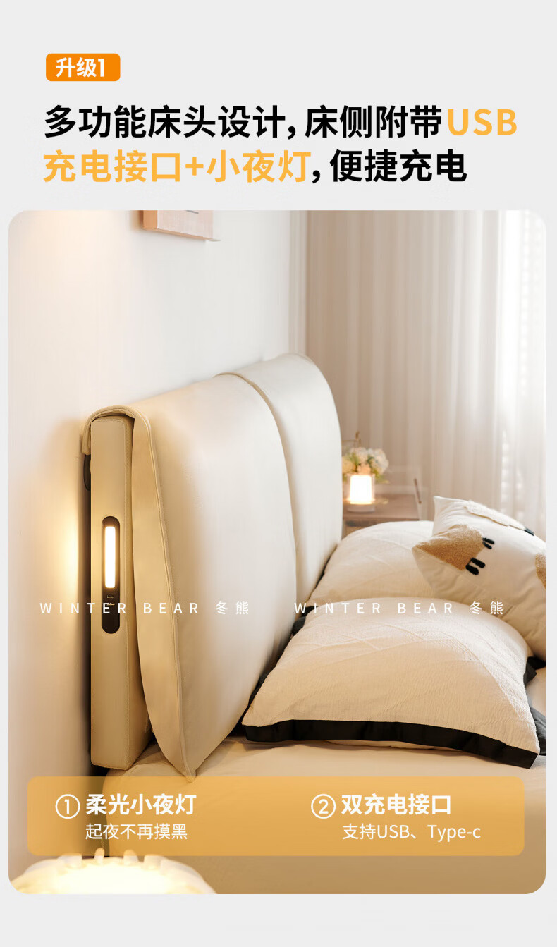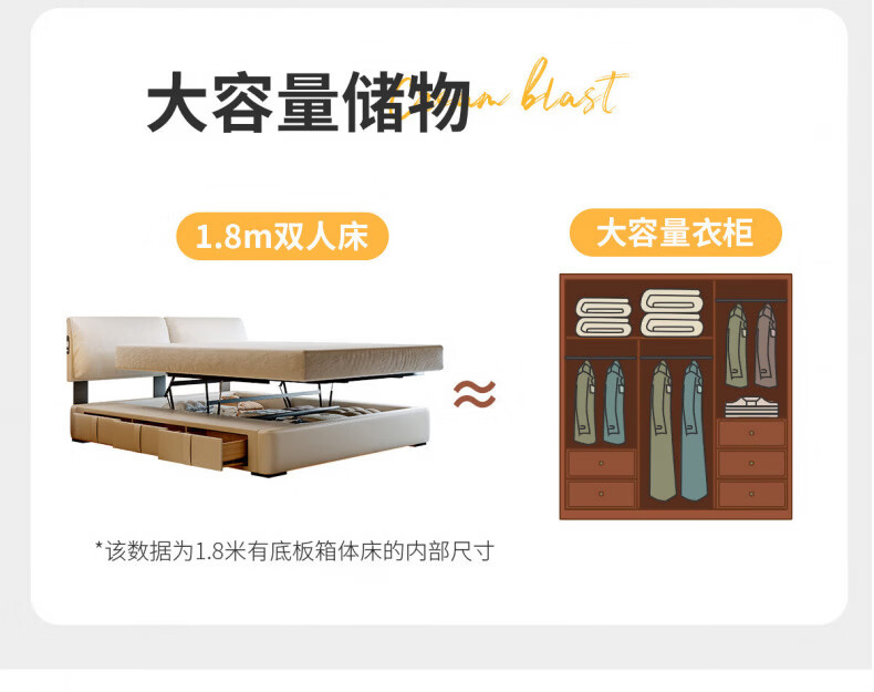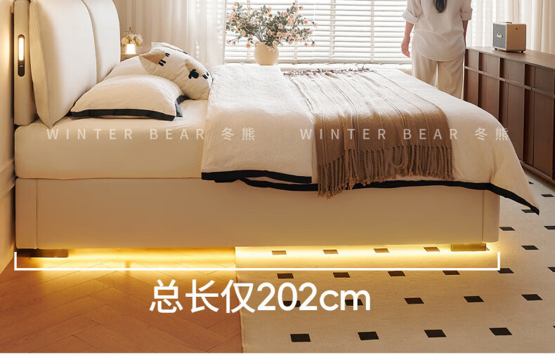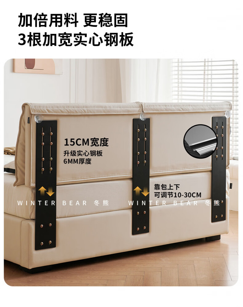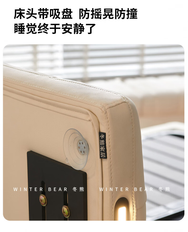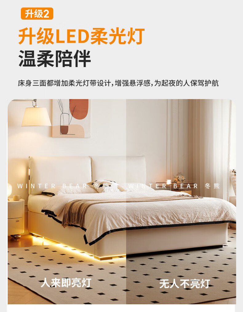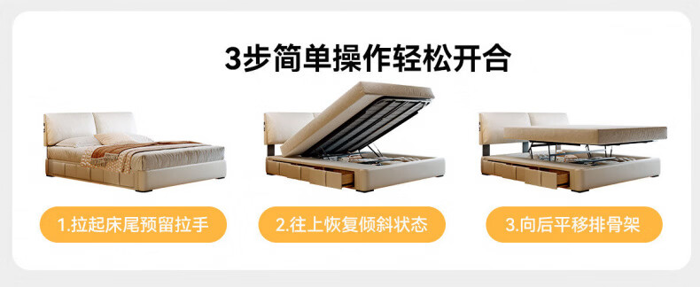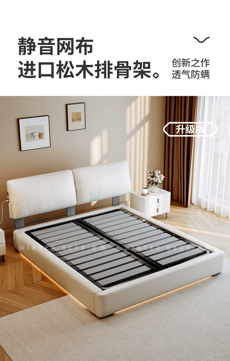 Dongxiong Ultra-Thin Leather Bedside Bed Master Bedroom Small Apartment Adjustable Double Elephant Ears High Box Storage Translation Bed Smart Version Imported Cowhide/All Solid Wood Beech Rib Frame 1500mm*2000mm Electric Translation Storage Structure