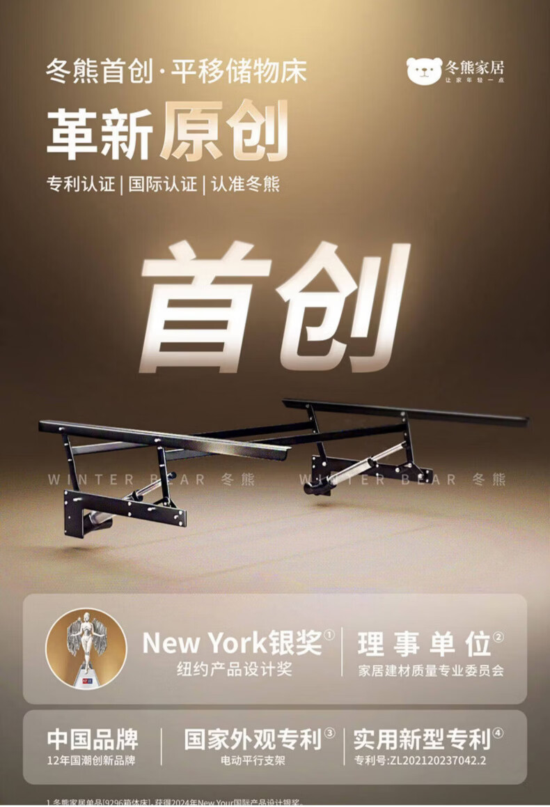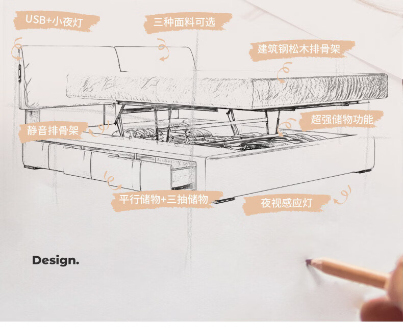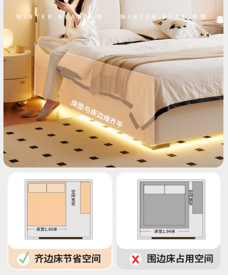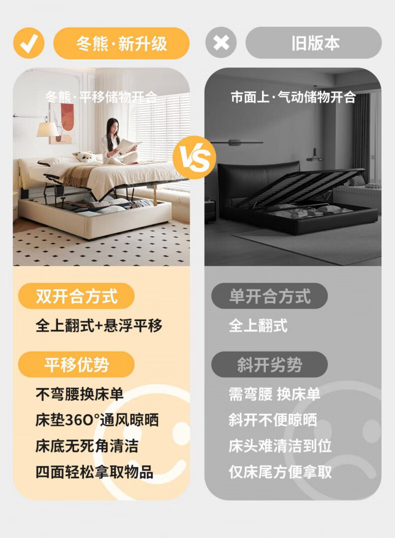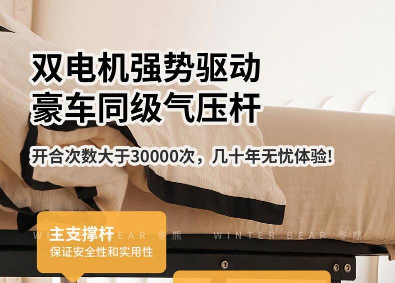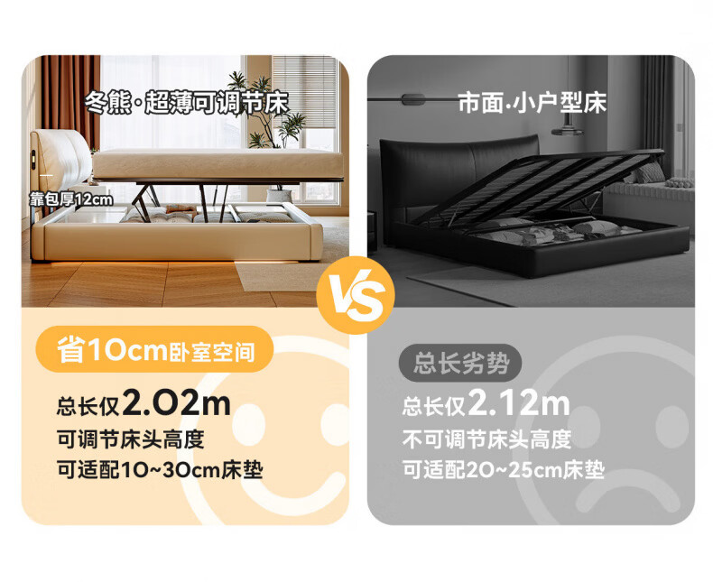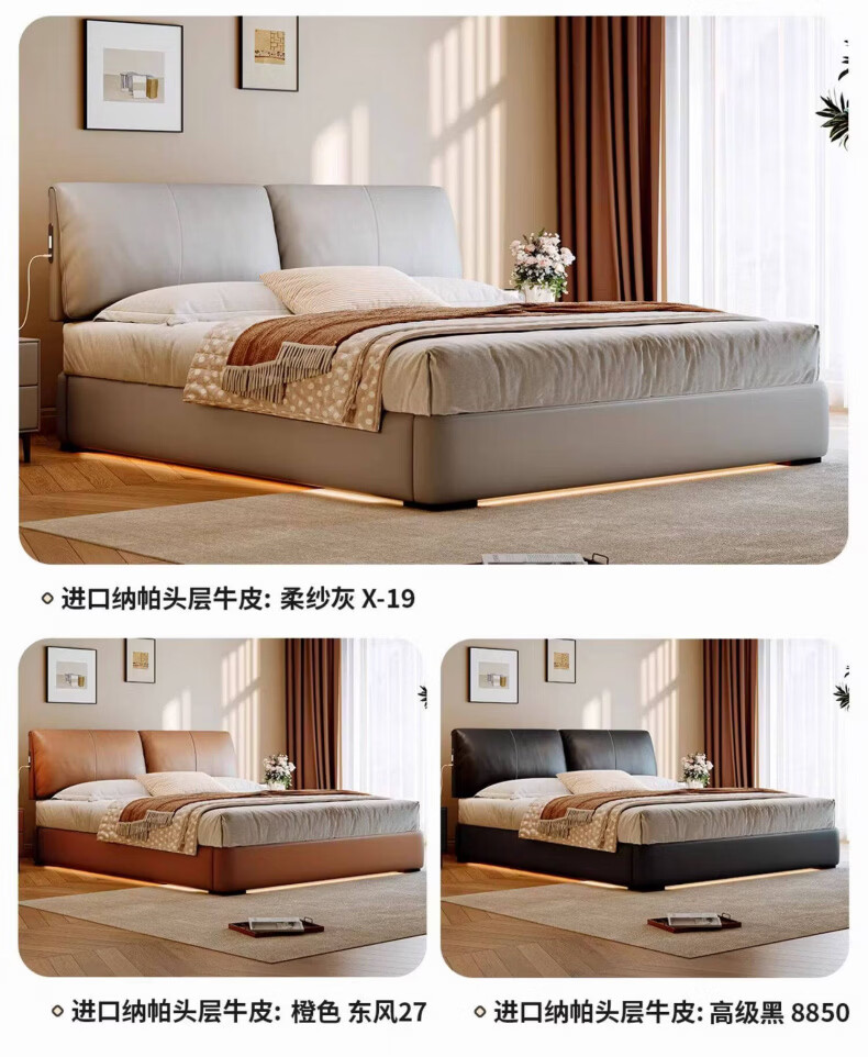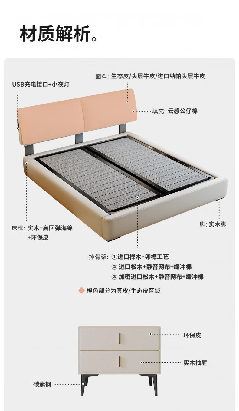 Dongxiong Ultra-Thin Leather Bedside Bed Master Bedroom Small Apartment Adjustable Double Elephant Ears High Box Storage Translation Bed Smart Version Imported Cowhide/All Solid Wood Beech Rib Frame 1500mm*2000mm Electric Translation Storage Structure