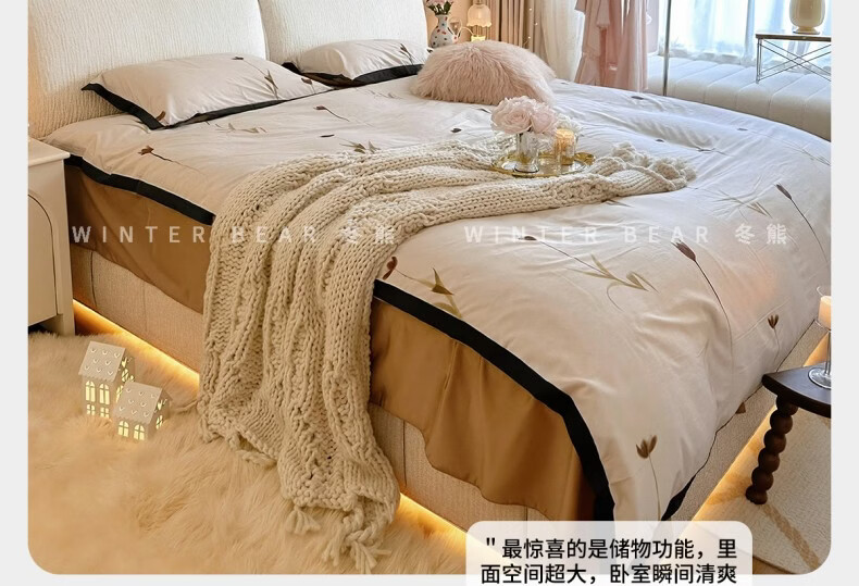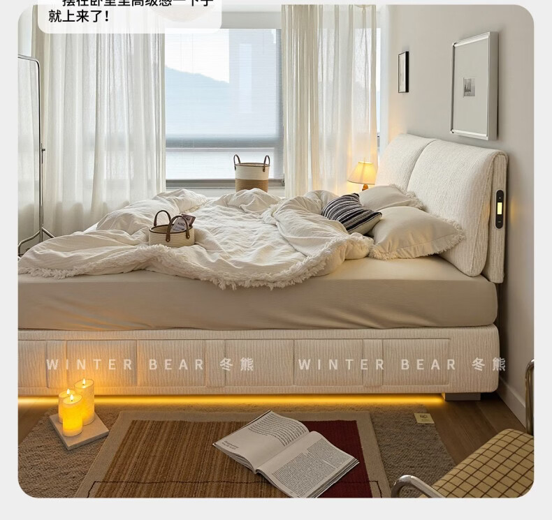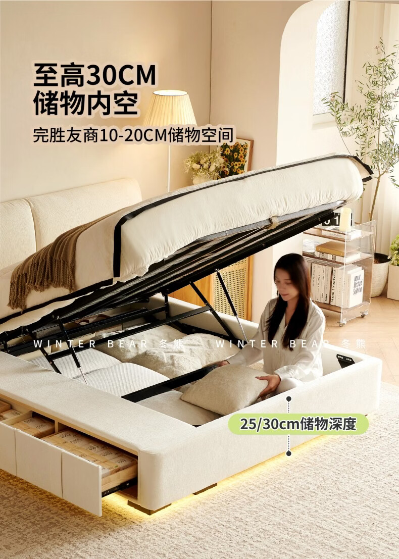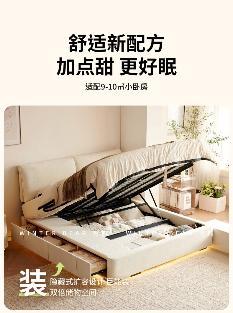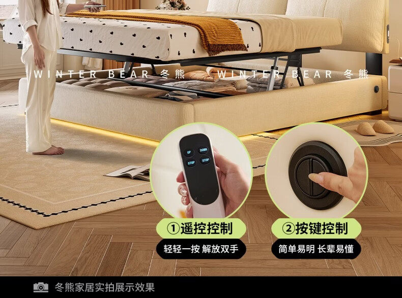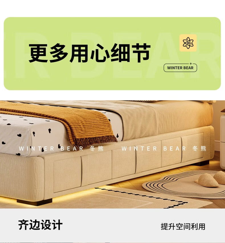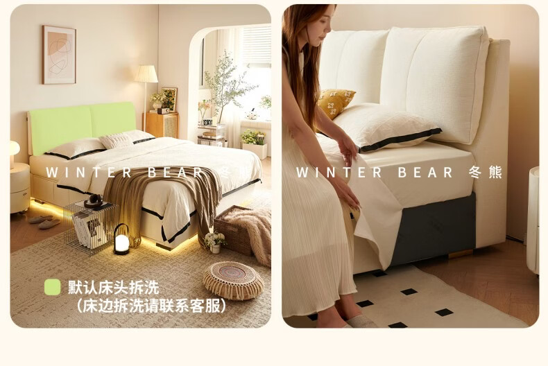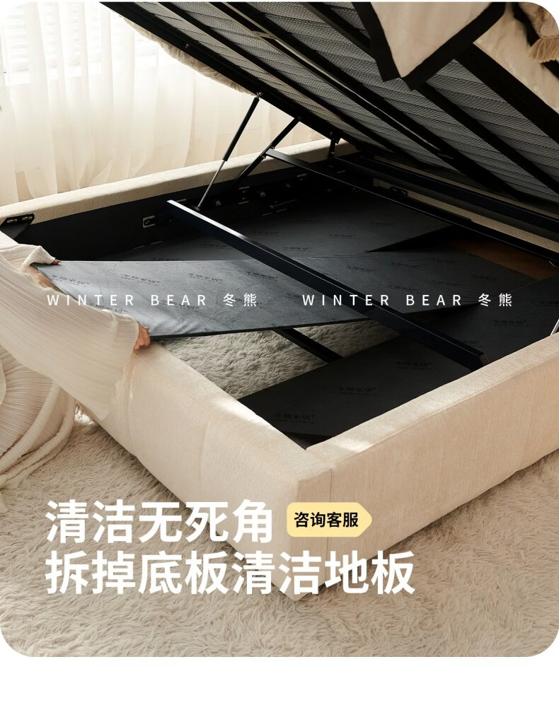 Dongxiong ultra-thin bedside fabric bed removable and washable elephant ears small apartment primary and secondary bedrooms ultra-thin translation storage bed cat claw cloth bed/encrypted silent row frame 1800mm*2000mm translation structure
