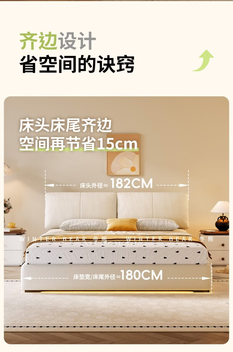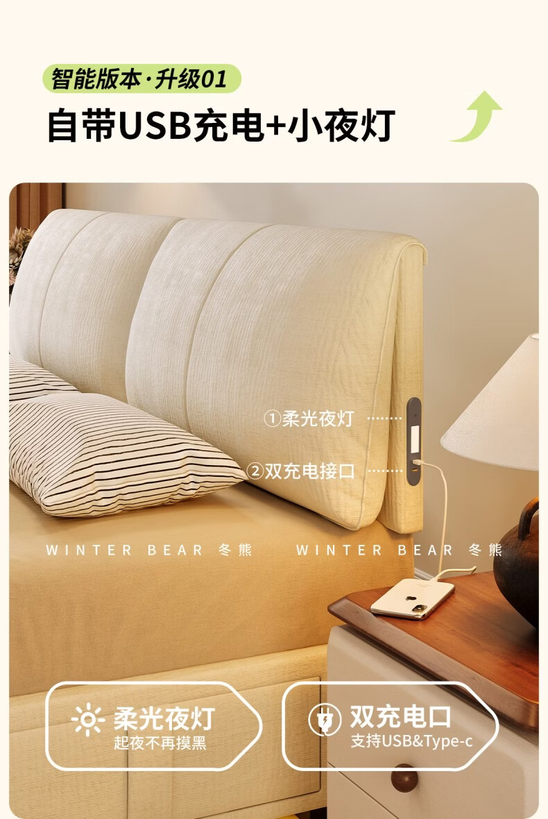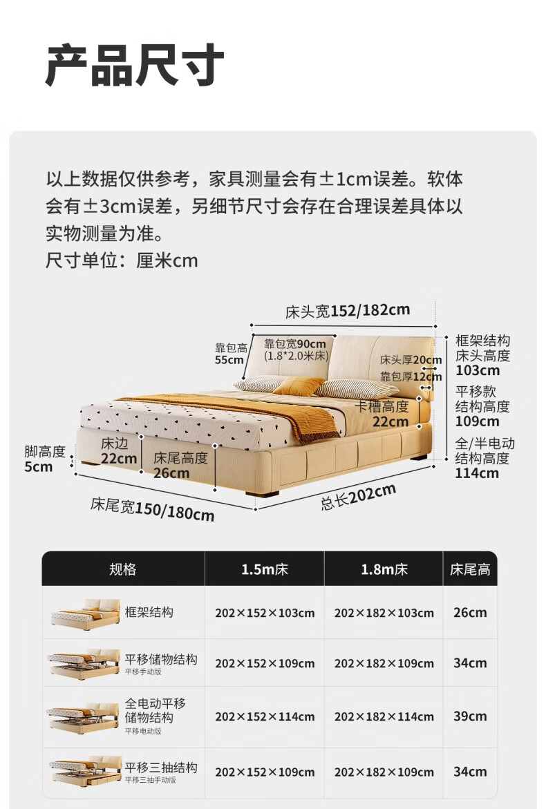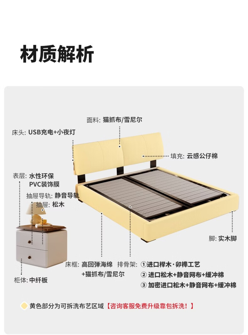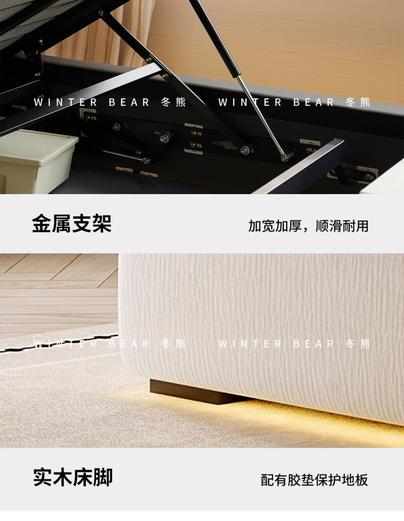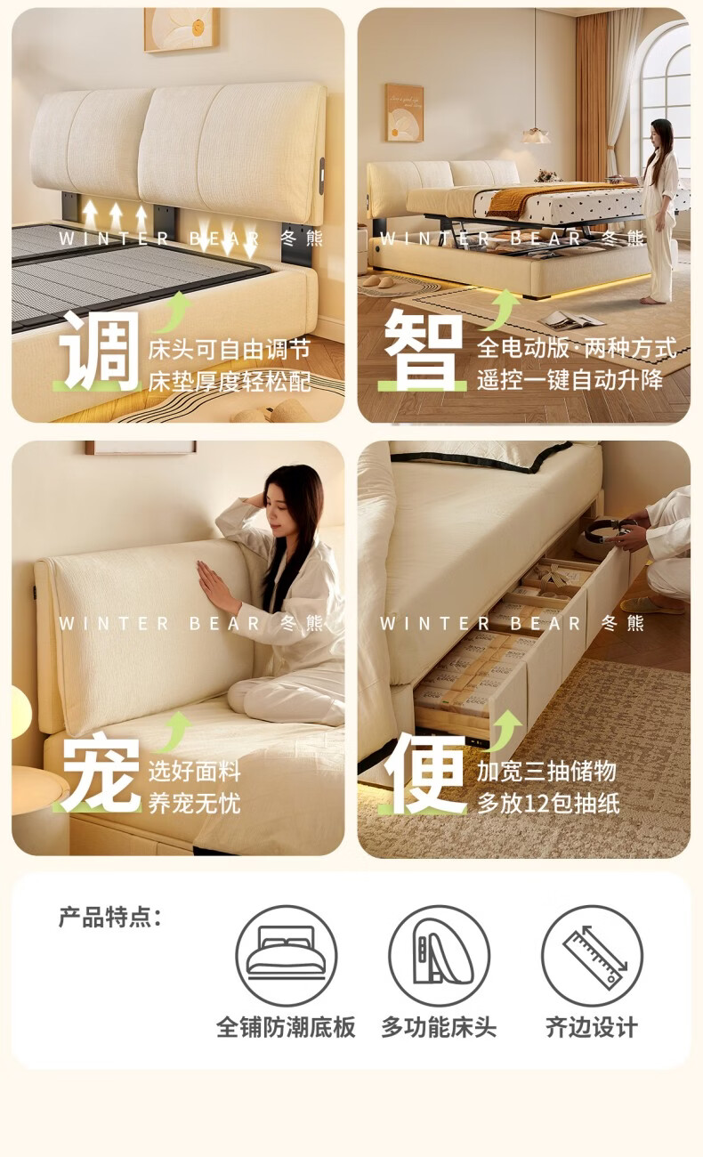 Dongxiong ultra-thin bedside fabric bed removable and washable elephant ears small apartment primary and secondary bedrooms ultra-thin translation storage bed cat claw cloth bed/encrypted silent row frame 1800mm*2000mm translation structure