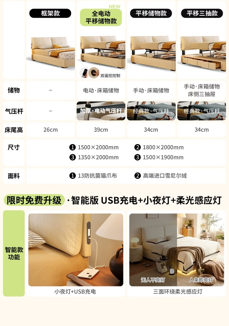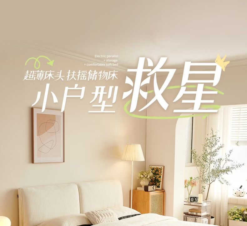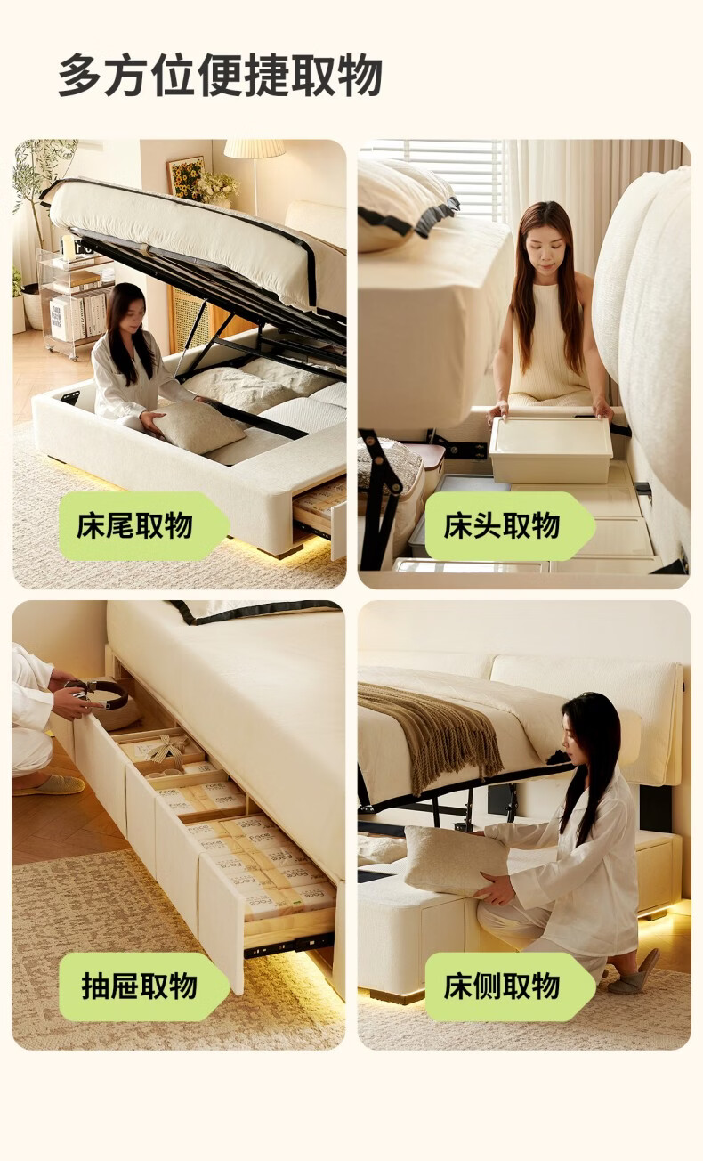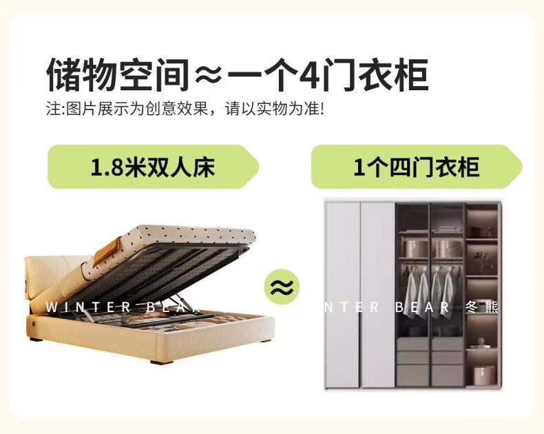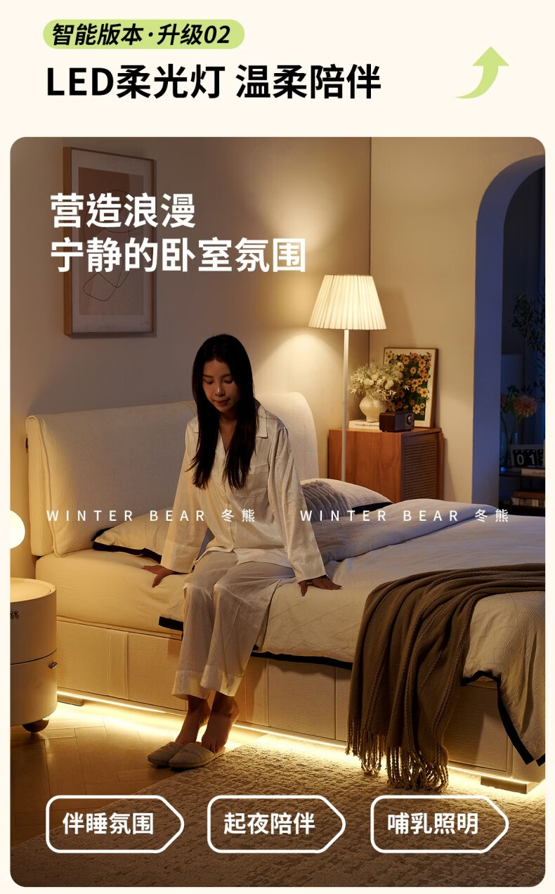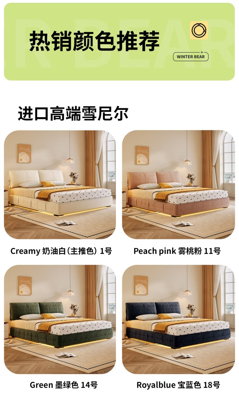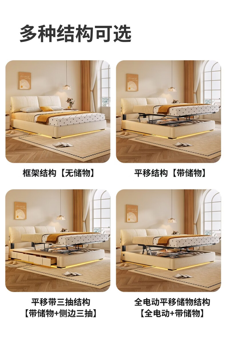 Dongxiong ultra-thin bedside fabric bed removable and washable elephant ears small apartment primary and secondary bedrooms ultra-thin translation storage bed cat claw cloth bed/encrypted silent row frame 1800mm*2000mm translation structure