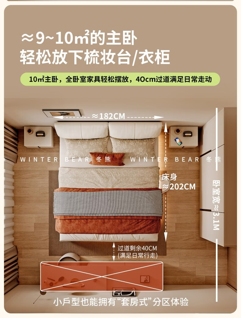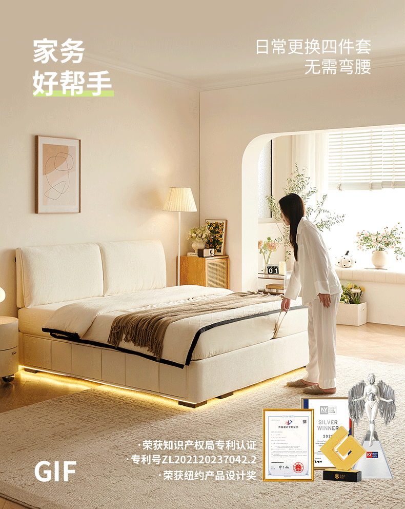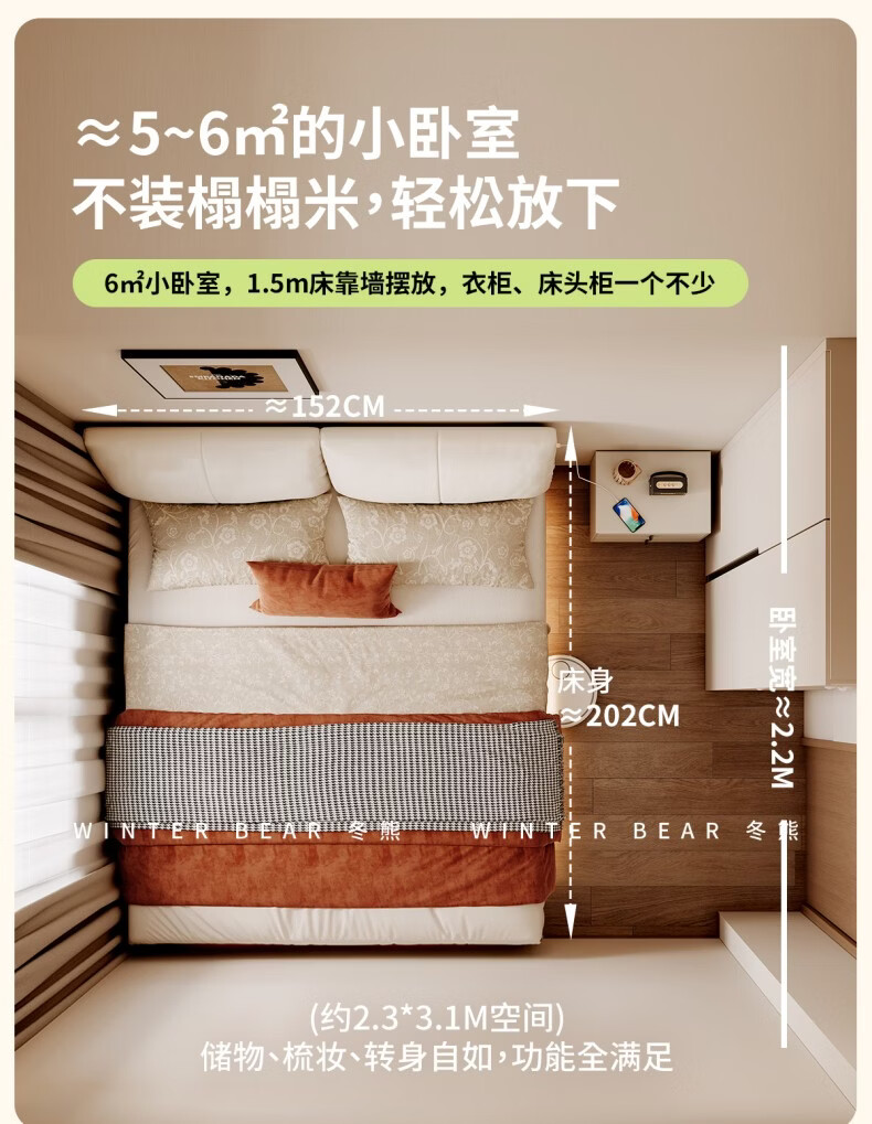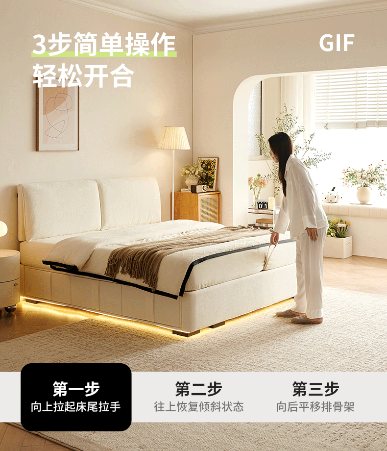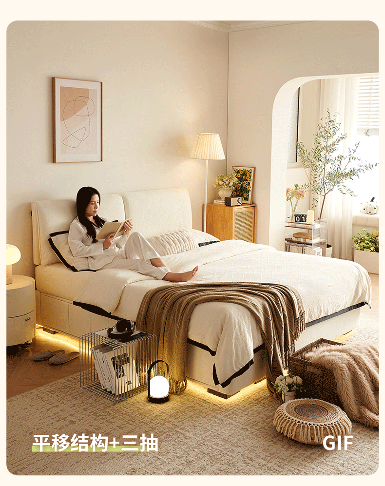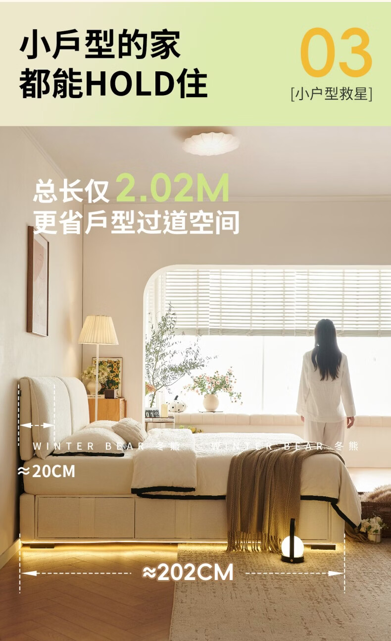Dongxiong ultra-thin bedside fabric bed removable and washable elephant ears small apartment primary and secondary bedrooms ultra-thin translation storage bed cat claw cloth bed/encrypted silent row frame 1800mm*2000mm translation structure