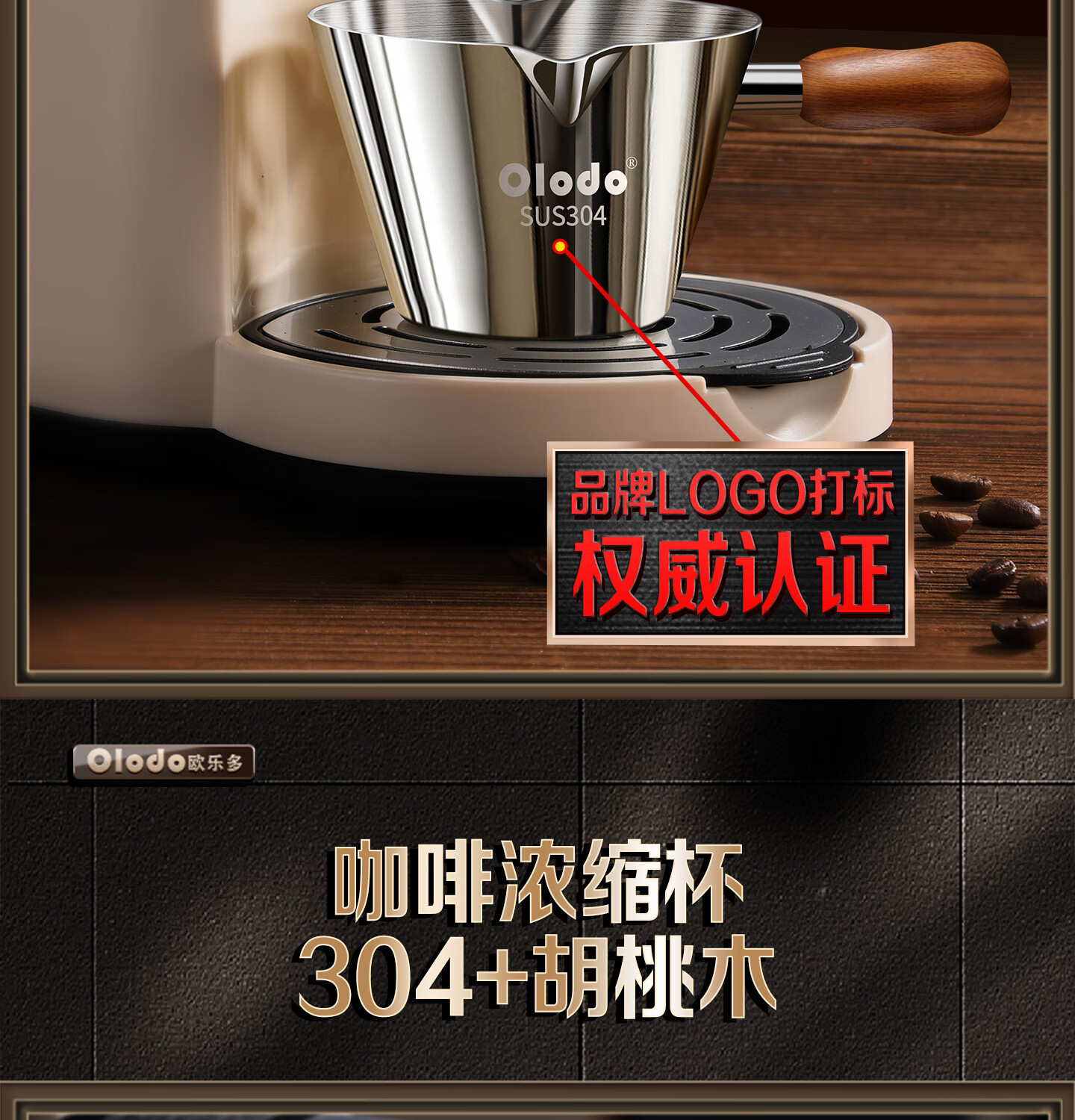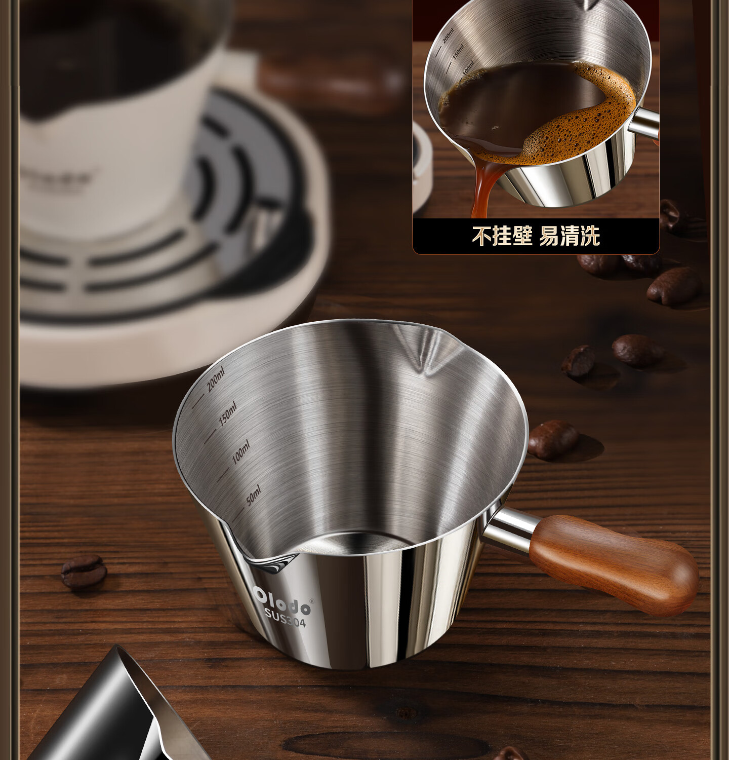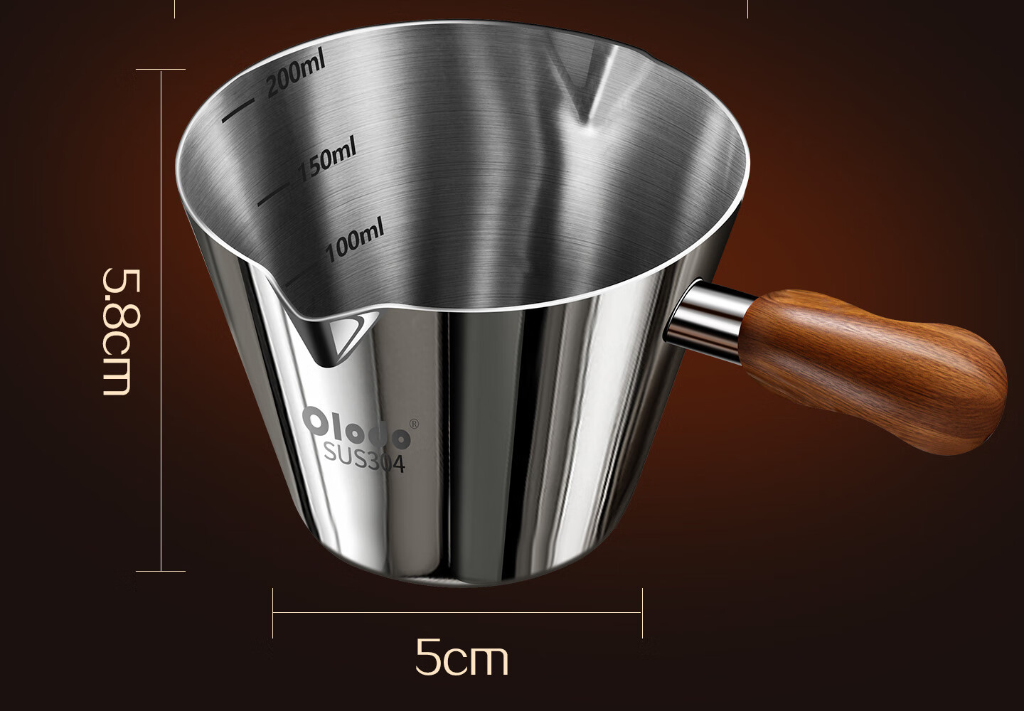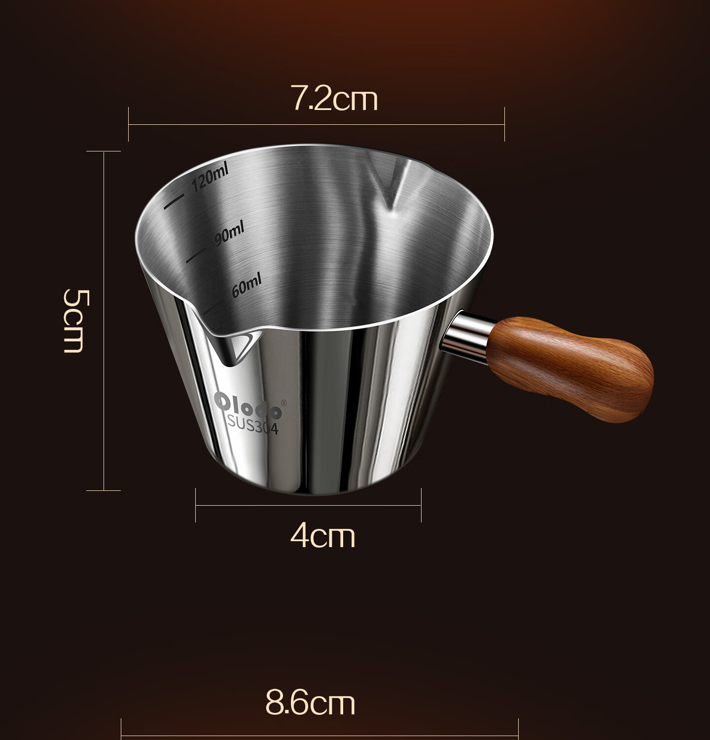 Olodo coffee extraction cup espresso cup 304 steel with scale coffee liquid extraction cup measuring cup liquid concentrated small cup double V mouth (glossy silver 120ml) walnut handle