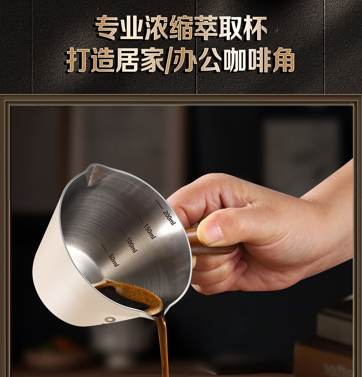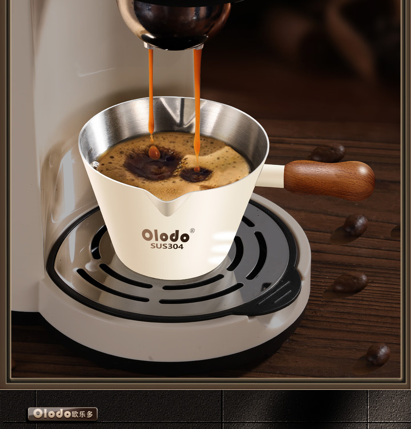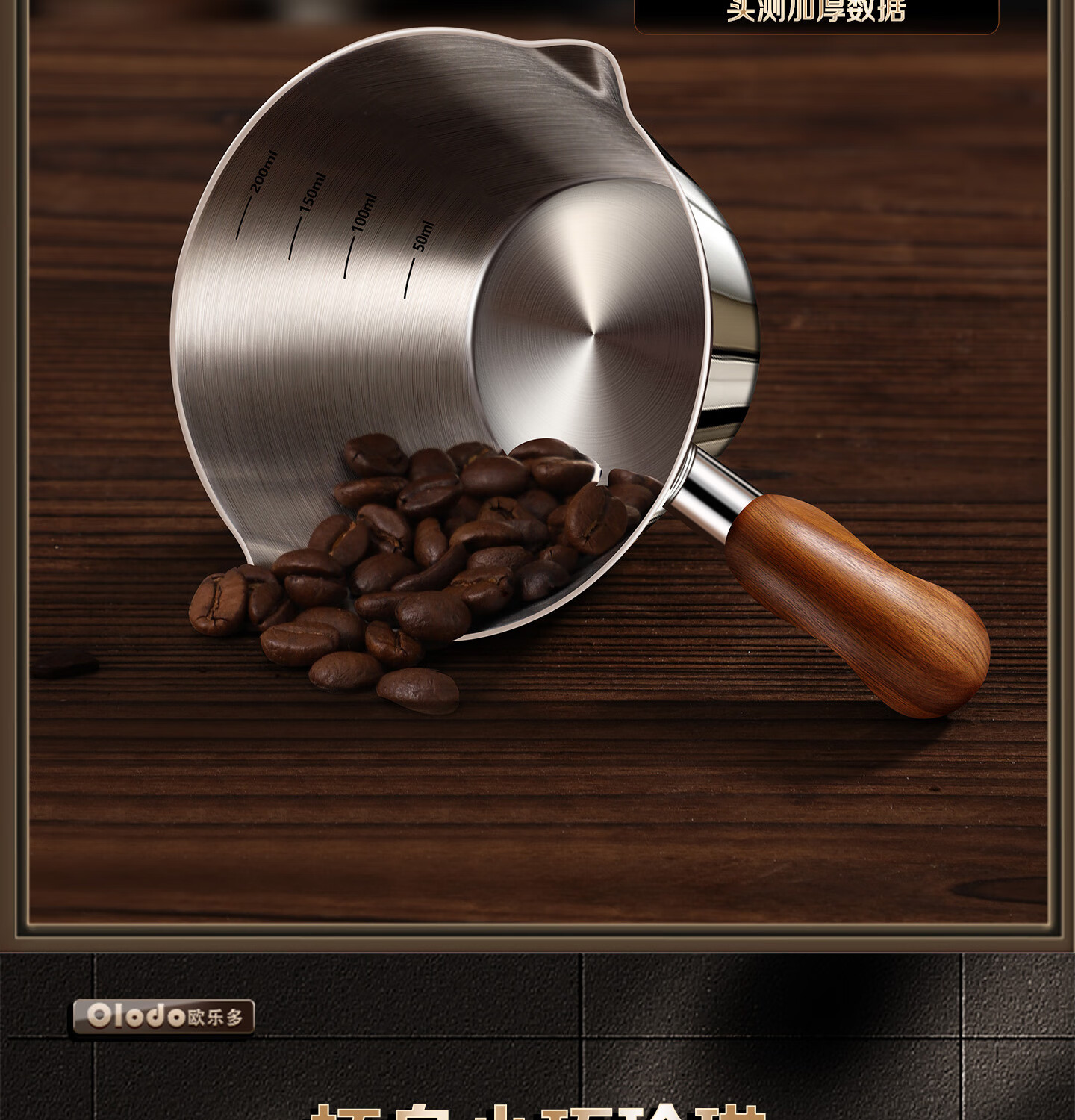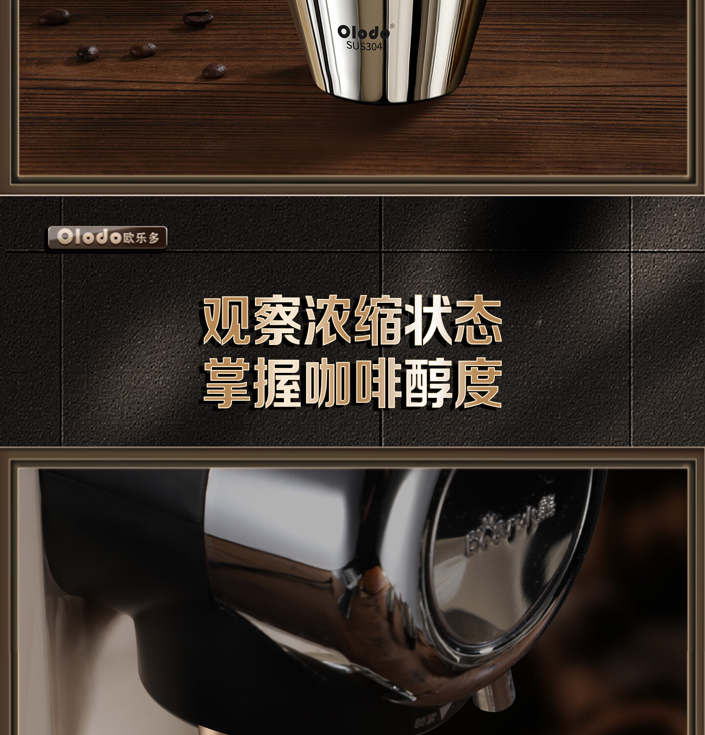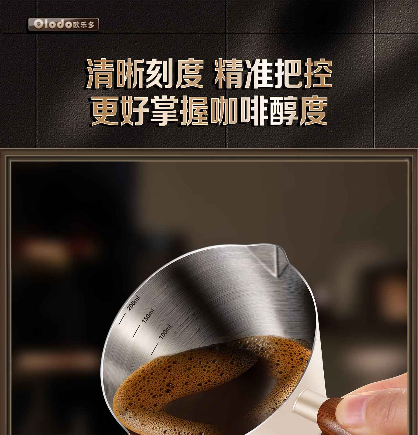 Olodo coffee extraction cup espresso cup 304 steel with scale coffee liquid extraction cup measuring cup liquid concentrated small cup double V mouth (glossy silver 120ml) walnut handle