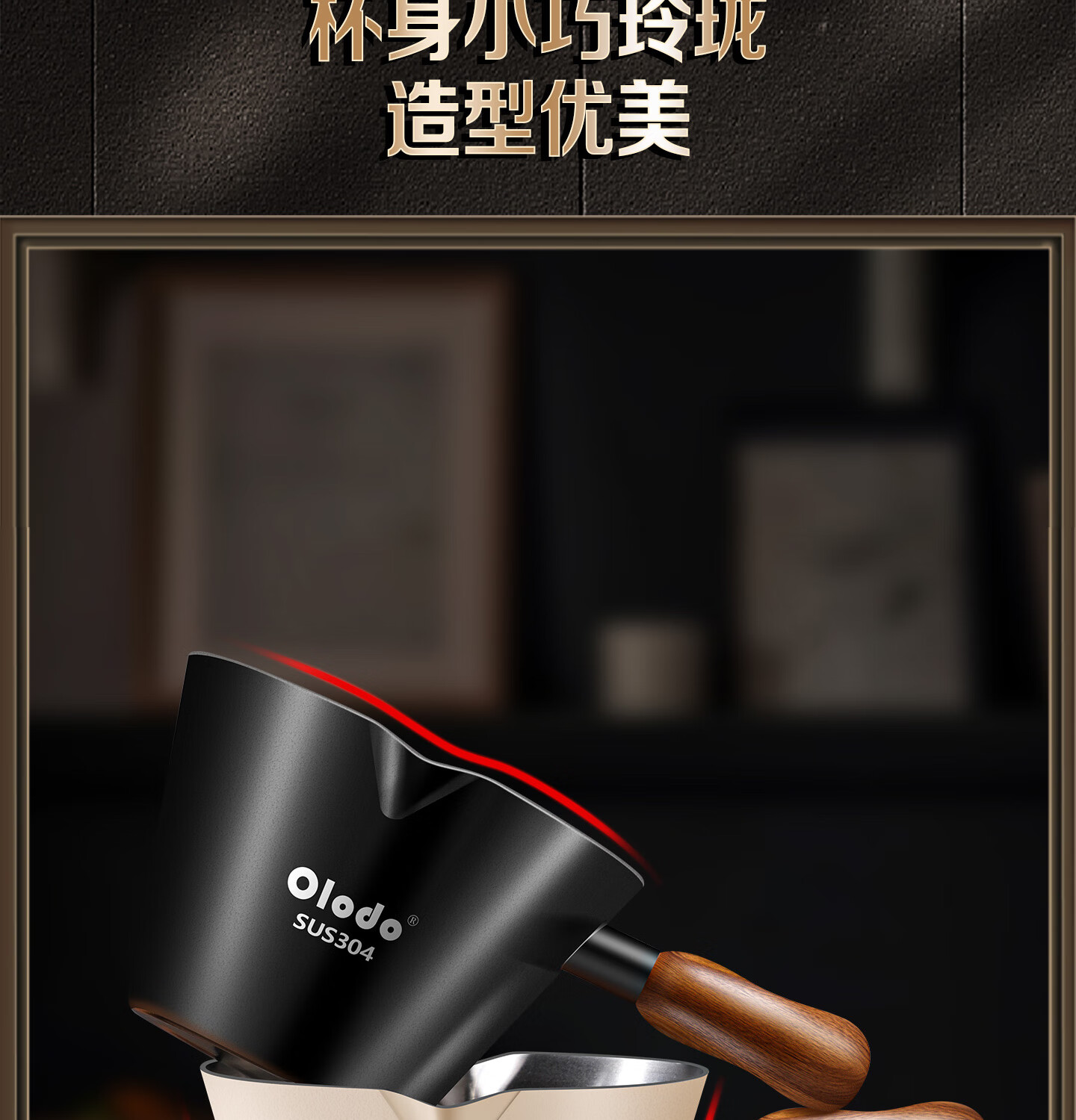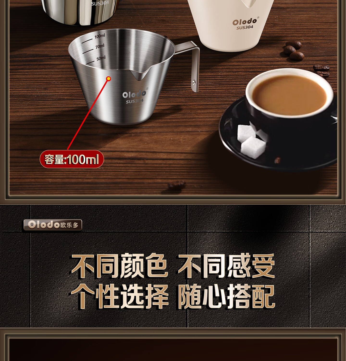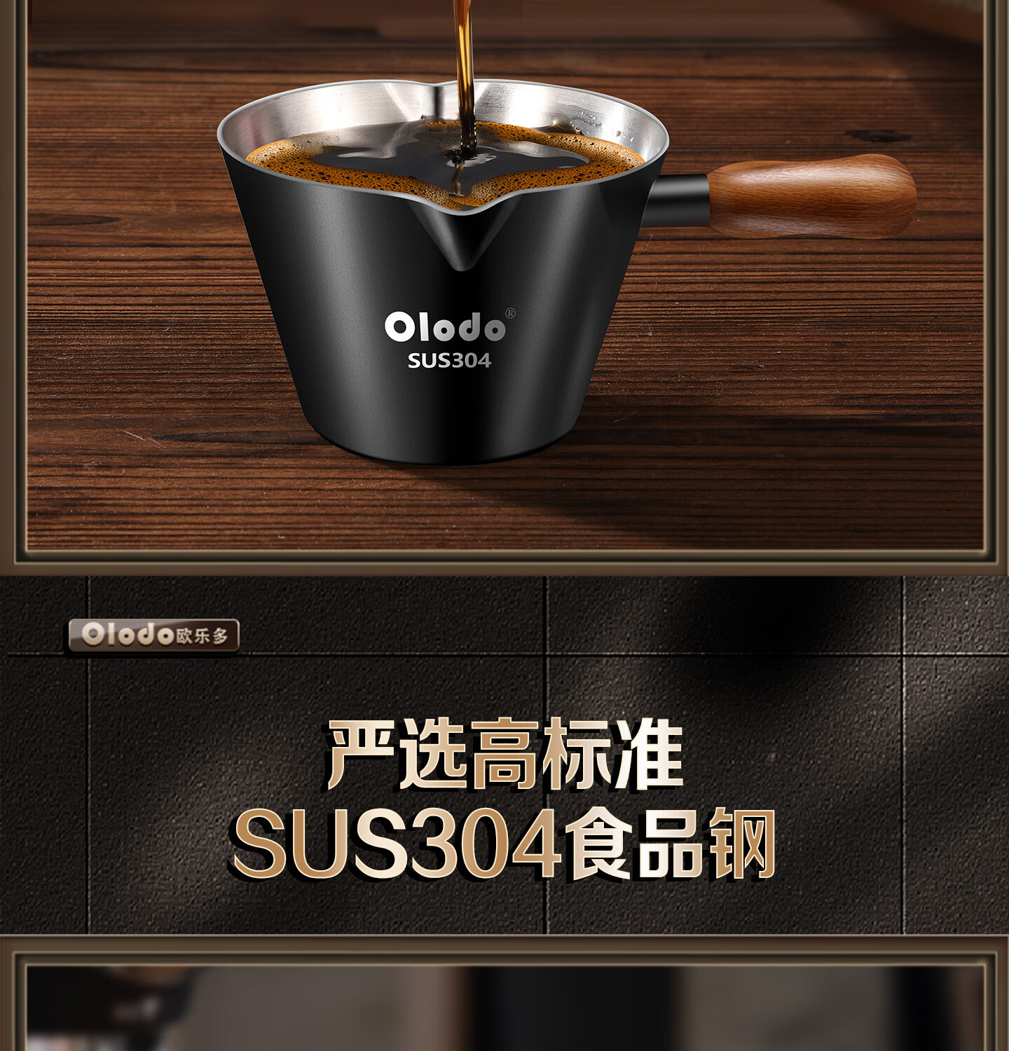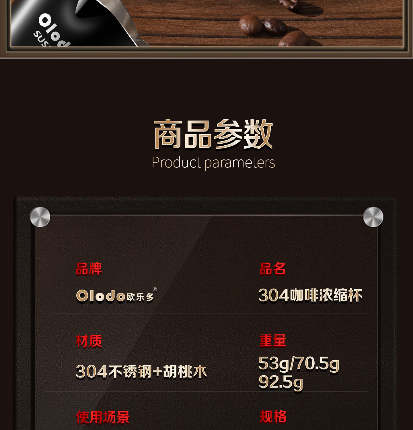 Olodo coffee extraction cup espresso cup 304 steel with scale coffee liquid extraction cup measuring cup liquid concentrated small cup double V mouth (glossy silver 120ml) walnut handle
