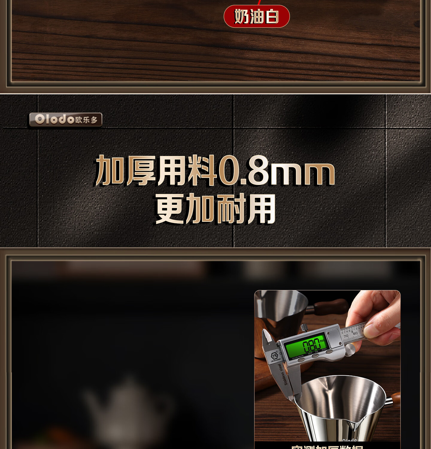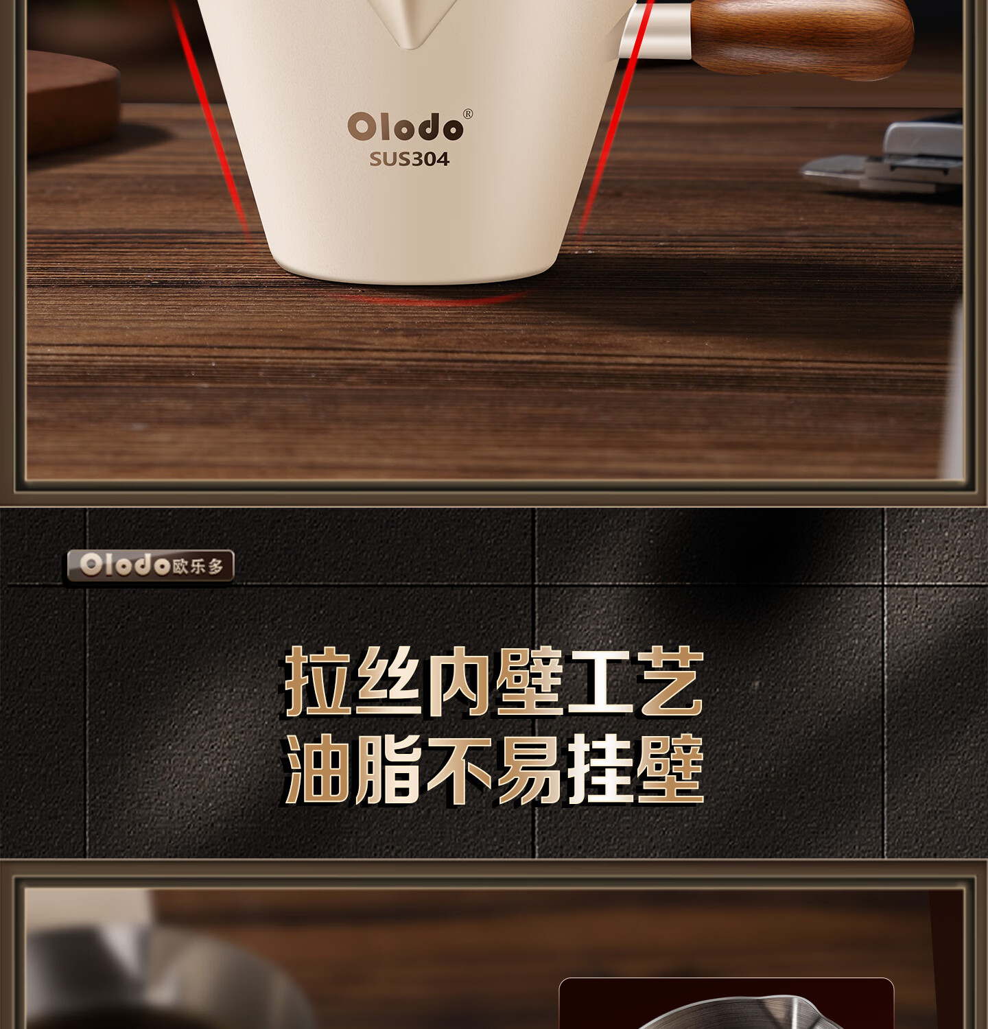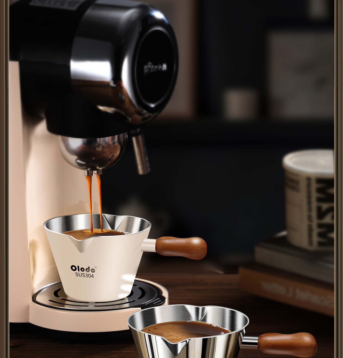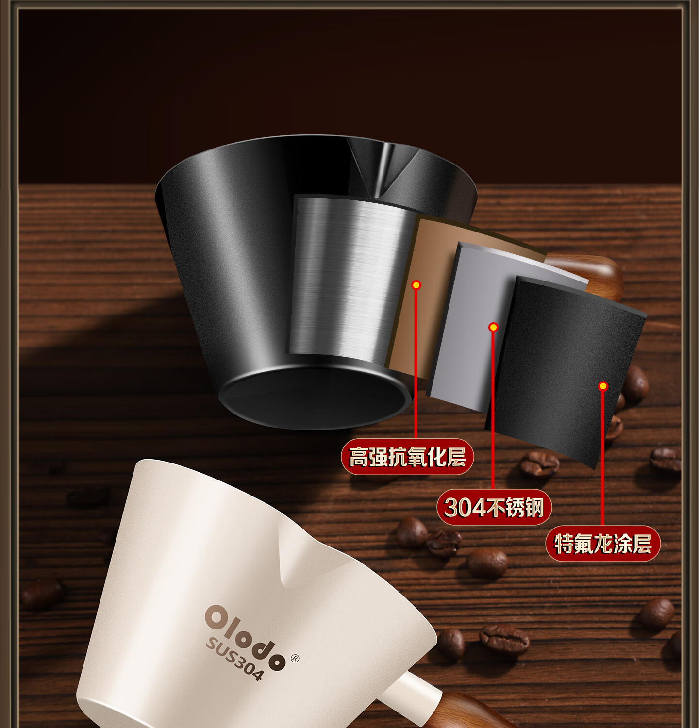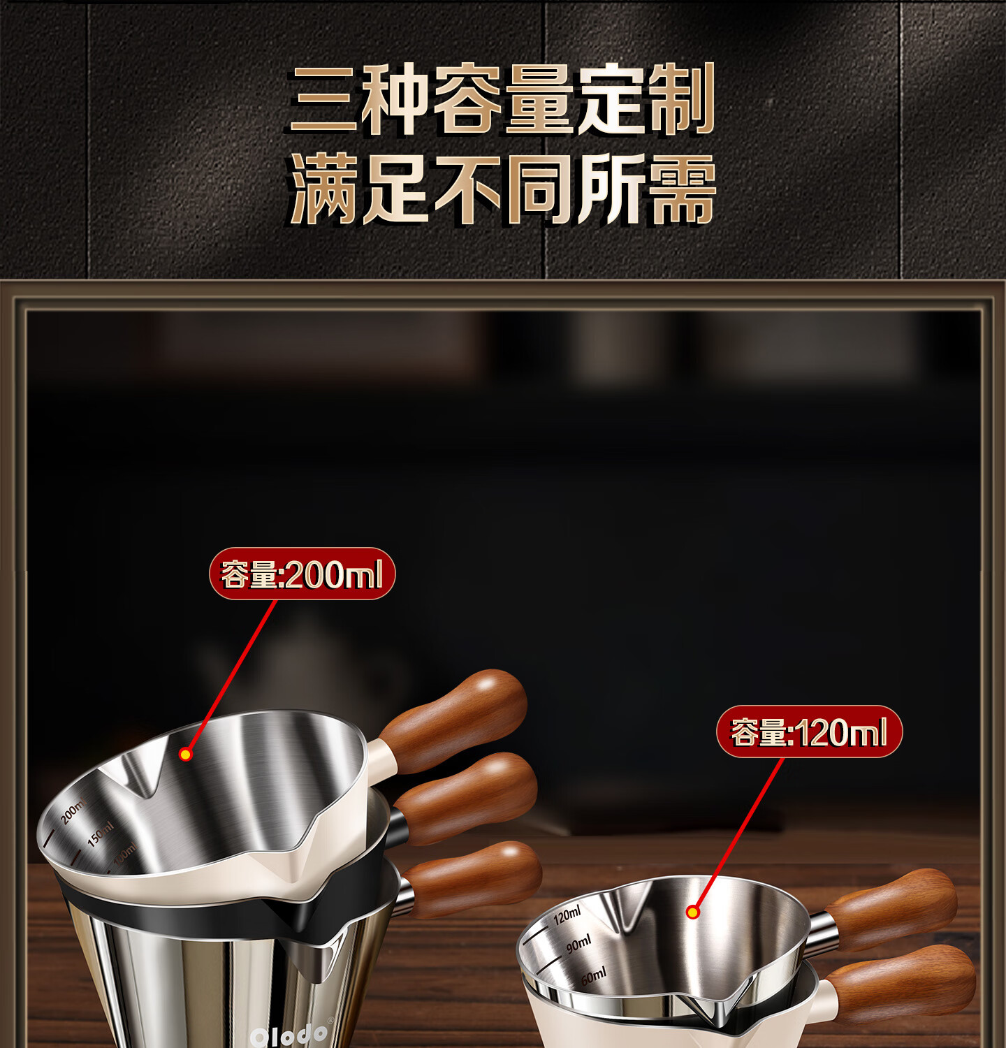 Olodo coffee extraction cup espresso cup 304 steel with scale coffee liquid extraction cup measuring cup liquid concentrated small cup double V mouth (glossy silver 120ml) walnut handle
