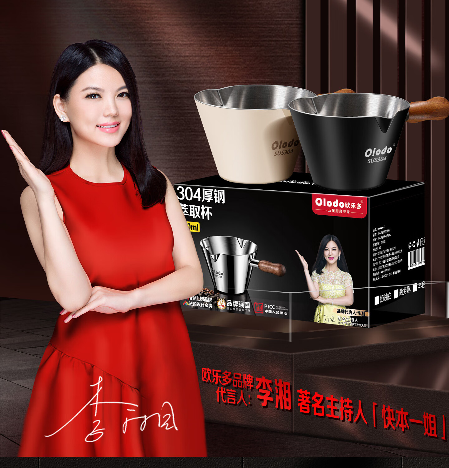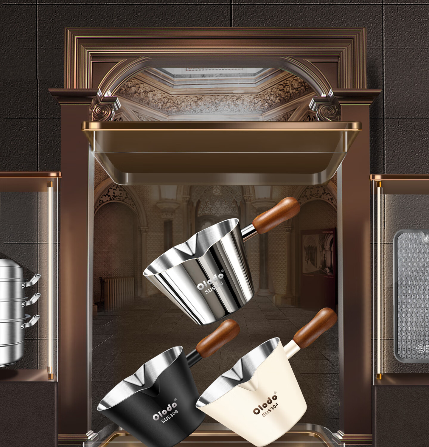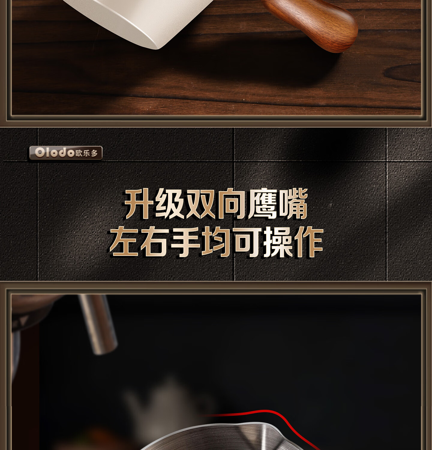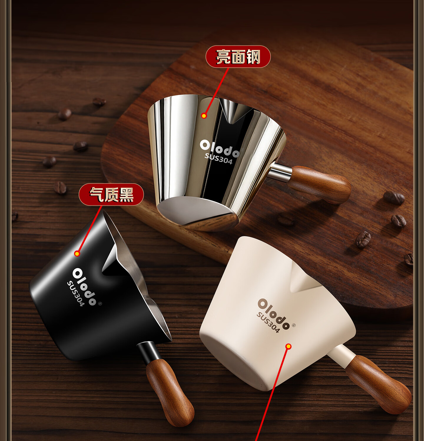 Olodo coffee extraction cup espresso cup 304 steel with scale coffee liquid extraction cup measuring cup liquid concentrated small cup double V mouth (glossy silver 120ml) walnut handle