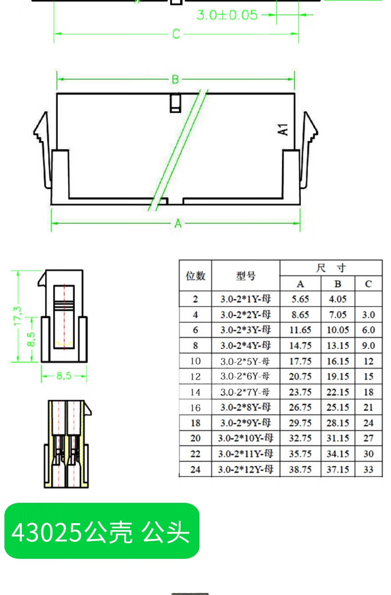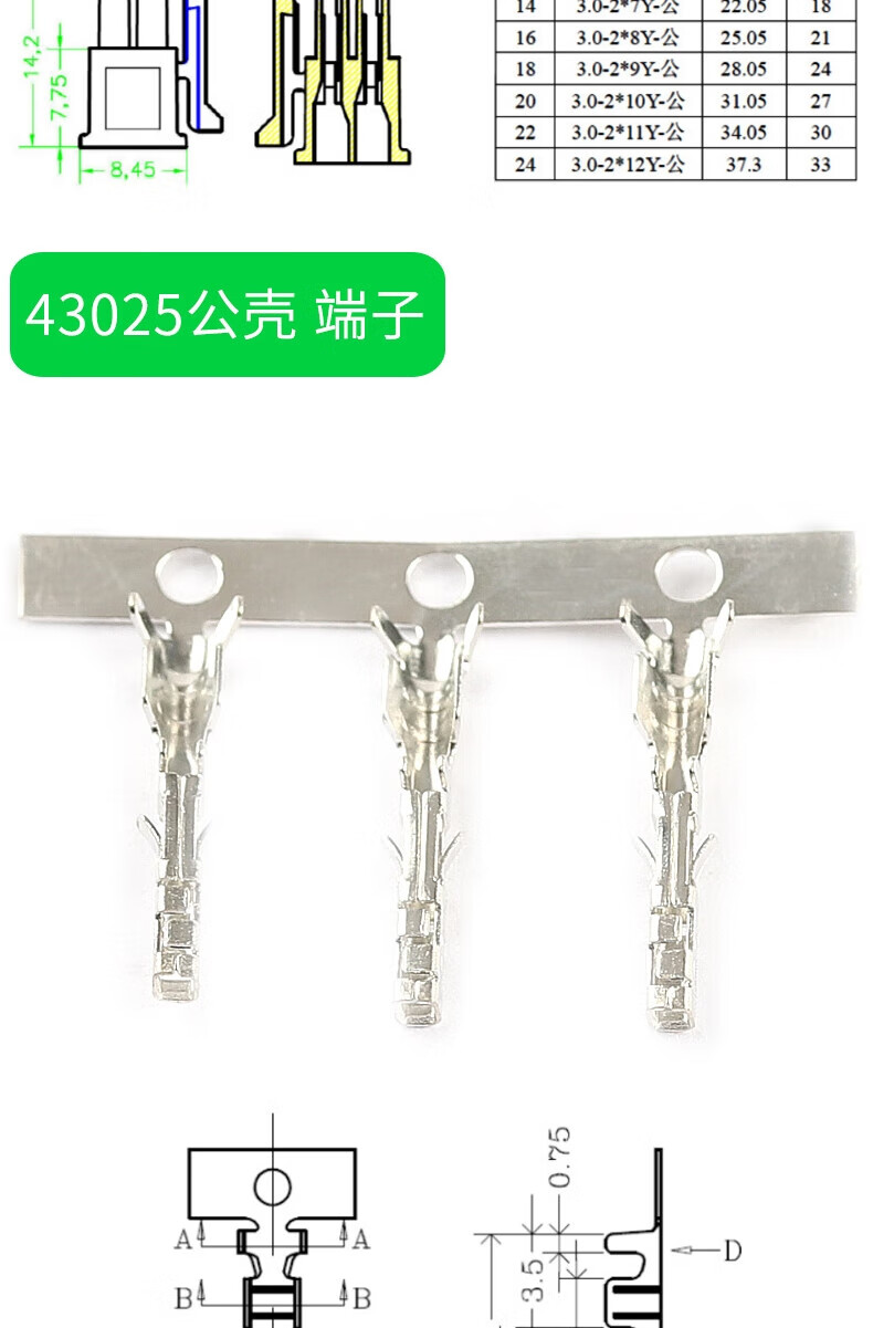 MX3.0mm plug-in connector male and female air mating 43025 plug + 43020 female shell + terminal 2 3P25 plug + 20 female shell + terminal (1 set) No specifications
