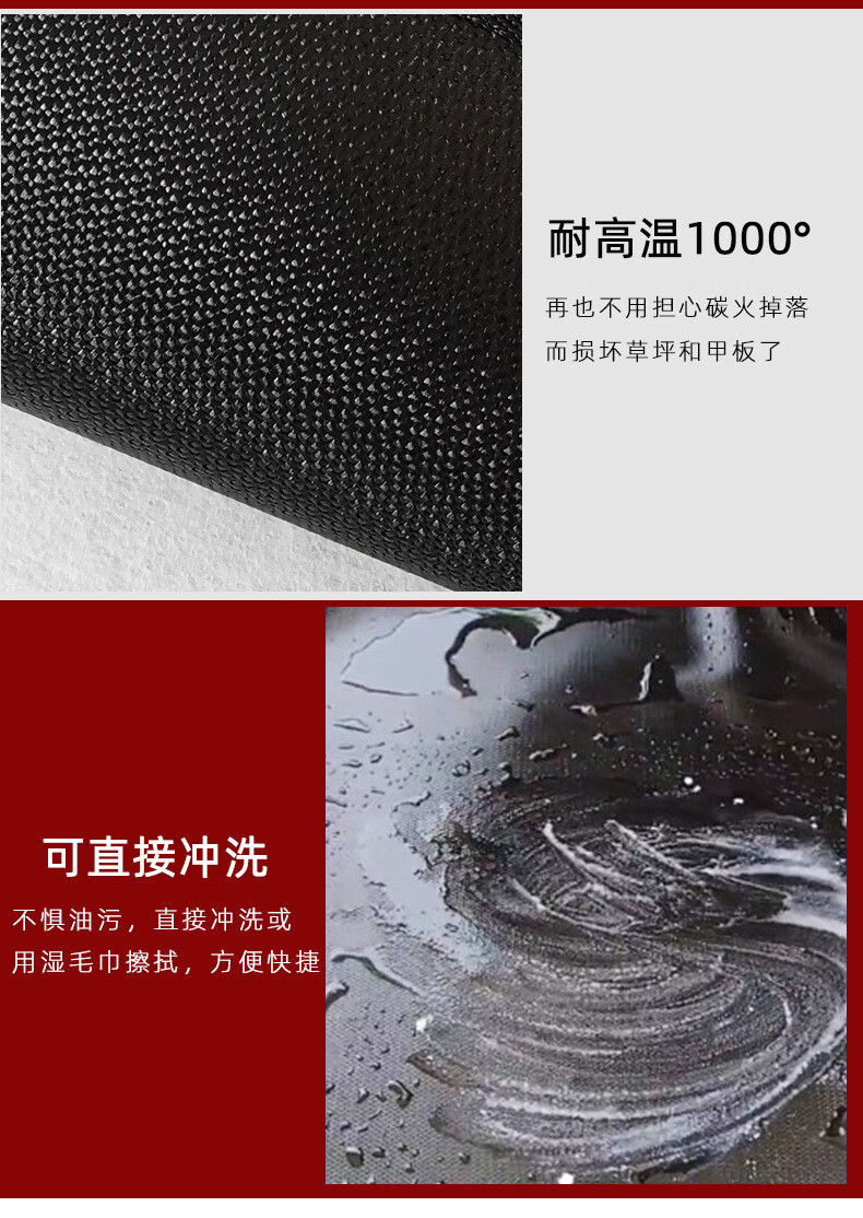 Outdoor picnic fireproof insulation mat barbecue stove floor mat silicone fire extinguishing blanket flame retardant high temperature insulation camping mat with non-slip bottom 122*76CM
