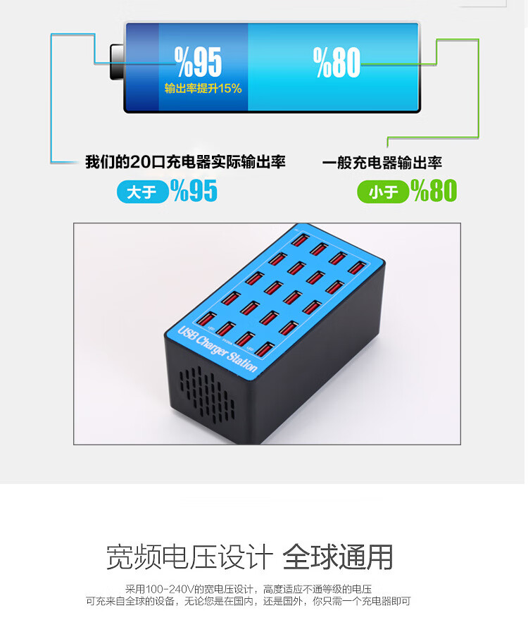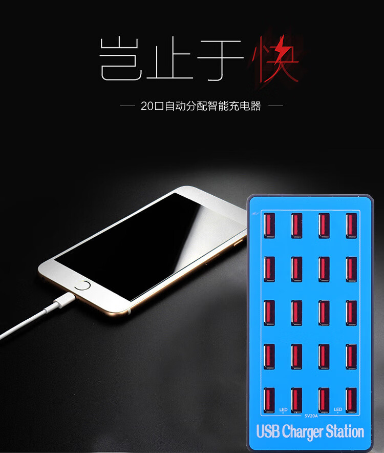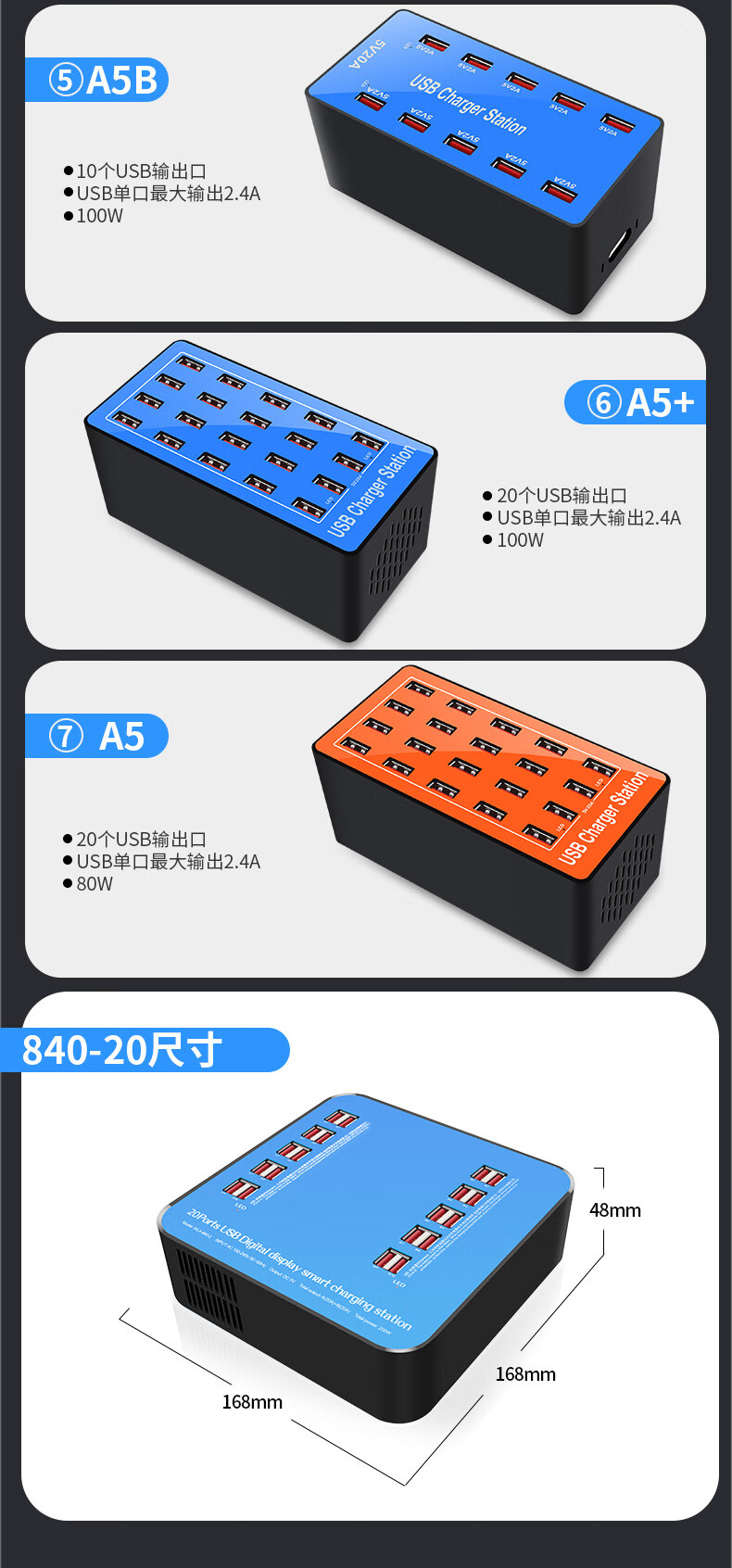 Porous Charger 100w Fast Charging Mobile Phone 0 Port USB Charger Studio Tablet Headphone Charging Station A5+ A5+ Blue US Standard