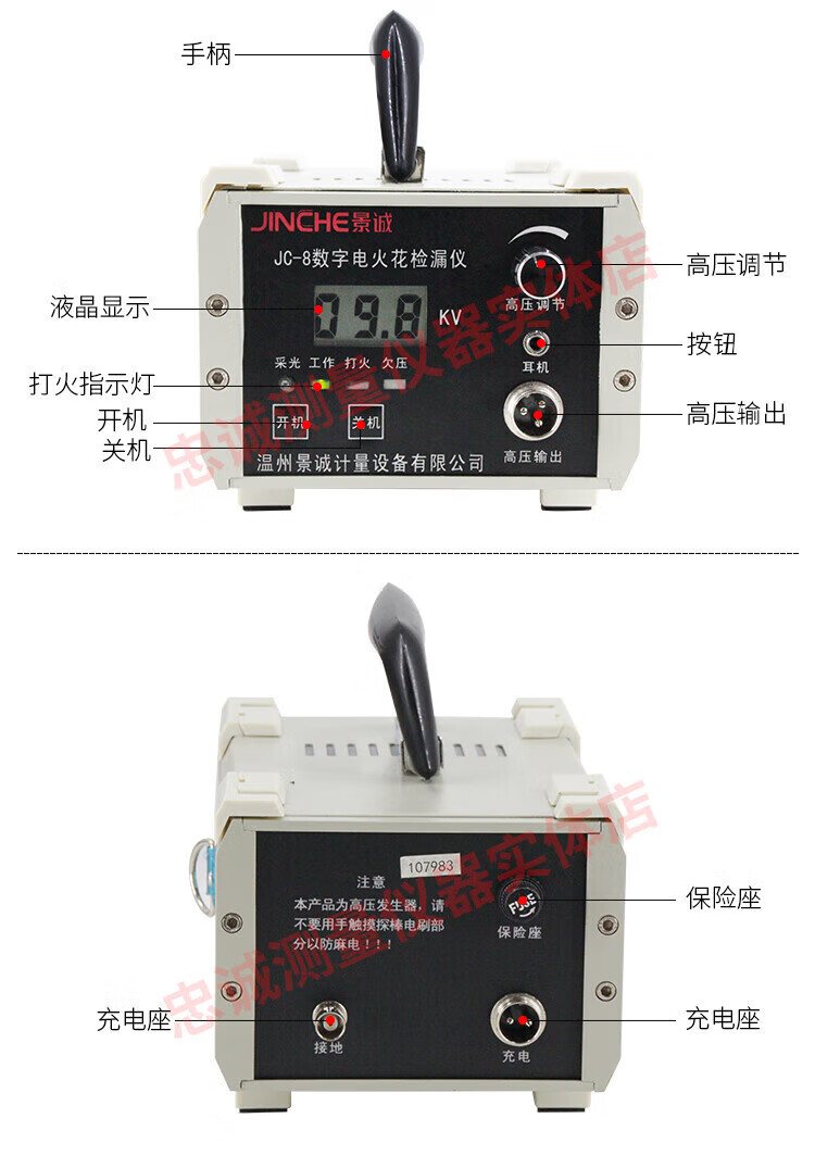 JC-8 portable rechargeable digital spark detector pipeline anti-corrosion coating scale DC spark leak detector JC-8 digital display
