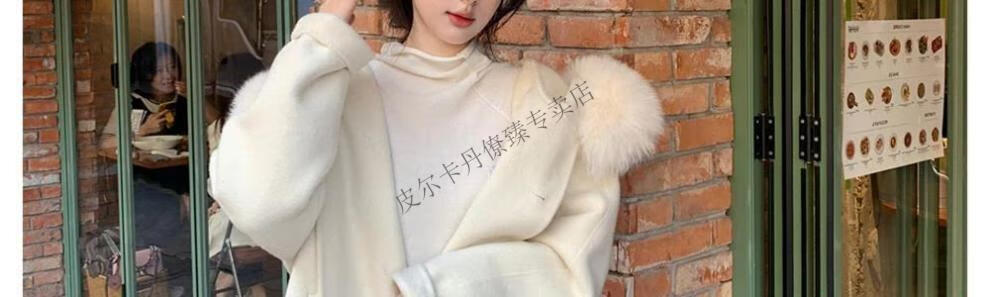 Pierre Cardin white double-sided cape coat for women 2025 new autumn and winter small thick short woolen coat white L 115 catties-130 catties