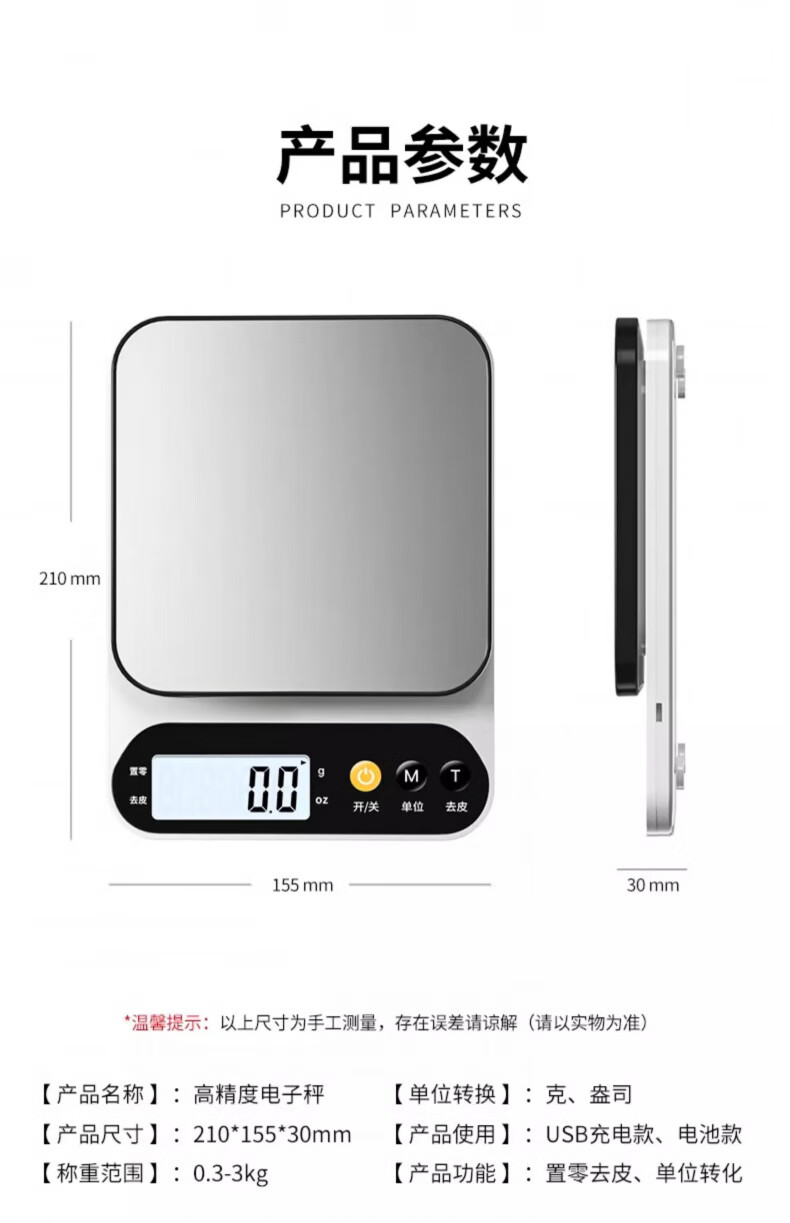 Sawang Germany electronic scale household kitchen scale baking gram scale small high-precision weighing gram weight scale food scale stainless steel plate three-use model 10kg/1g high-end quality