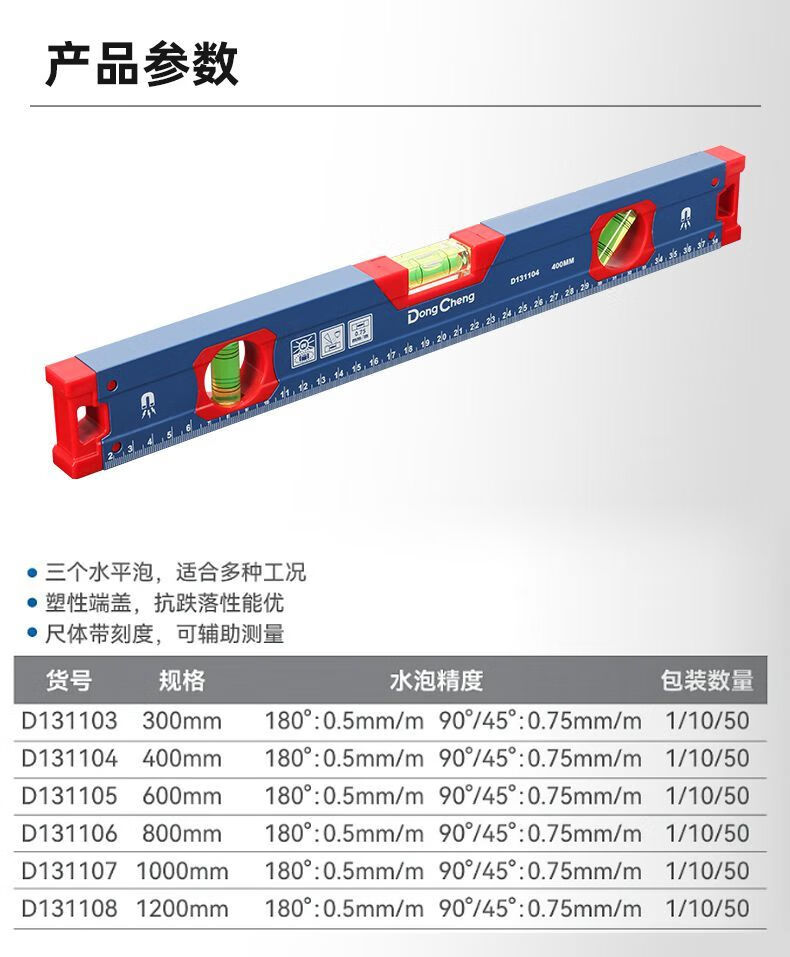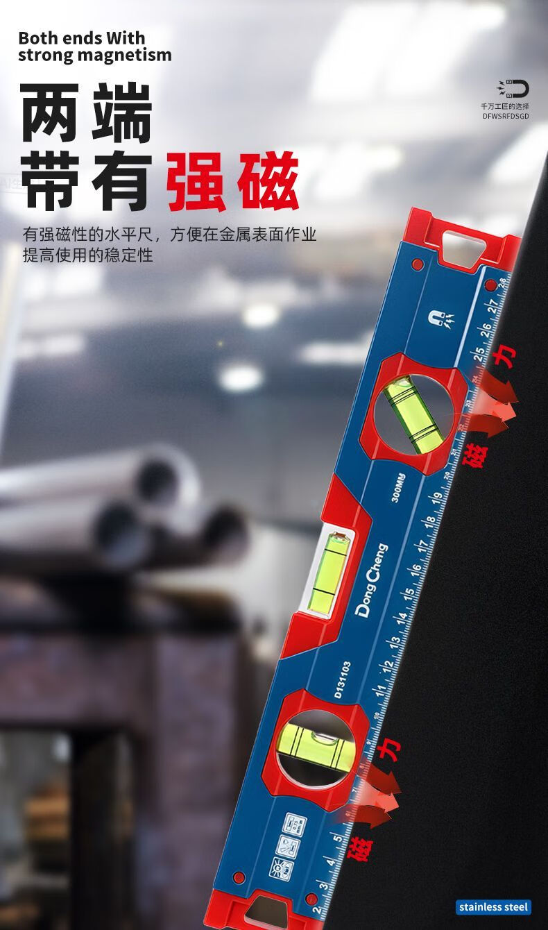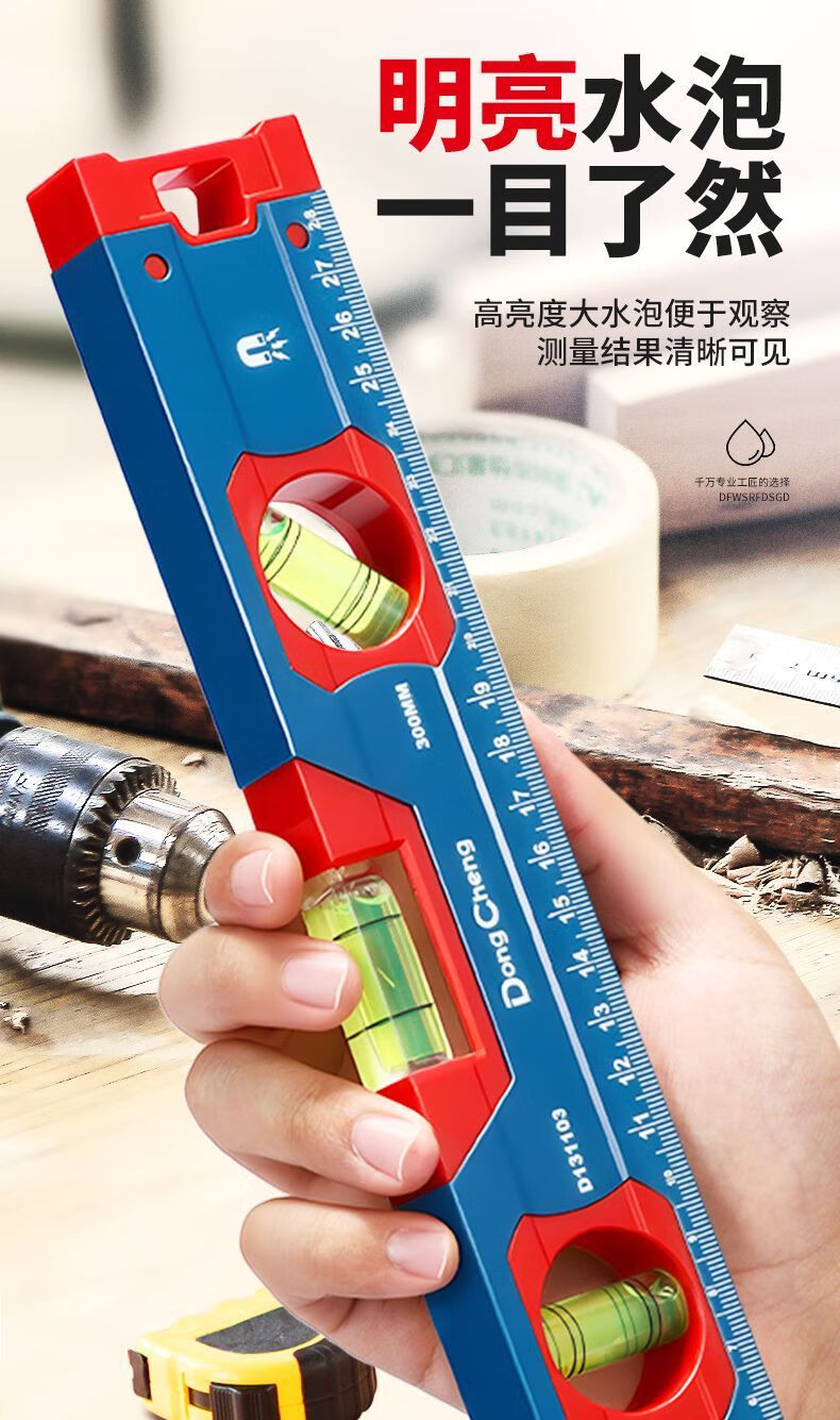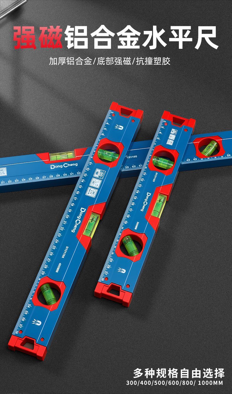 Dongcheng Strong Magnetic Level High-precision Aluminum Level Level Industrial Grade Anti-fall Level Decoration Engineering Measuring Tool Strong Magnetic Aluminum Level Measuring Range 300mm