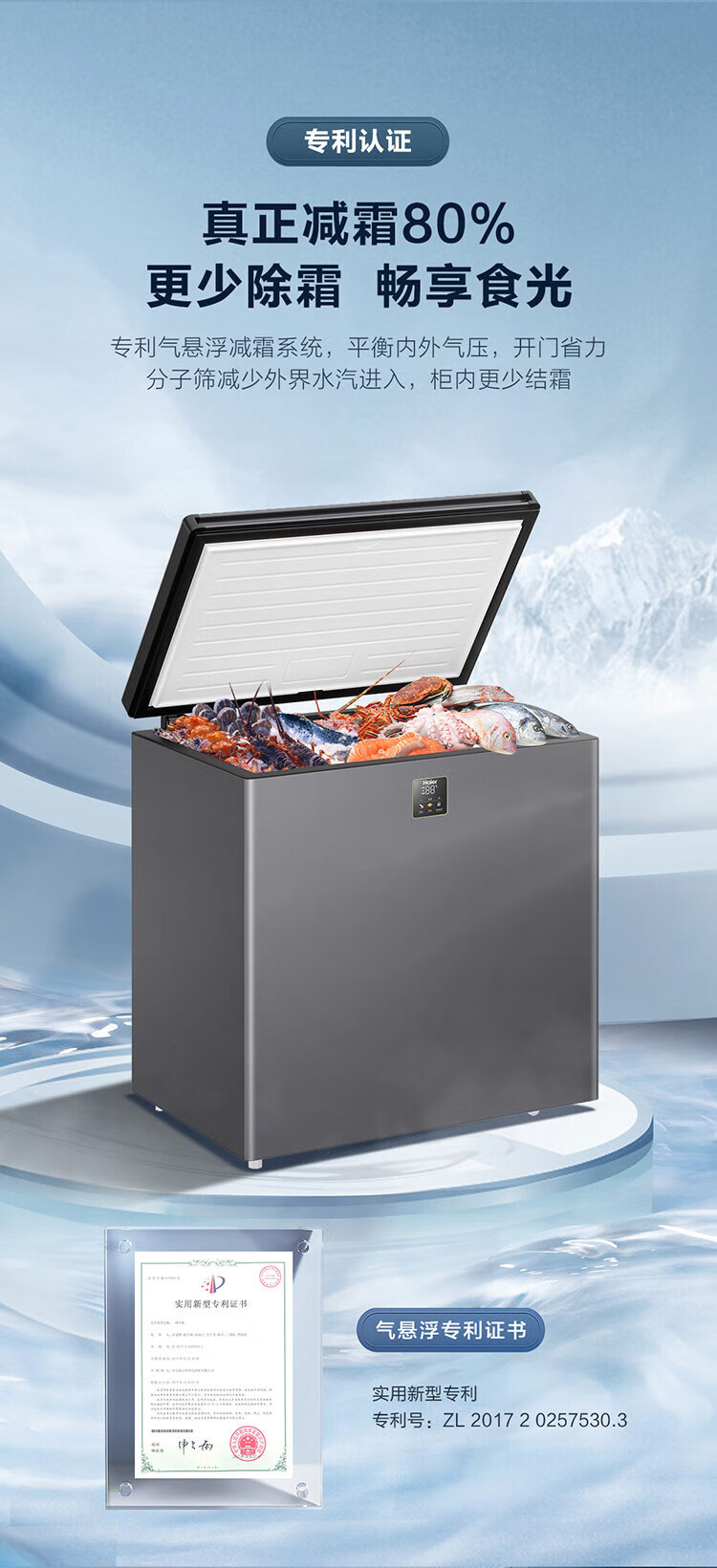 Haier Freezer Home Small Freezer No Need for Frequent Defrosting Ultra-low Temperature Quick Freezing - 40 Degrees New Level Energy Efficiency Deep Freezing Quick Freezing Full Refrigeration Conversion Dual-Purpose Single Temperature Freezer Refrigerator 142L Automatic Defrost - 30 Degrees Below