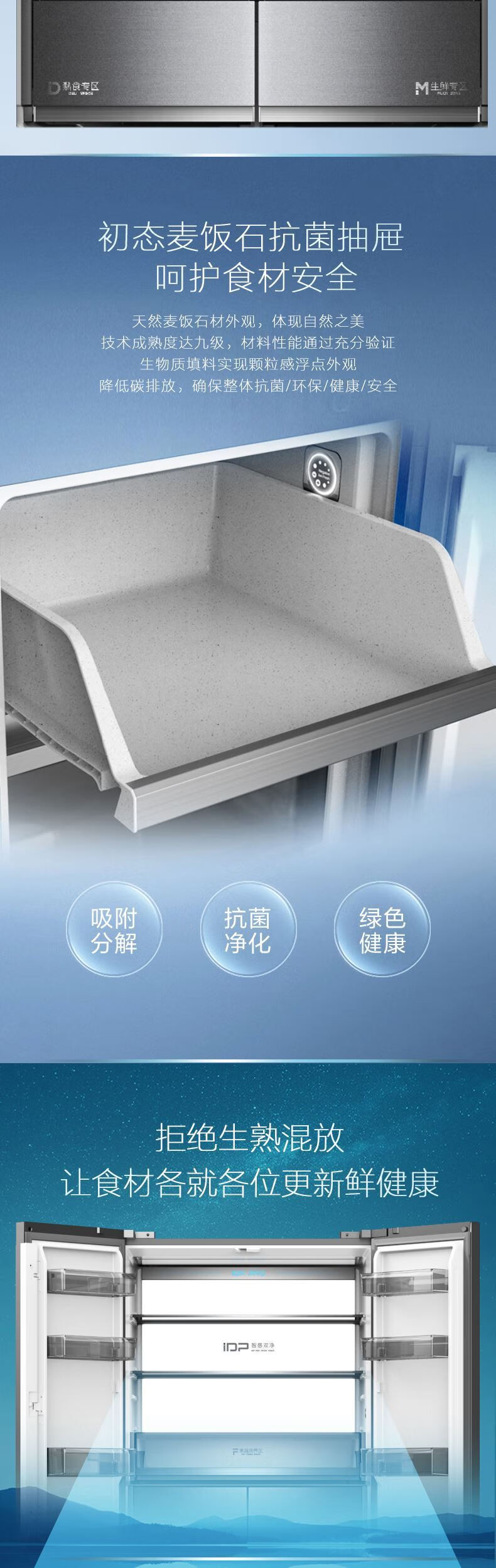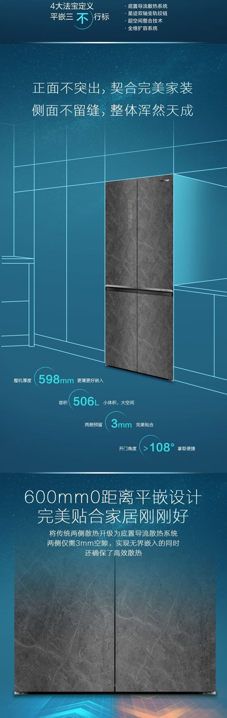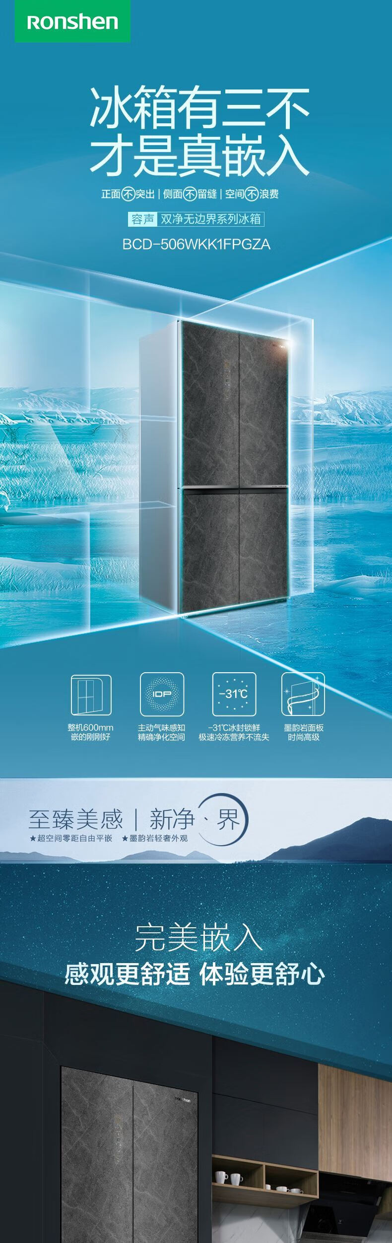 Ronshen sample machine 506WKK1FPGZA cross four-door glass panel IDP dual-purification active sterilization energy-saving odor-free refrigerator quality tail goods Mo Yunyan