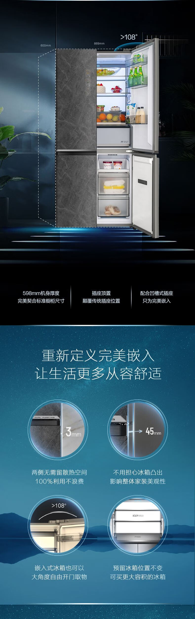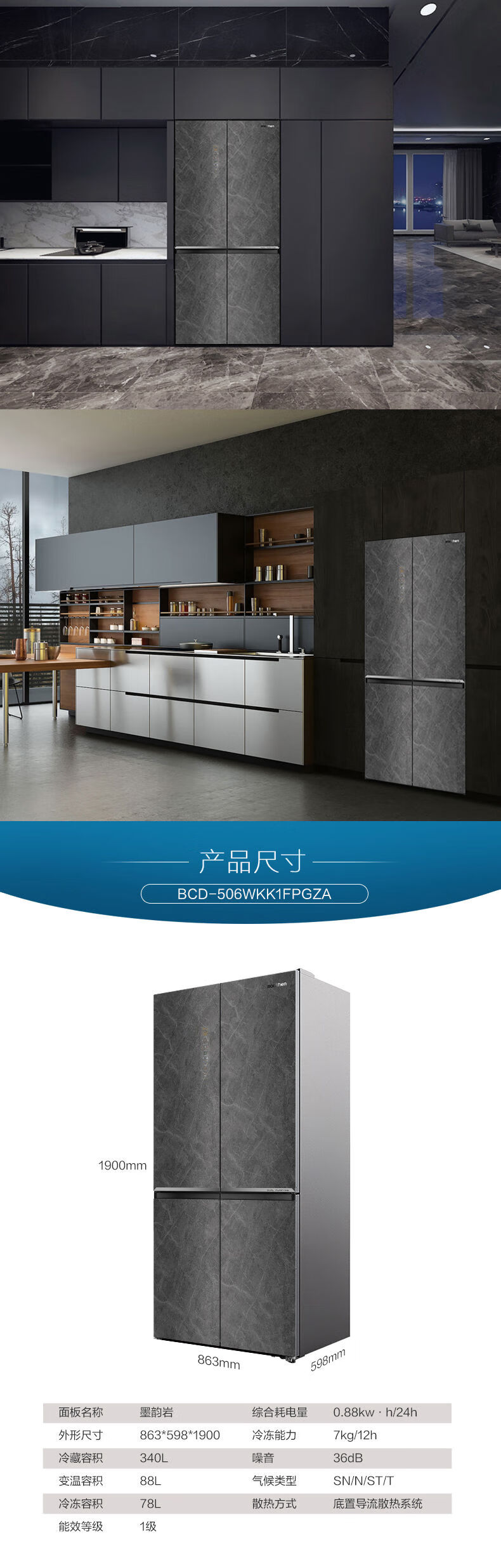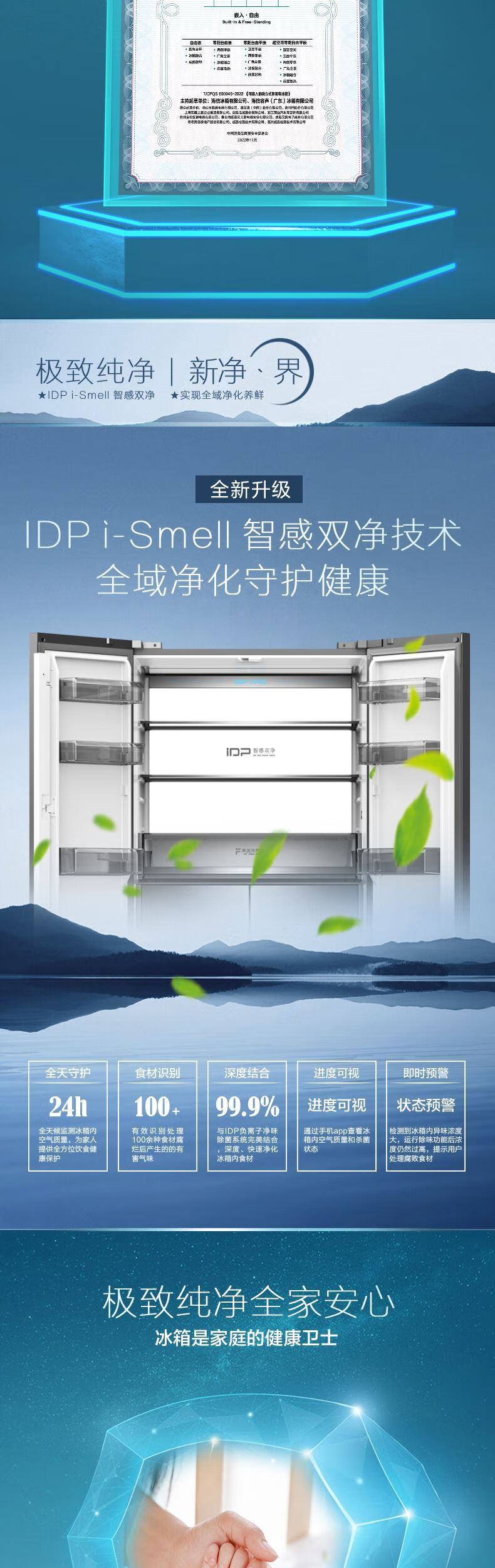 Ronshen sample machine 506WKK1FPGZA cross four-door glass panel IDP dual-purification active sterilization energy-saving odor-free refrigerator quality tail goods Mo Yunyan