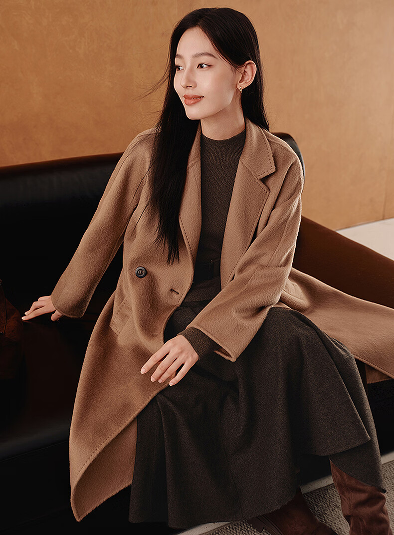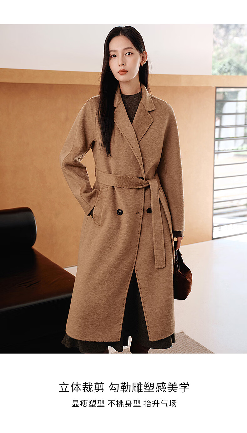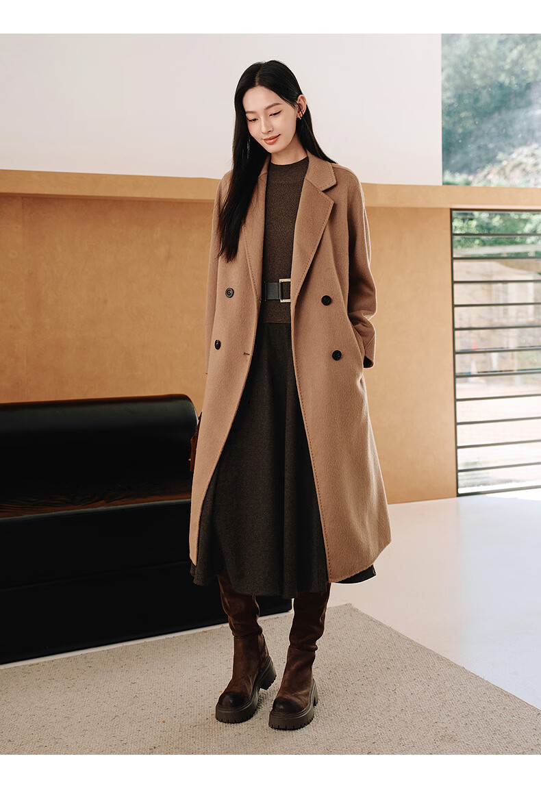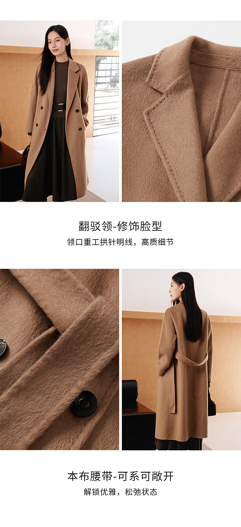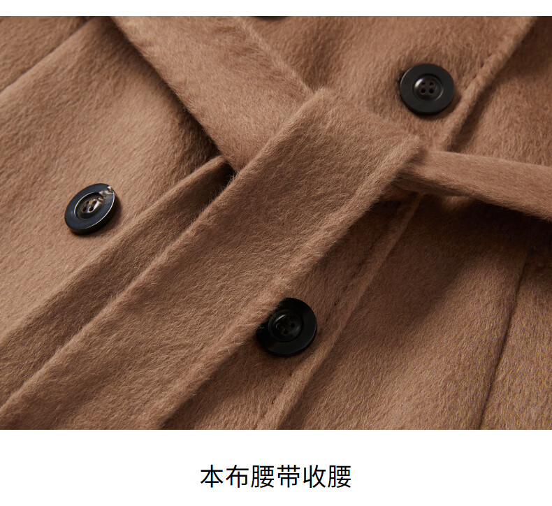 Jiuzi Annako Sheep Wool x Alpaca Elegant Waist Double-sided Wool Coat Women 2025 Winter New Camel M