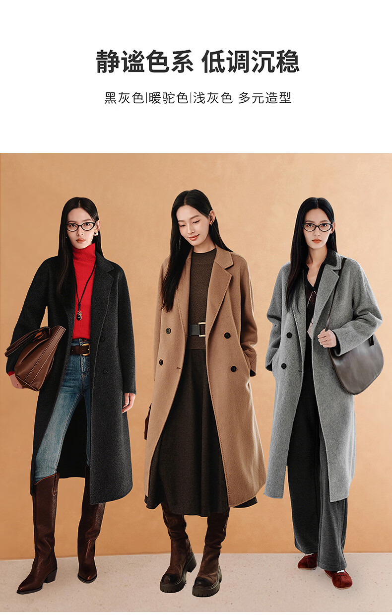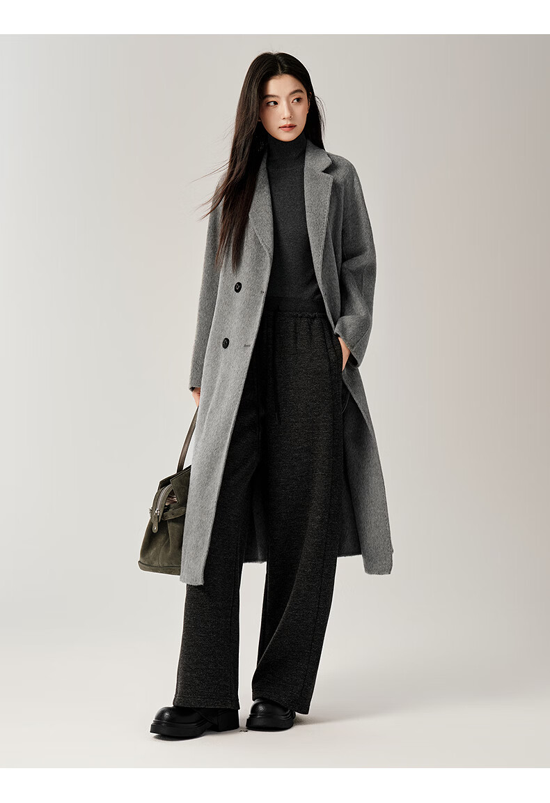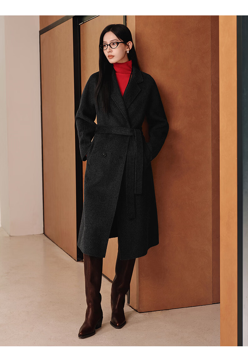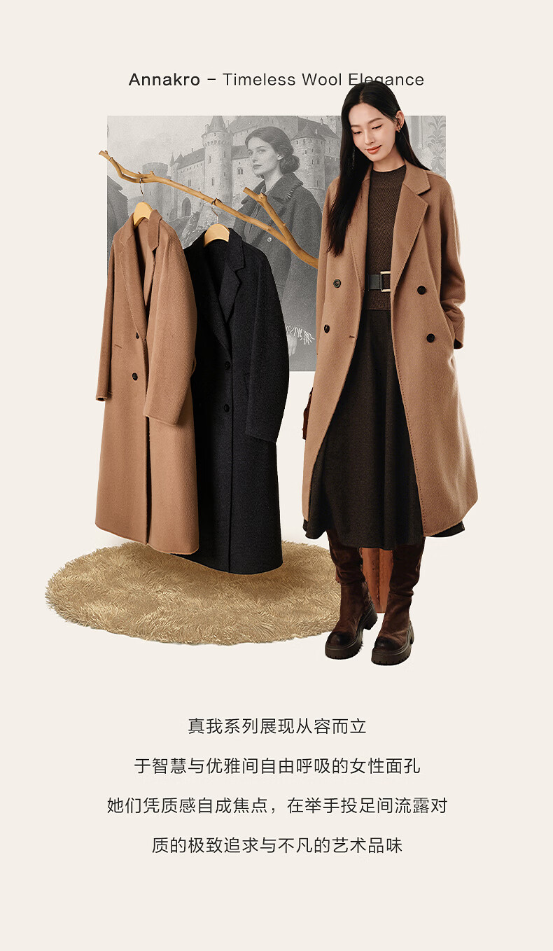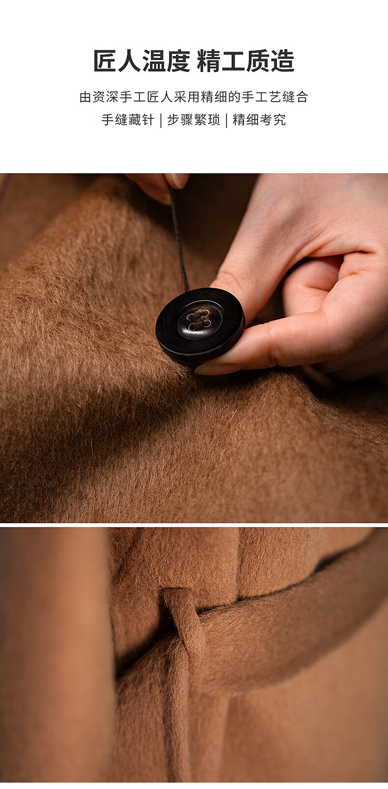Jiuzi Annako Sheep Wool x Alpaca Elegant Waist Double-sided Wool Coat Women 2025 Winter New Camel M