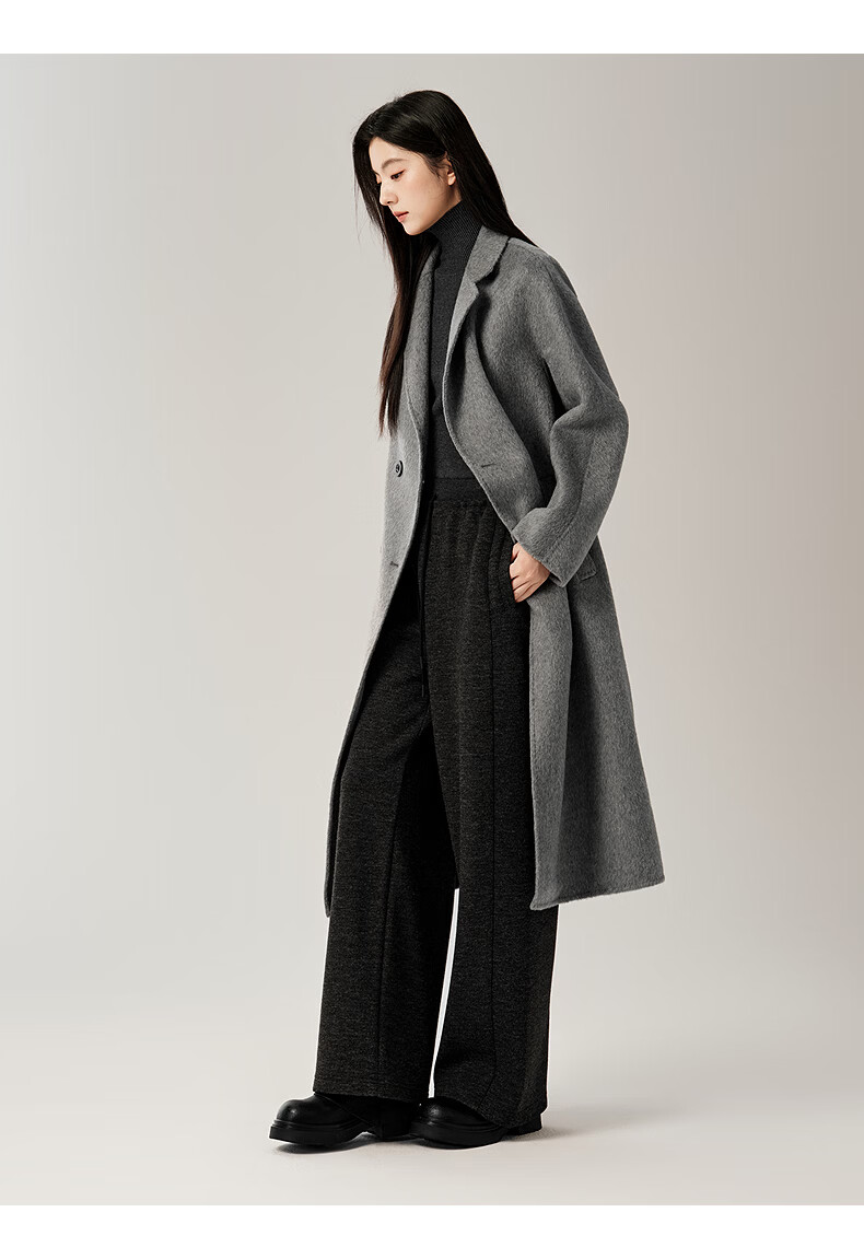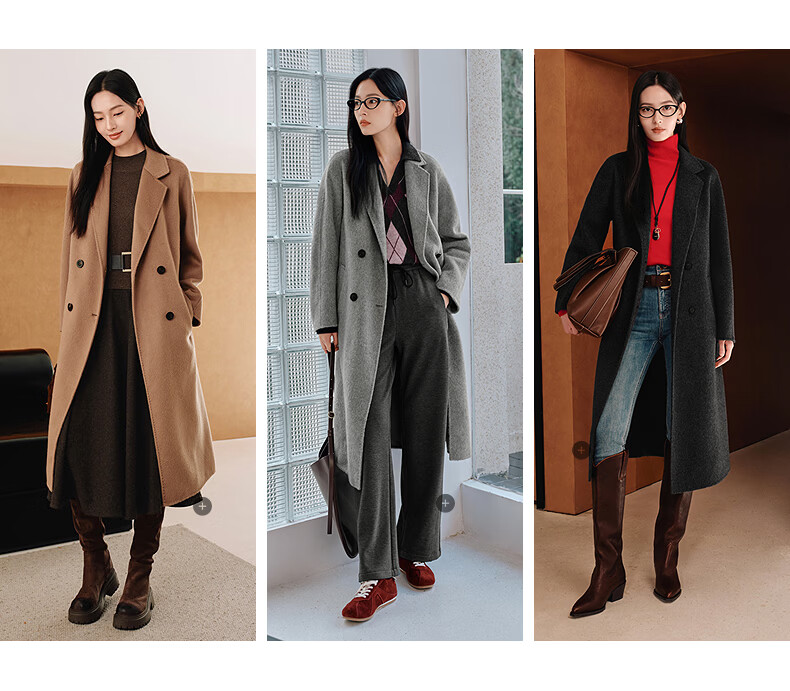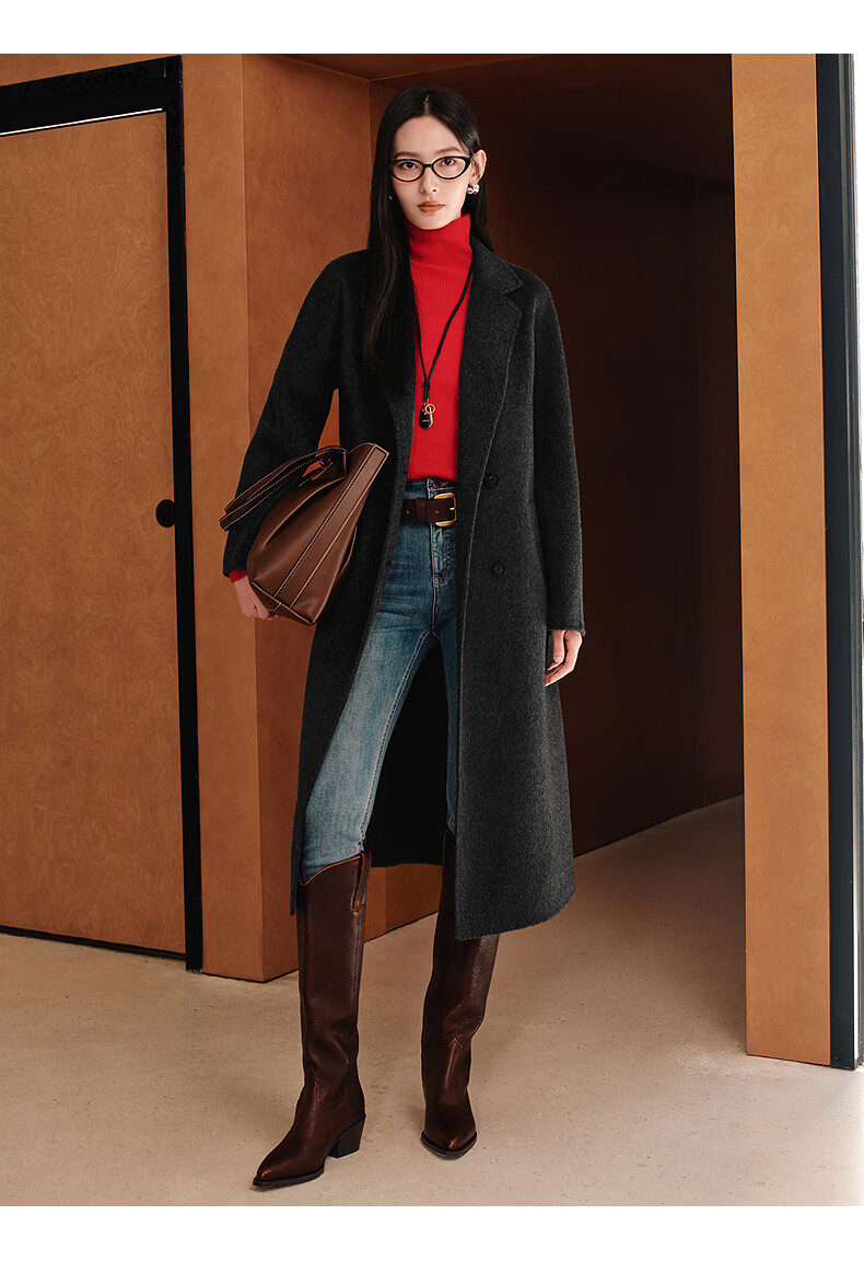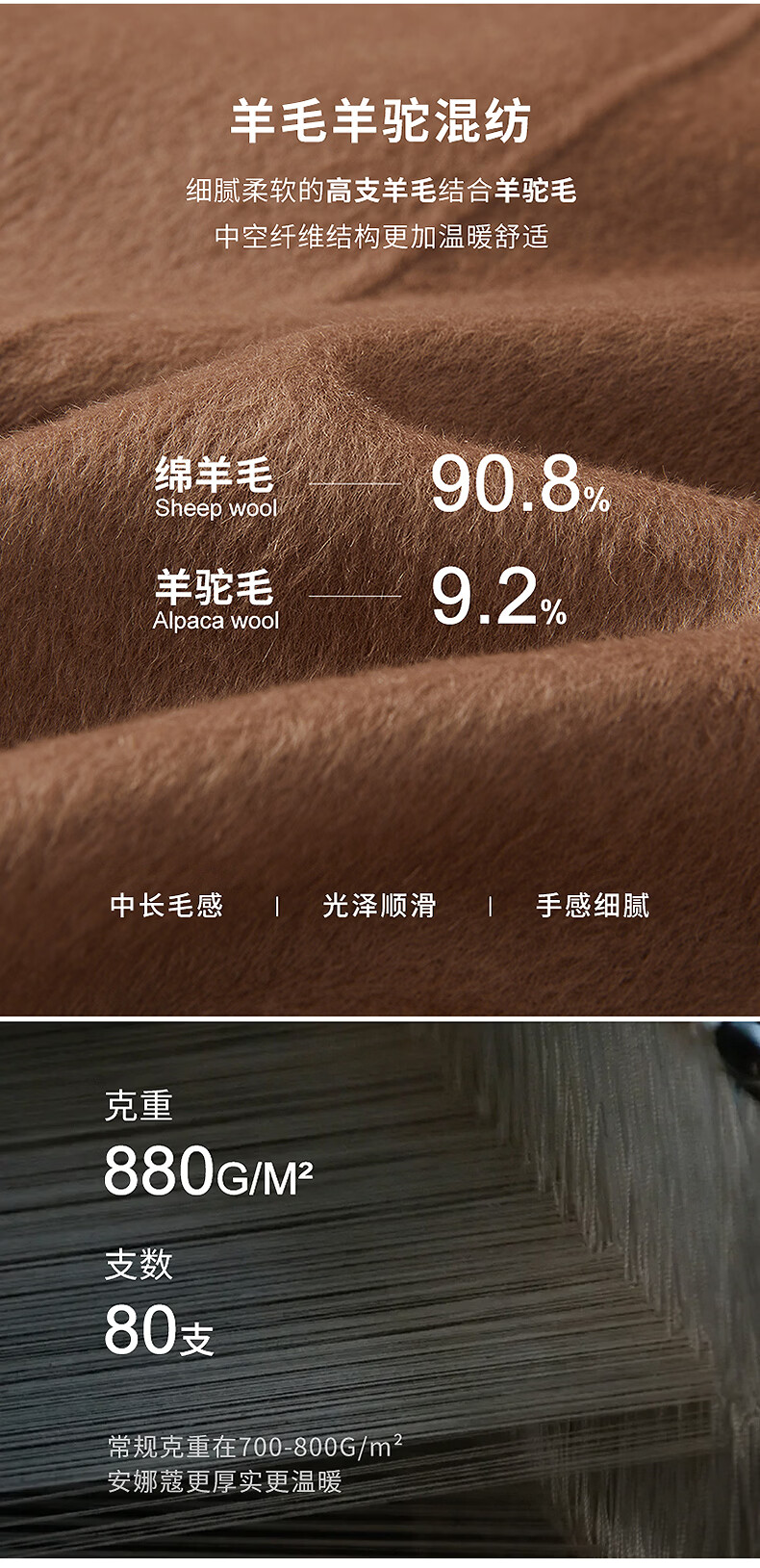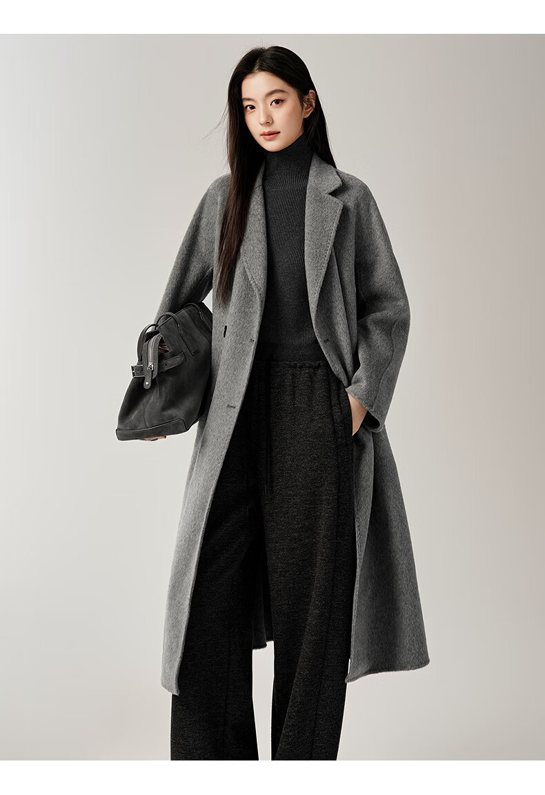 Jiuzi Annako Sheep Wool x Alpaca Elegant Waist Double-sided Wool Coat Women 2025 Winter New Camel M