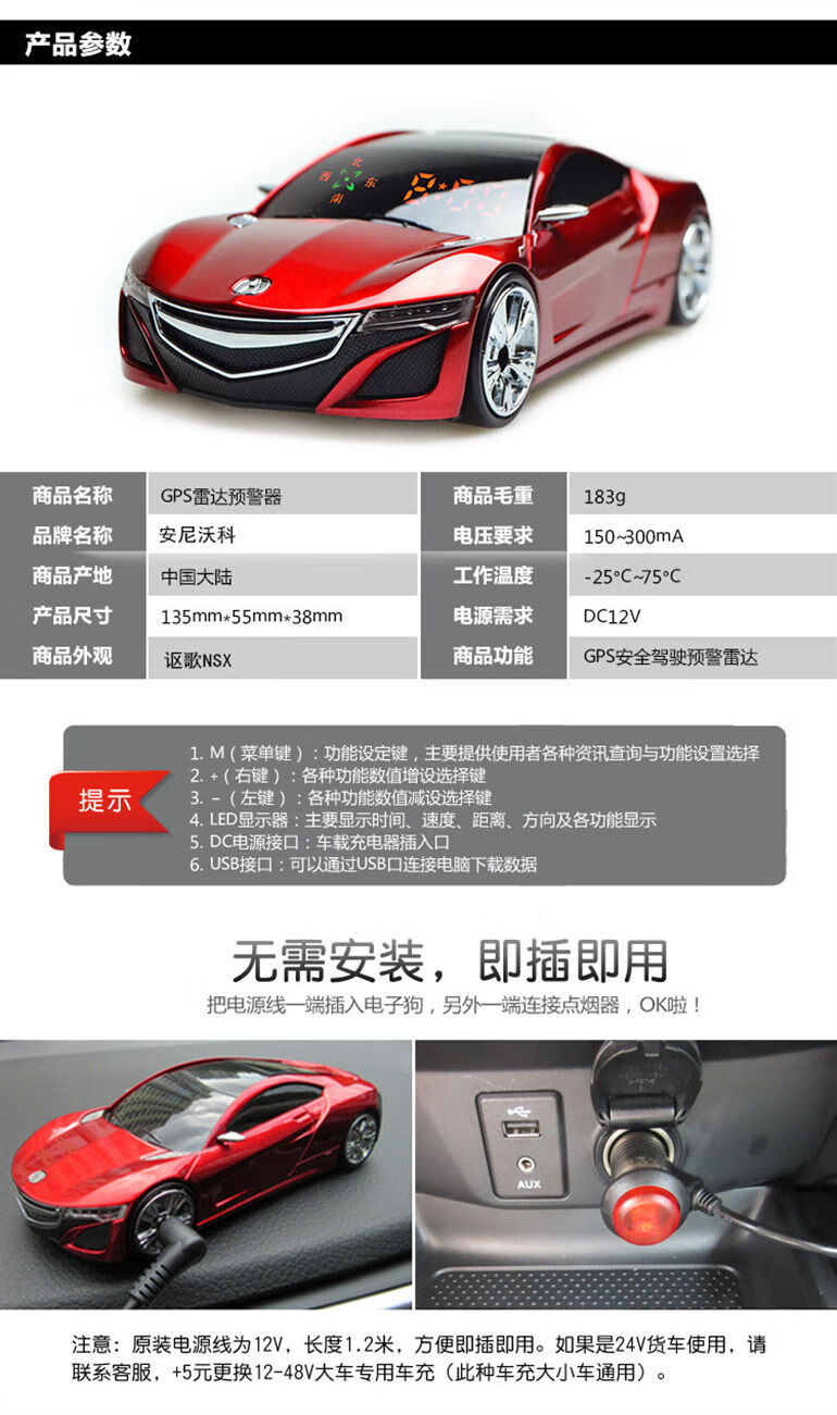 2025 New Car Electronic Dog Mobile Speed Radar Warning Device Advanced Car Wireless Automatic Upgrade Red Acura Hunting Dog Enhanced Edition