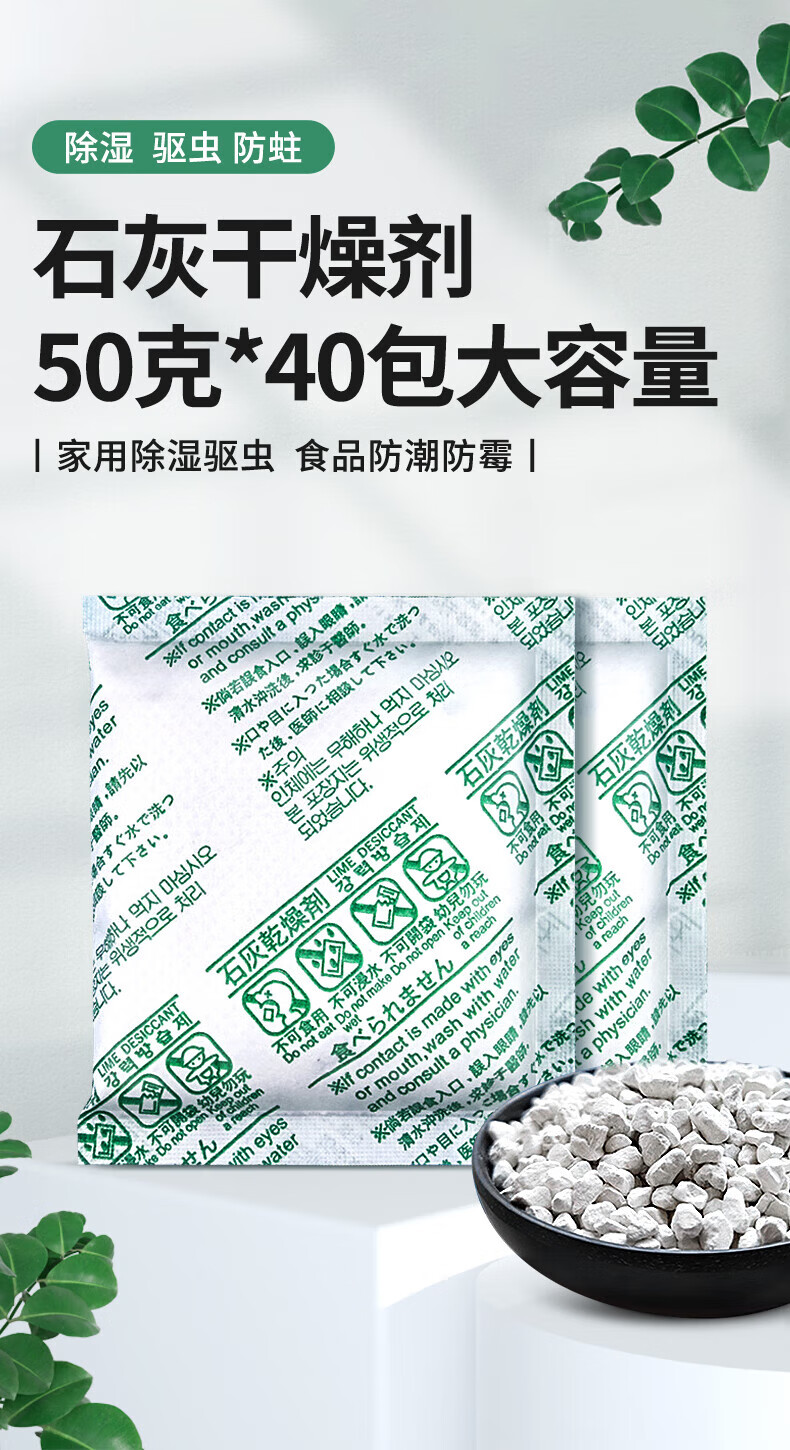 Quicklime desiccant indoor dehumidification bag food mildew-proof and moisture-proof wardrobe room basement student dormitory moisture absorption quicklime desiccant 50g*40 pack