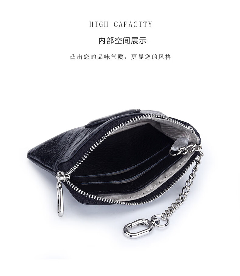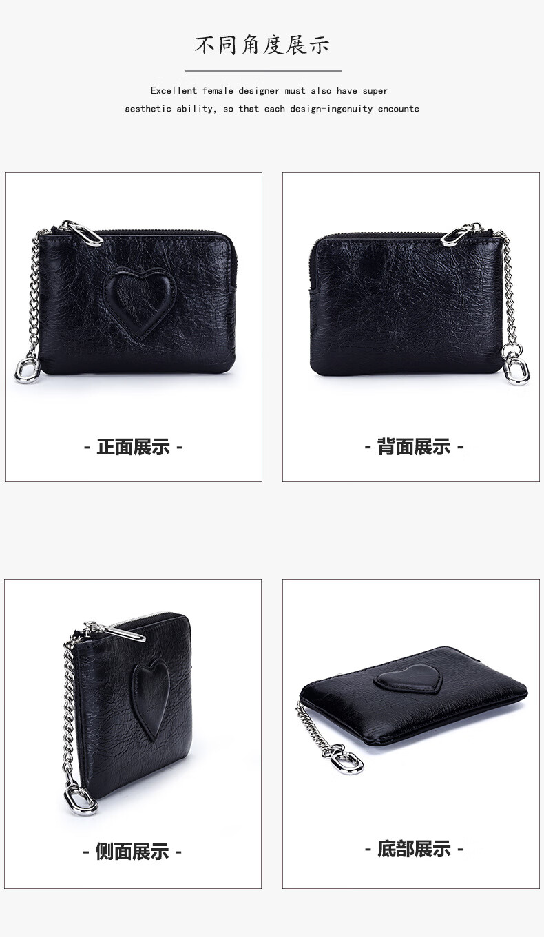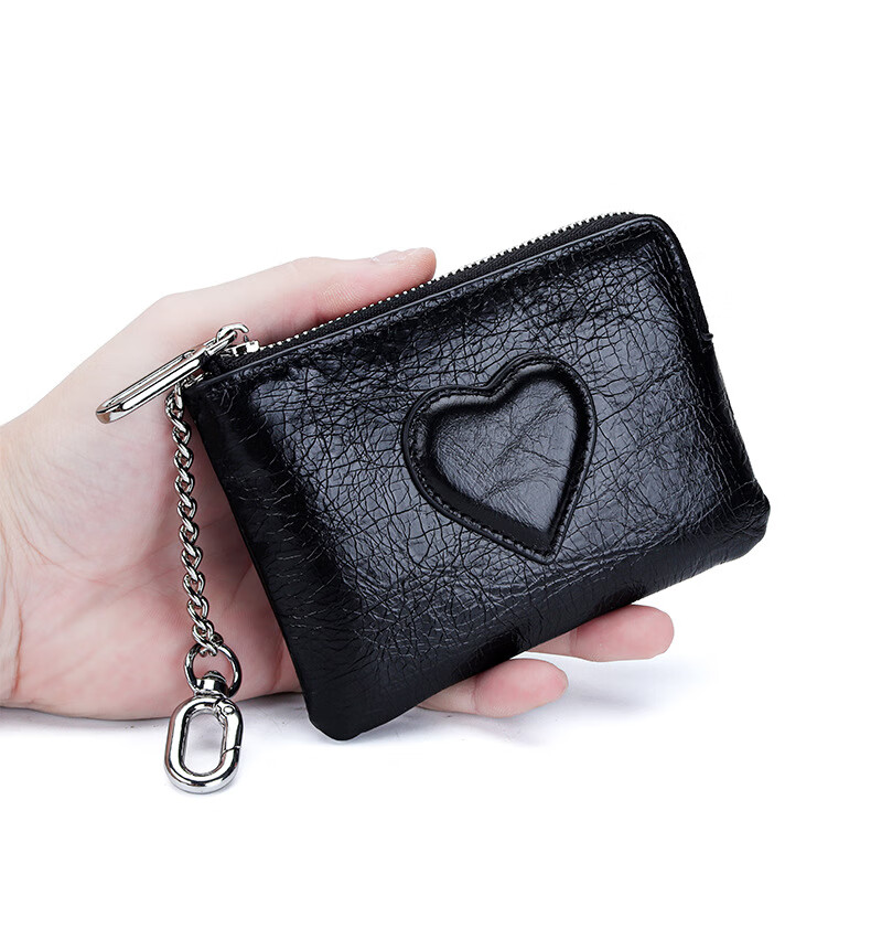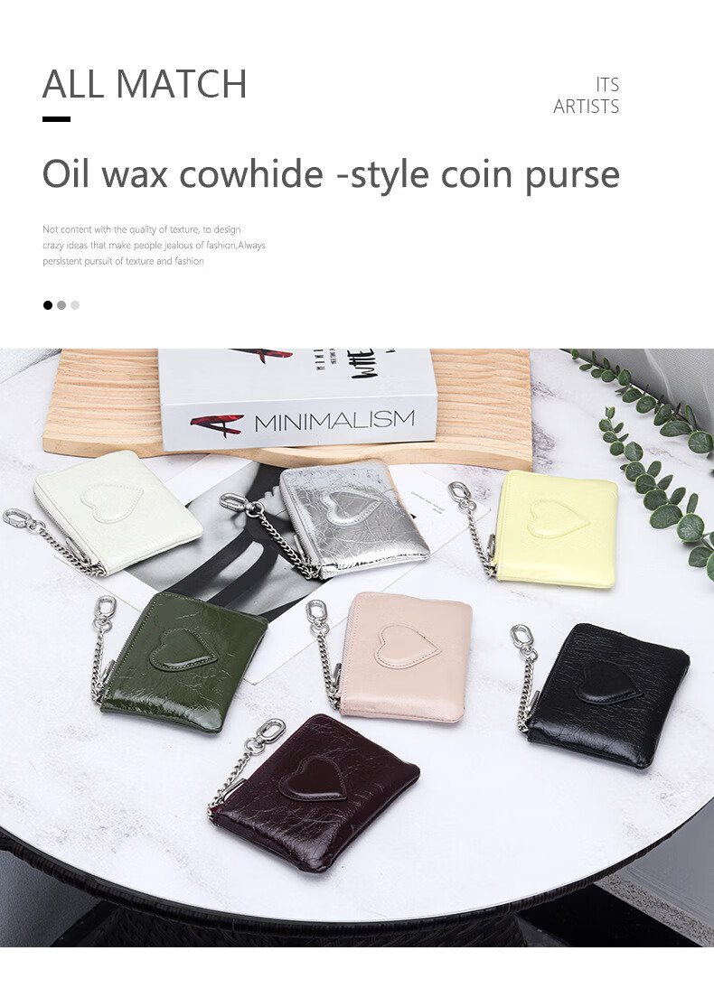 CHLING KAYAN small ck women's bag with oil wax cowhide leather small ladies coin purse 2025 new ins card ID bag hard black