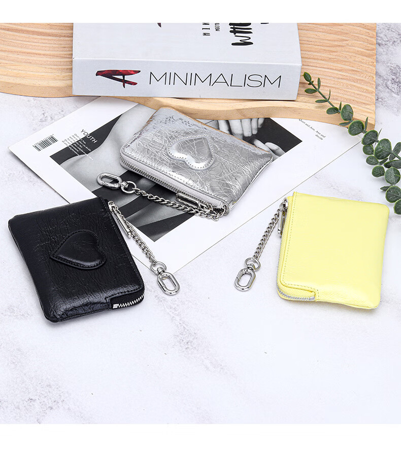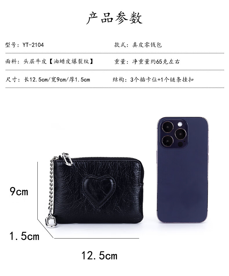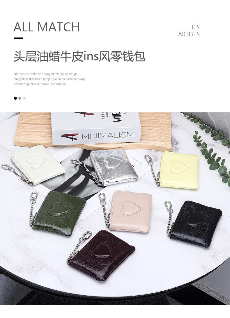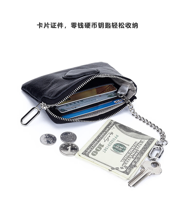 CHLING KAYAN small ck women's bag with oil wax cowhide leather small ladies coin purse 2025 new ins card ID bag hard black