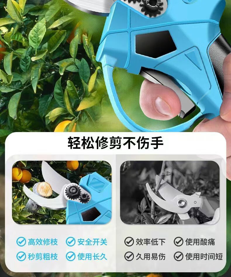 German electric pruning shears, branch pruning, wireless fruit tree shears, lithium battery rechargeable garden thick branch shears, fruit shears, brushless supreme model, five batteries, two batteries, one charge