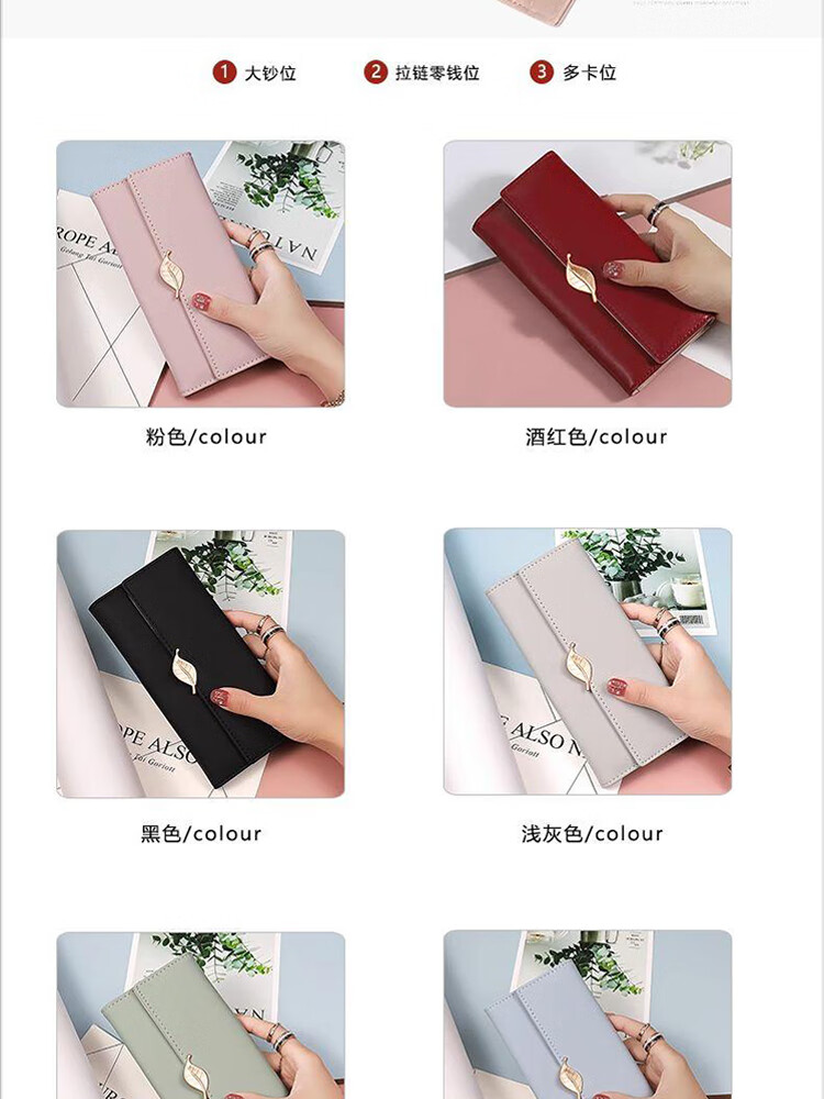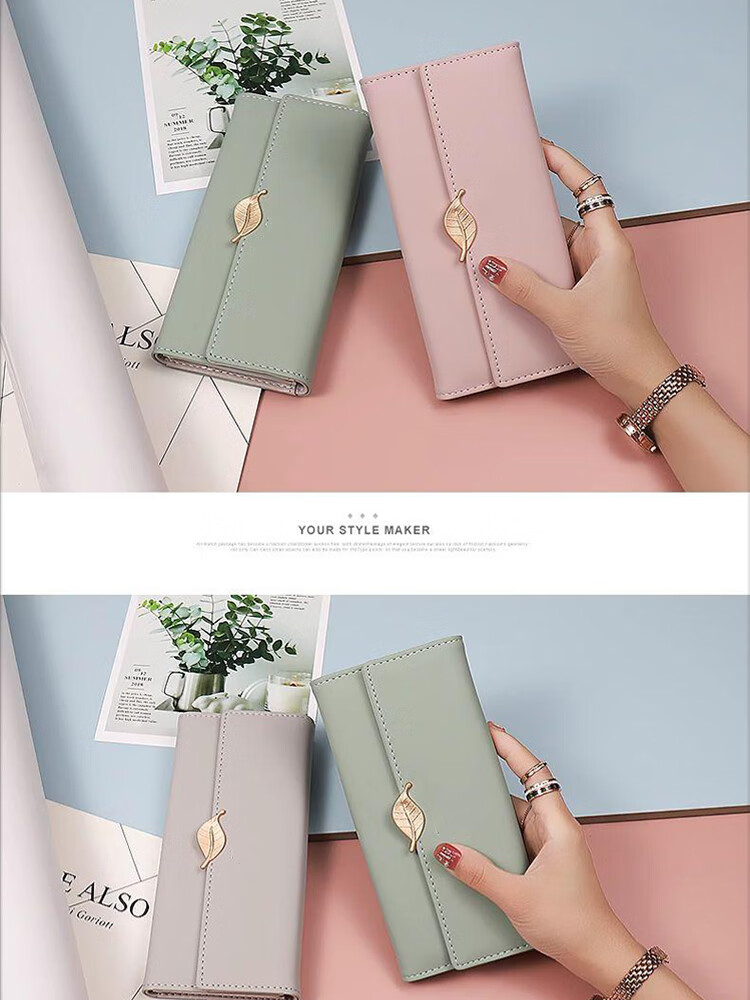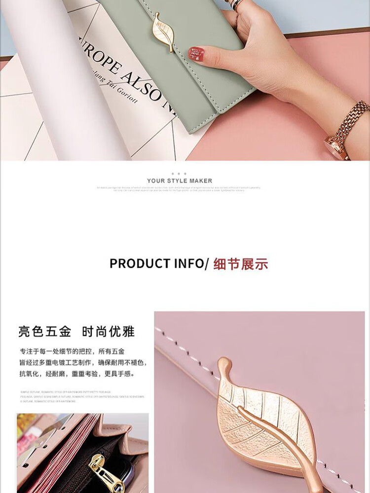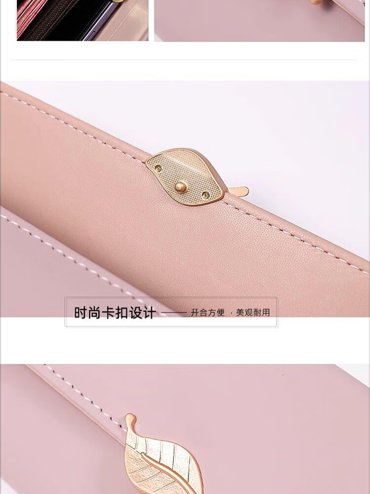 CHLING KAYAN Small ck Women's Bag Wallet Women's 2025 New Large Capacity Women's Long Wallet Small Fresh Leaf Card Holder Black