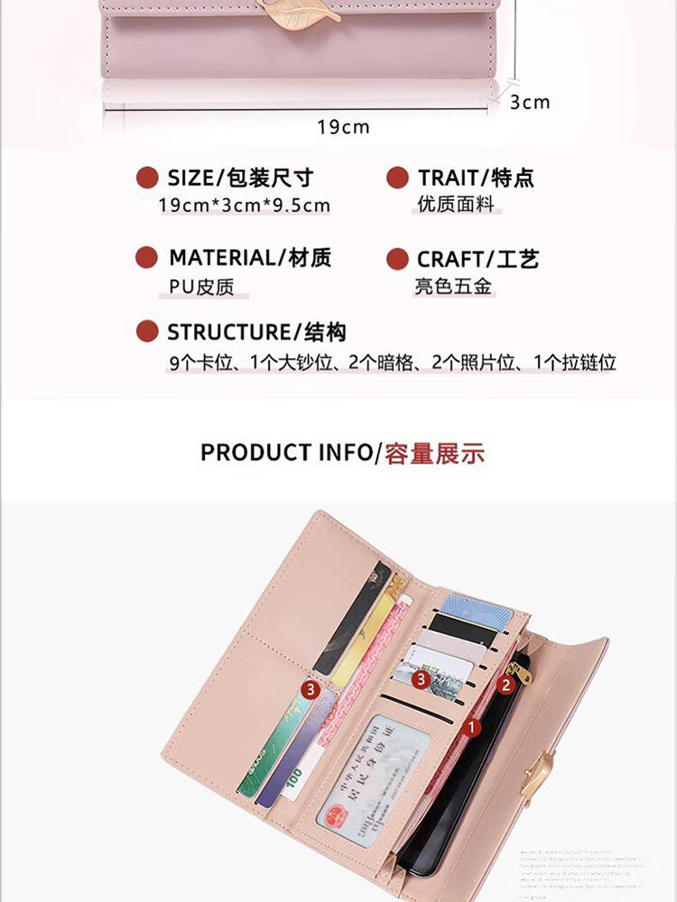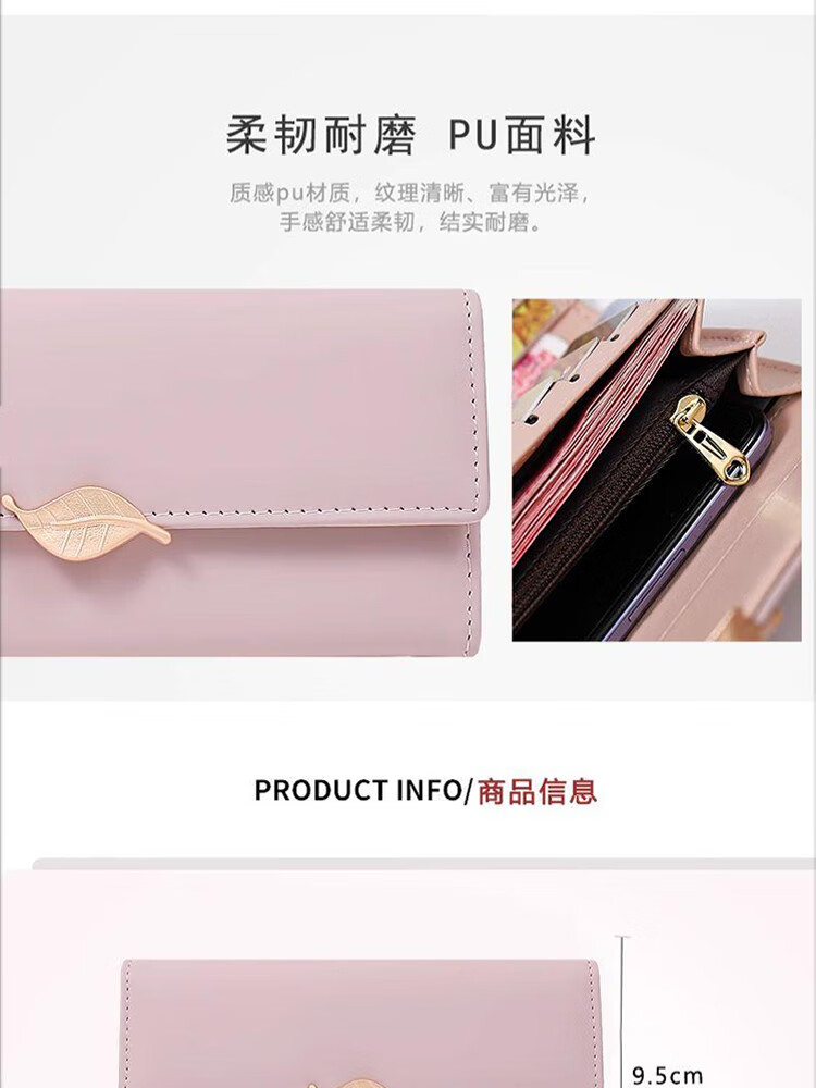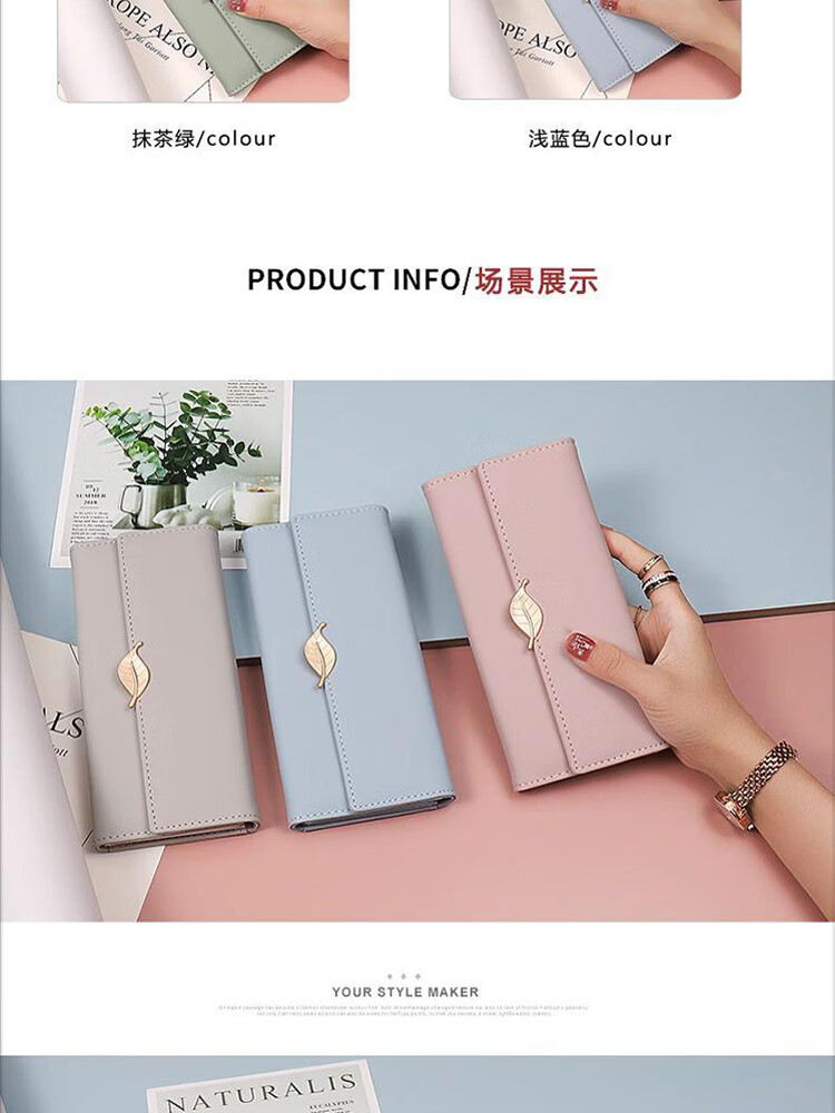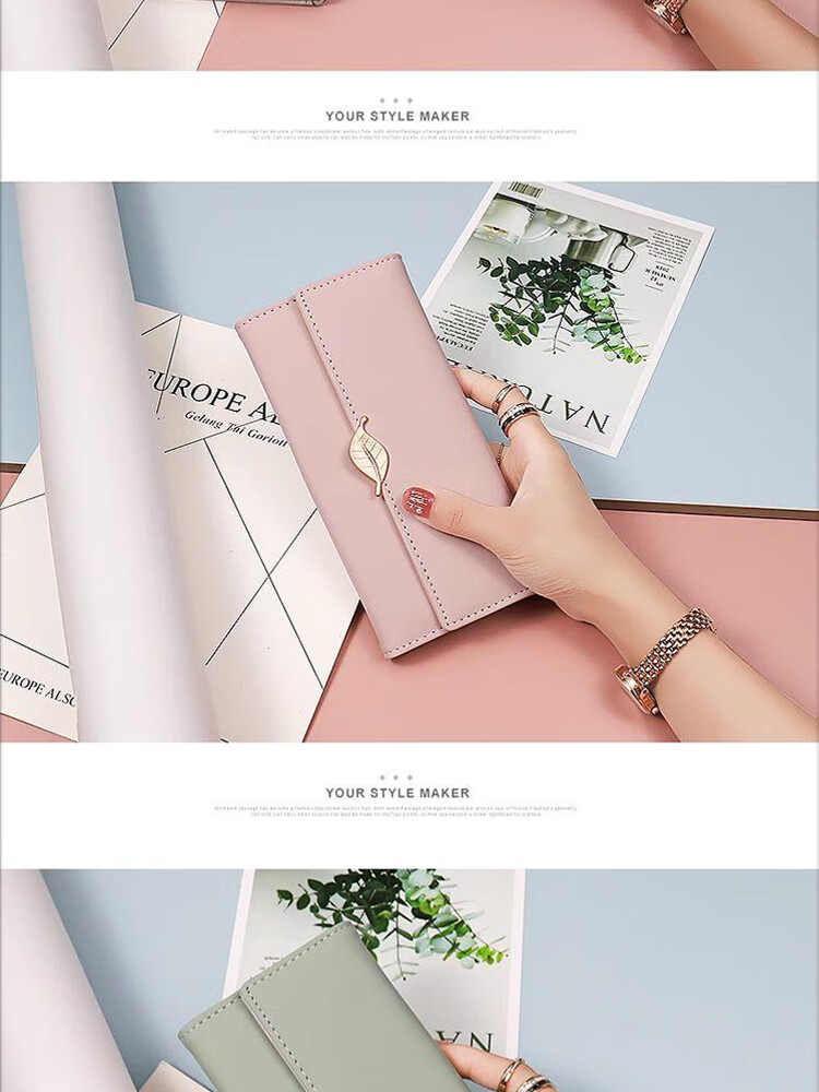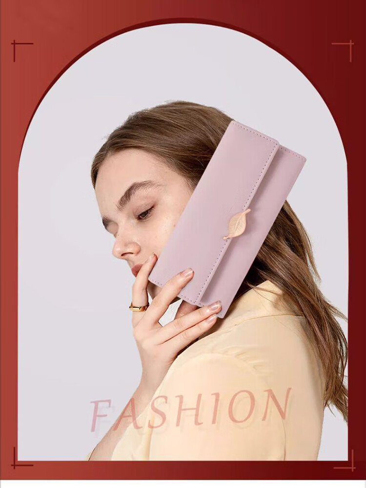 CHLING KAYAN Small ck Women's Bag Wallet Women's 2025 New Large Capacity Women's Long Wallet Small Fresh Leaf Card Holder Black