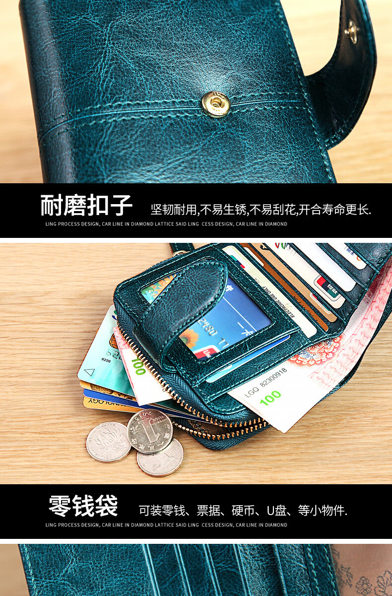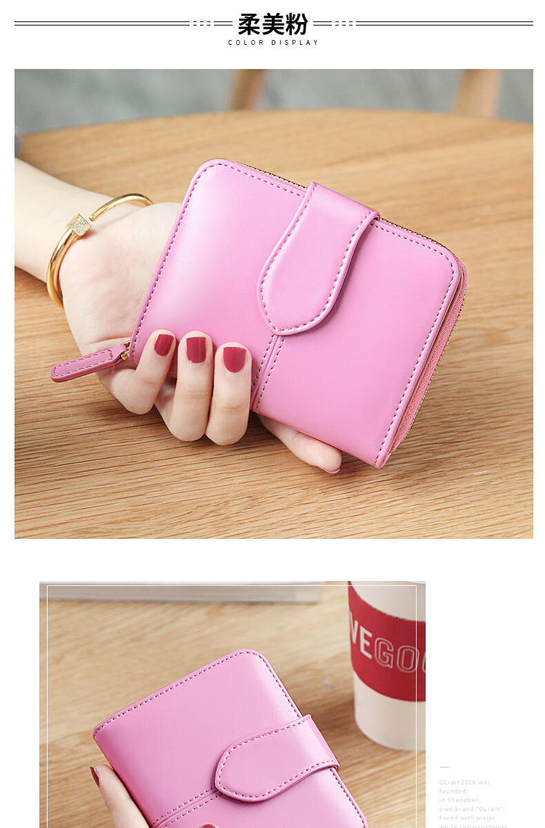 CHLING KAYAN small ck women's bag 2025 new style exquisite simple genuine leather short women's wallet women's zipper card bag small folding burgundy (change style)