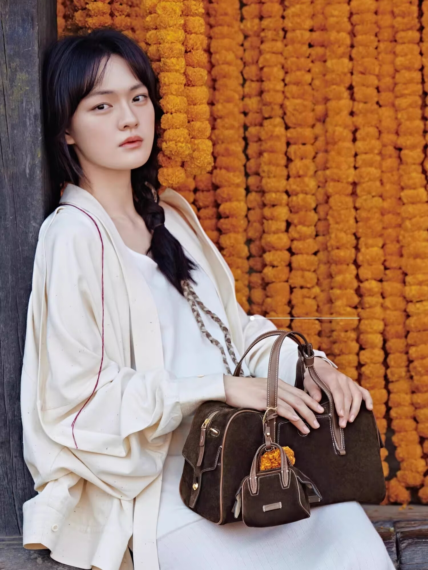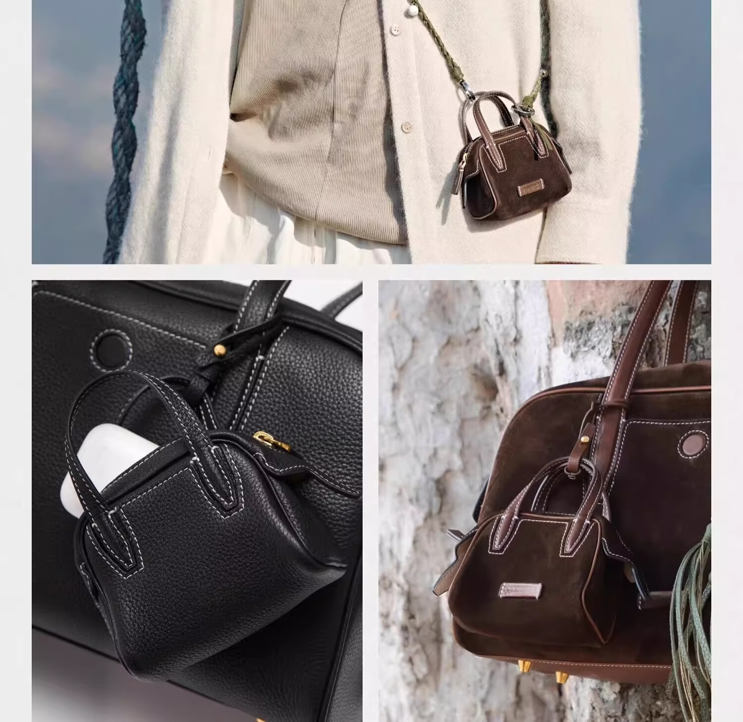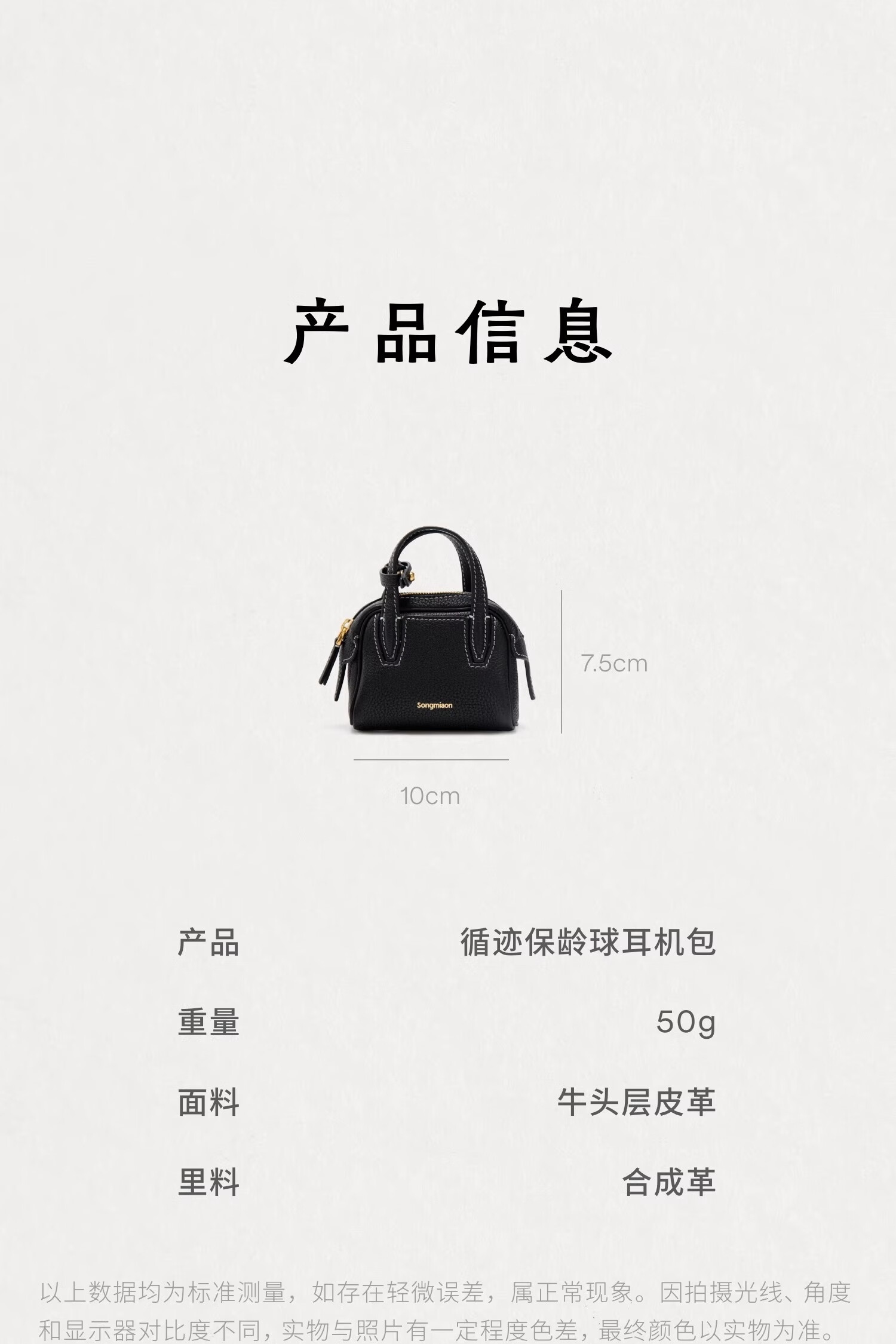 SONGMIAON Yamashita Track Series Bowling Headphone Bag Hand Carrying Mini Key Lipstick Bag Pendant School Bag Accessories Small Pendant Smoked Black Cowhide