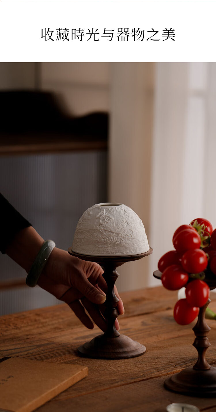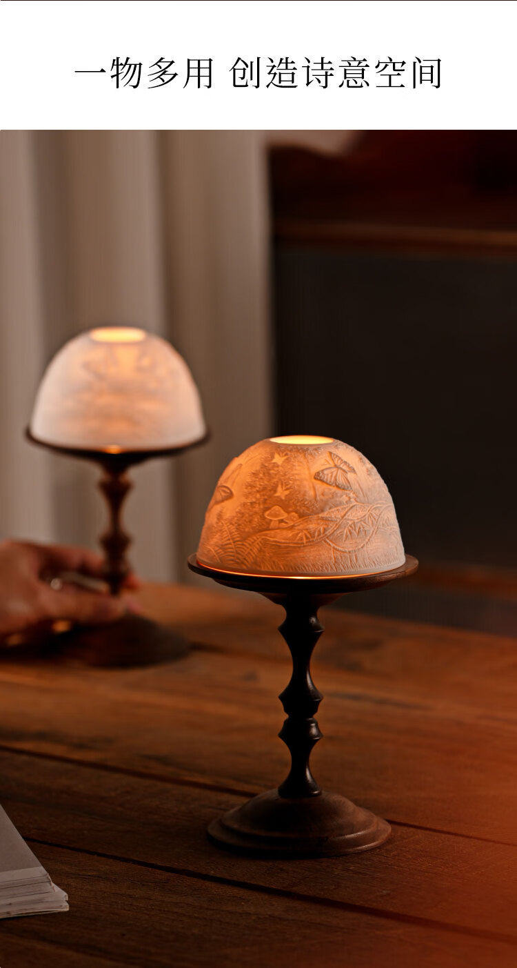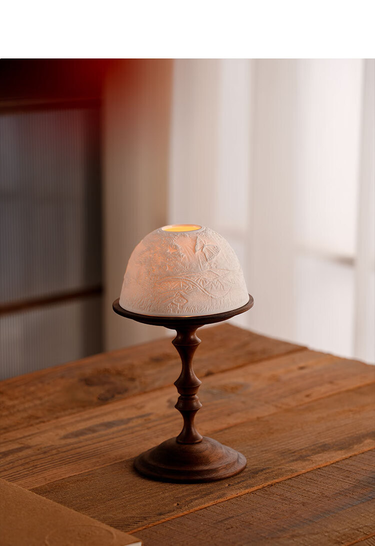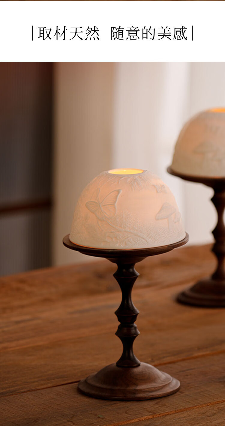 Shantou Lincun antique North American walnut candle holder, bone china light cover, decorative scented candle, romantic dining table and side cabinet ornaments, North American walnut candle holder + ceramic light cover