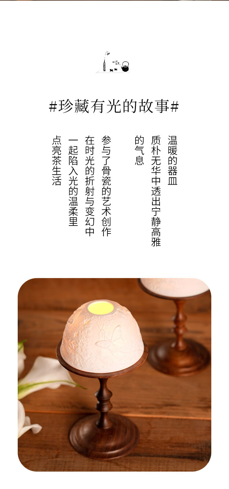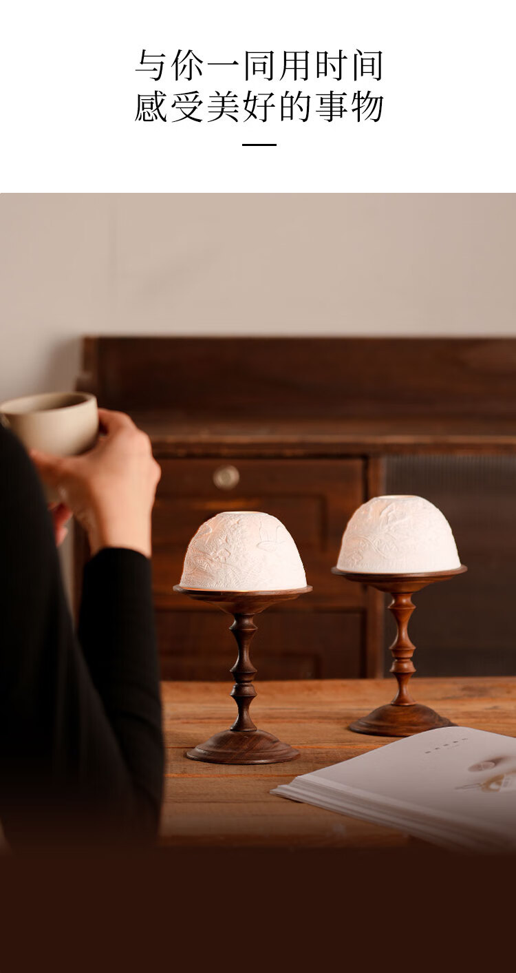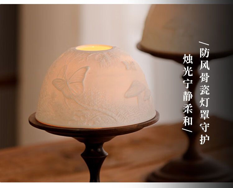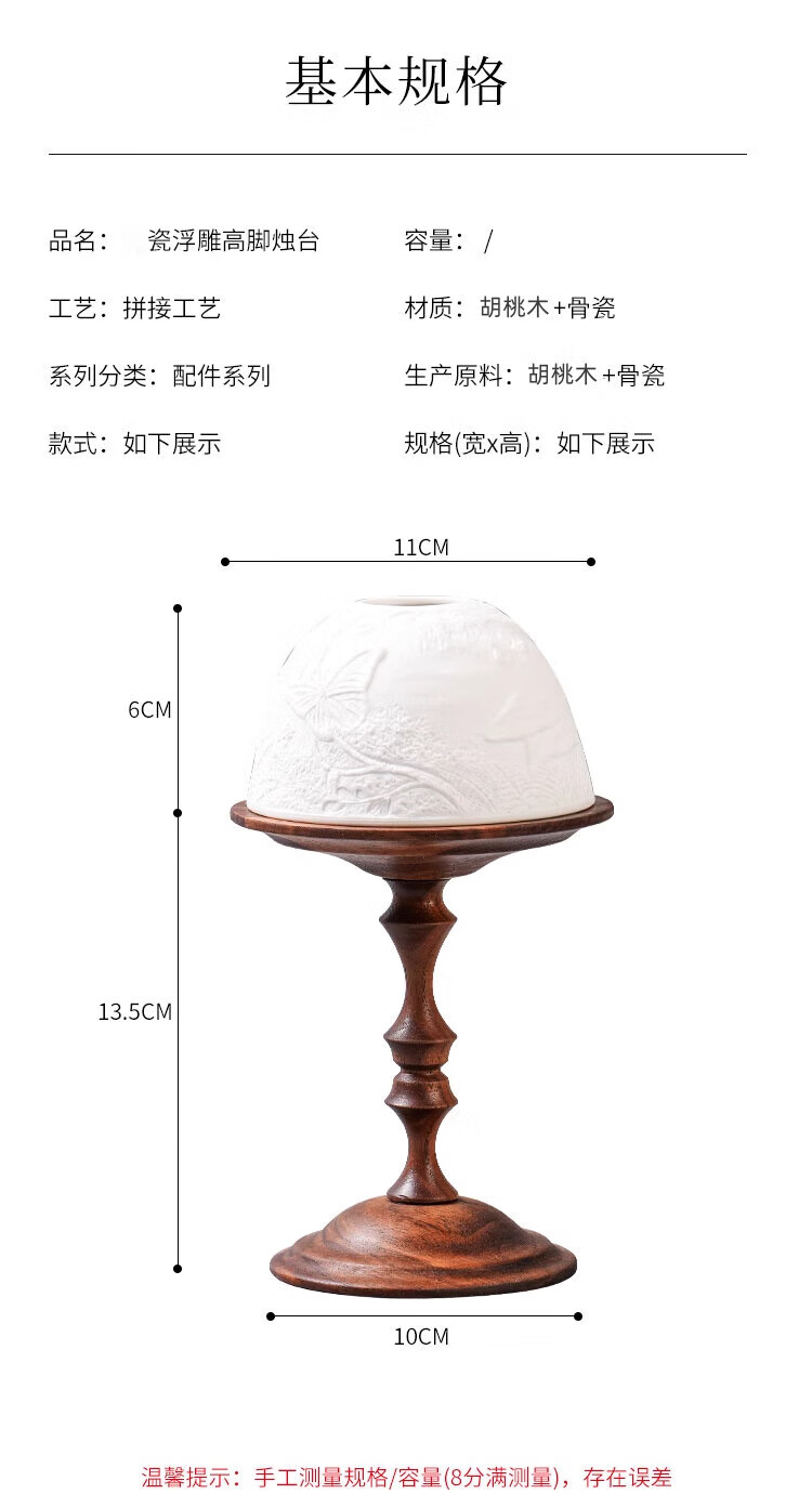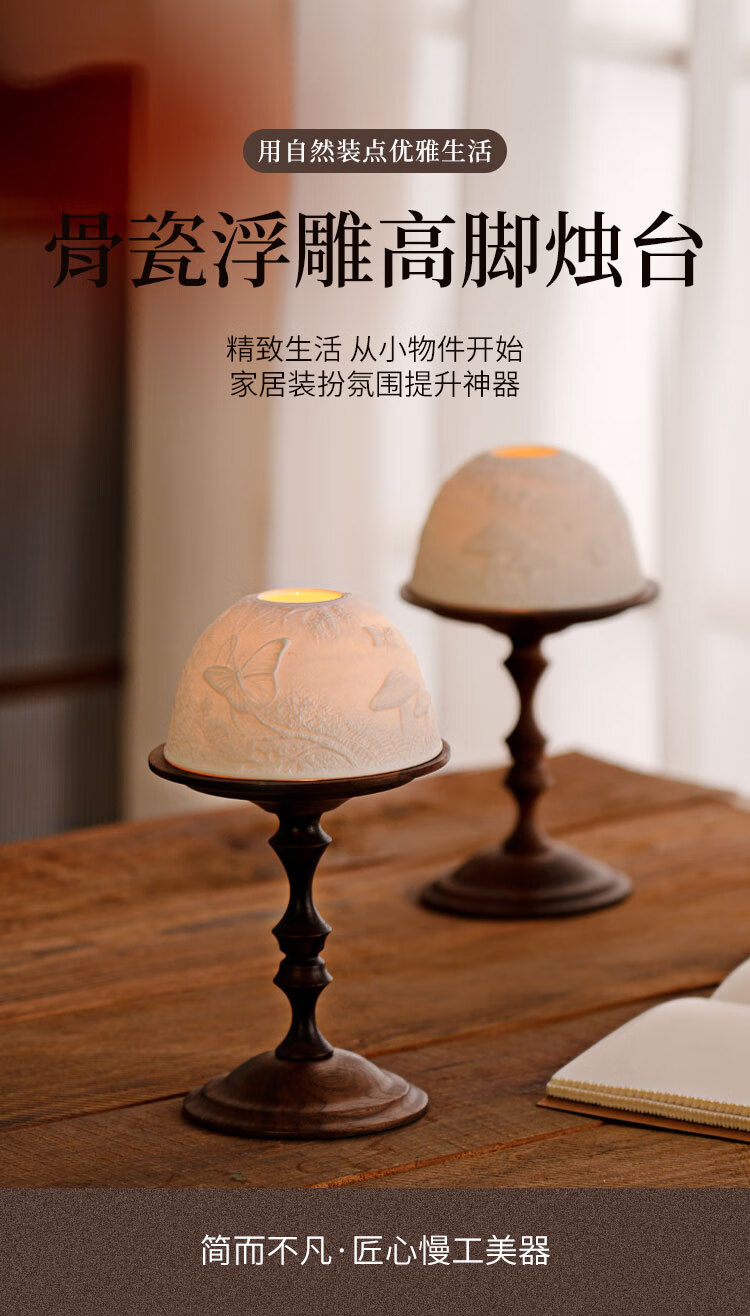 Shantou Lincun antique North American walnut candle holder, bone china light cover, decorative scented candle, romantic dining table and side cabinet ornaments, North American walnut candle holder + ceramic light cover