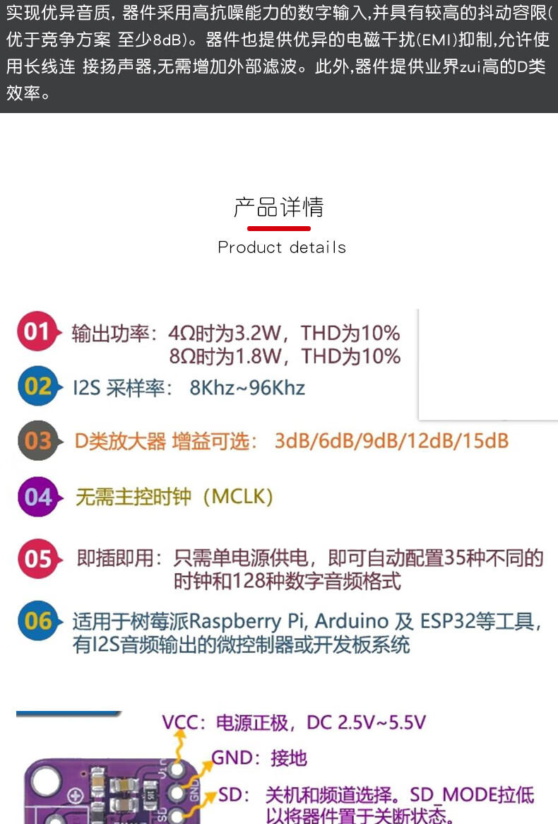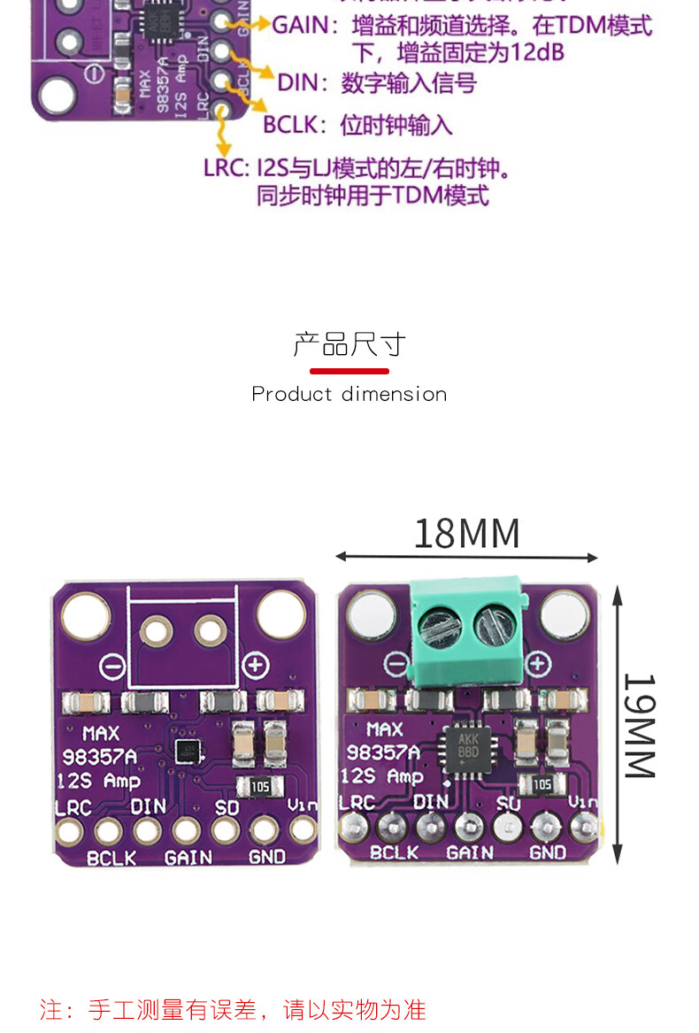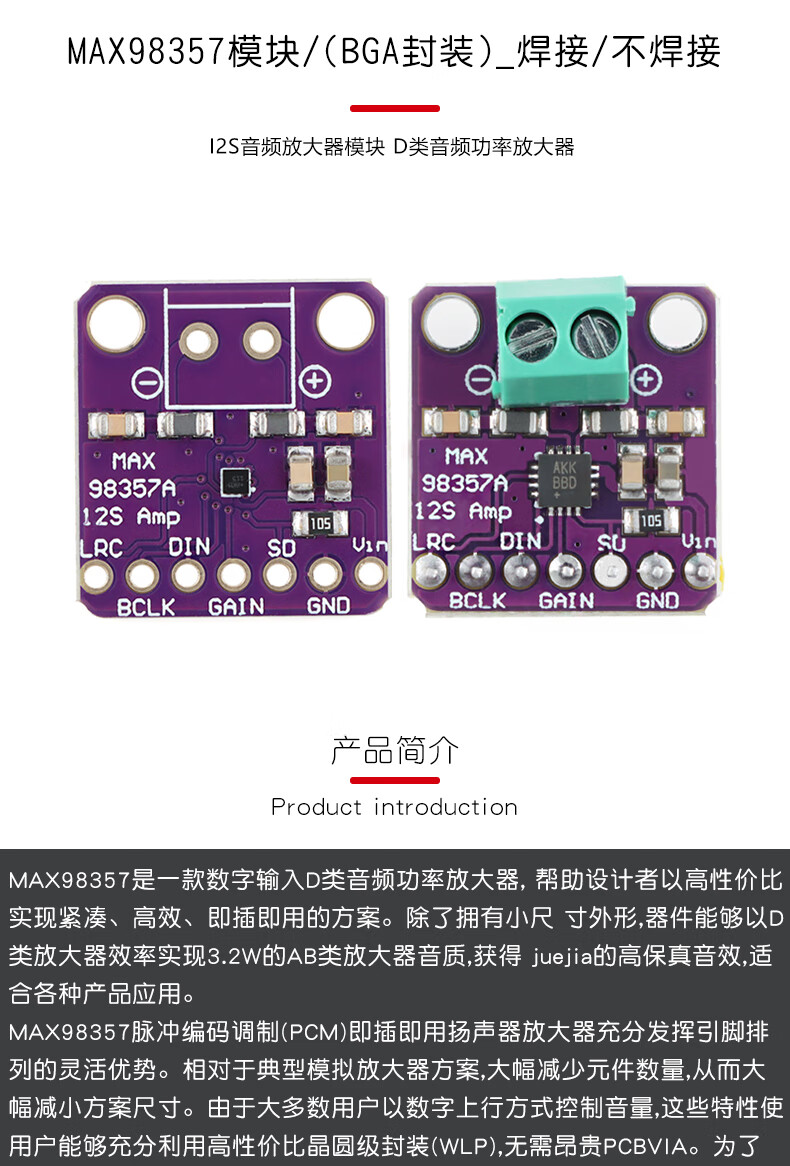 MAX98357AETE I2S audio amplifier module Class D audio power amplifier TQFN-16/BGA-9 MAX98357 module_no soldering no specifications