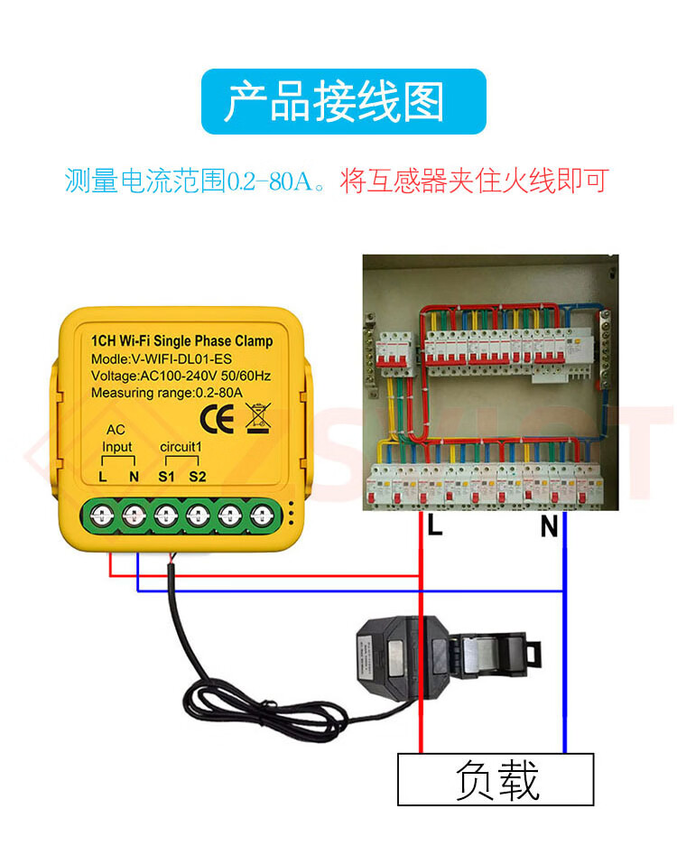 Tuya Smart WiFi Battery Voltage and Current Detector Power Failure Power Abnormal Alarm Transformer Remote Monitoring Tuya Smart 2-way Transformer-WiFi