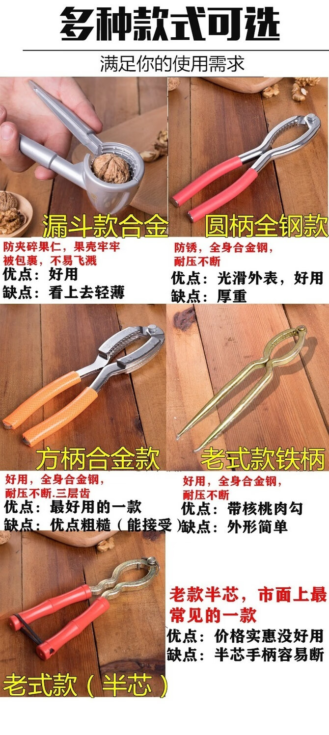 ZQ walnut clip walnut artifact household walnut pliers multi-functional walnut sheller thickened and labor-saving spring clip half core easy to deform