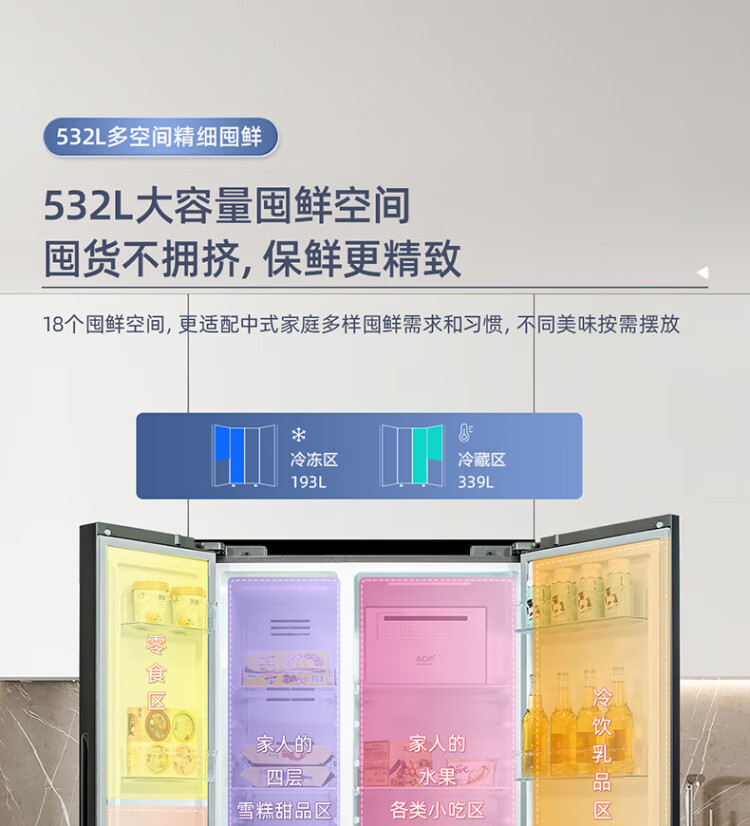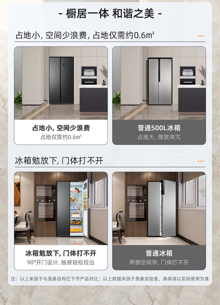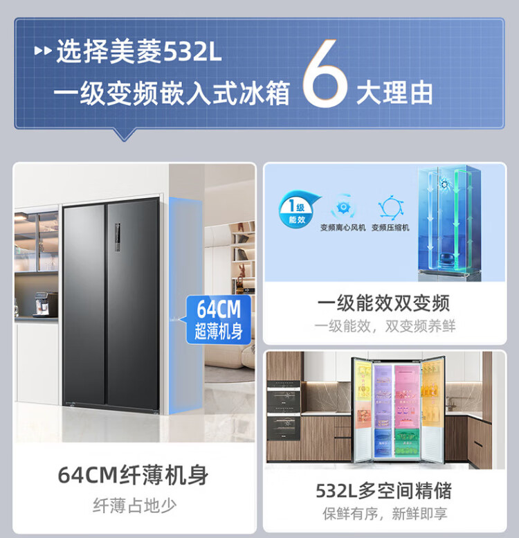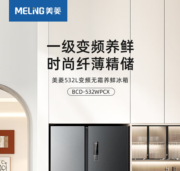 MeiLing Storage Refrigerator 532 liters two-door double-door household ultra-thin embedded large capacity first-class energy efficiency air-cooled frost-free energy-saving odor-free refrigerator BCD-532WPCX