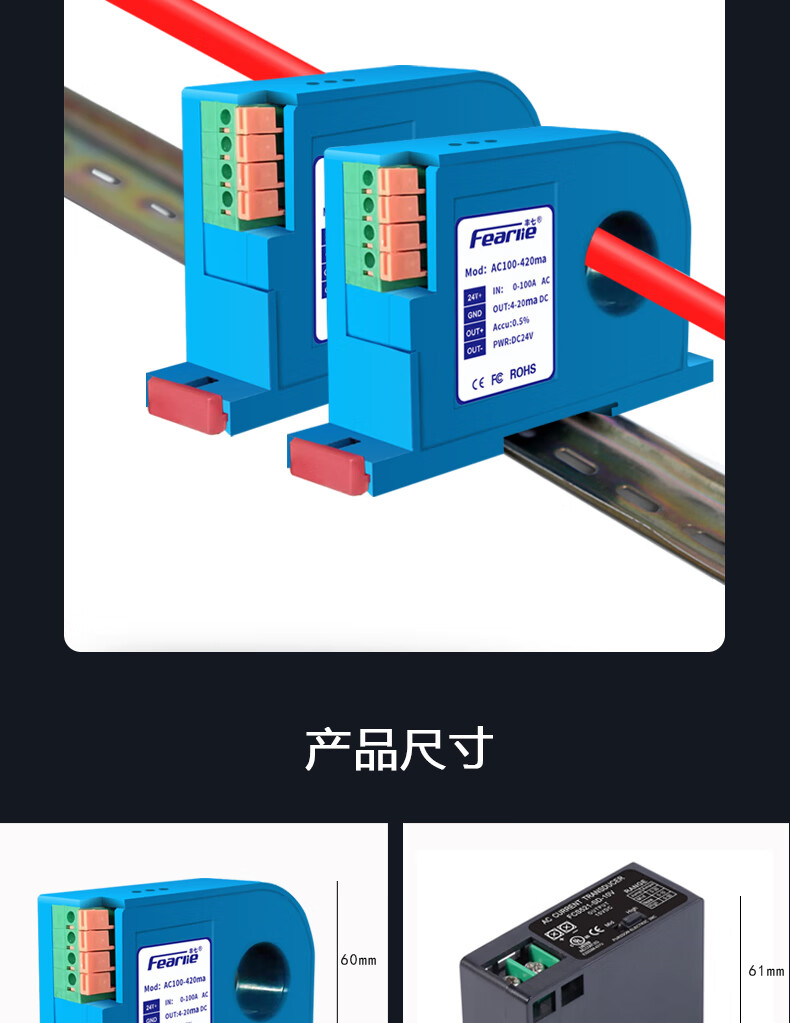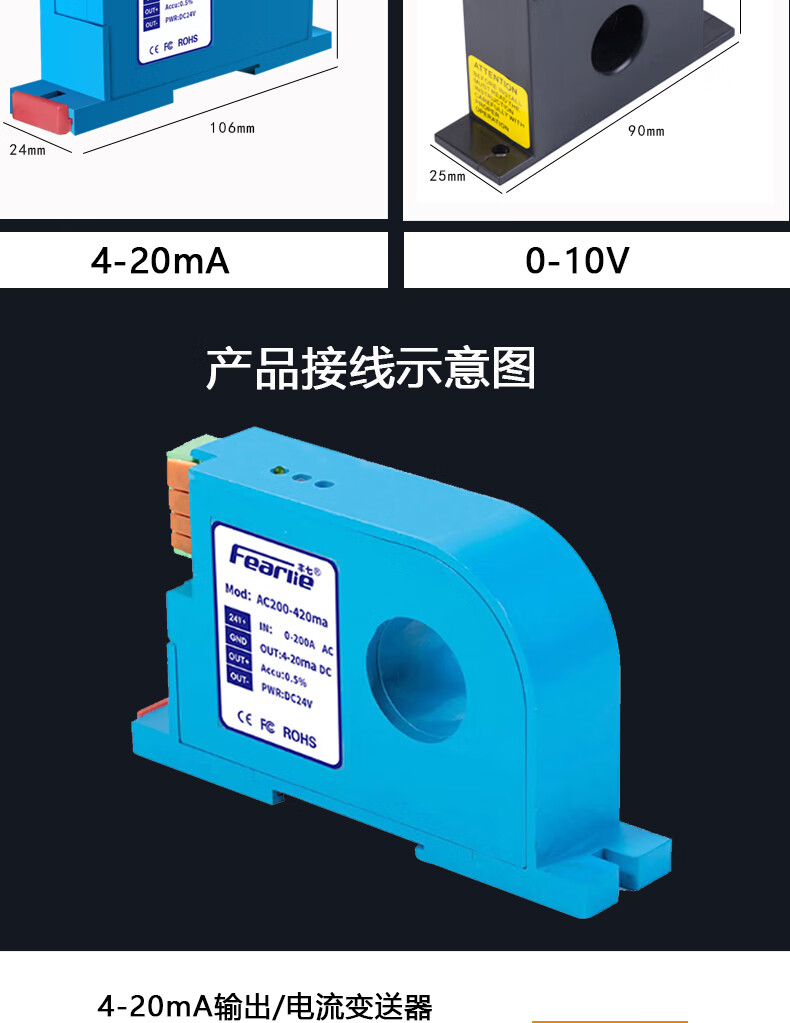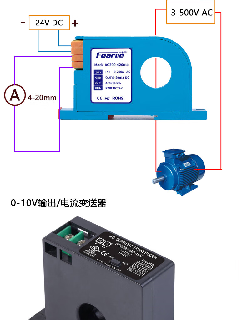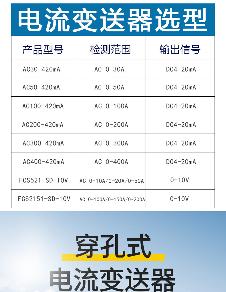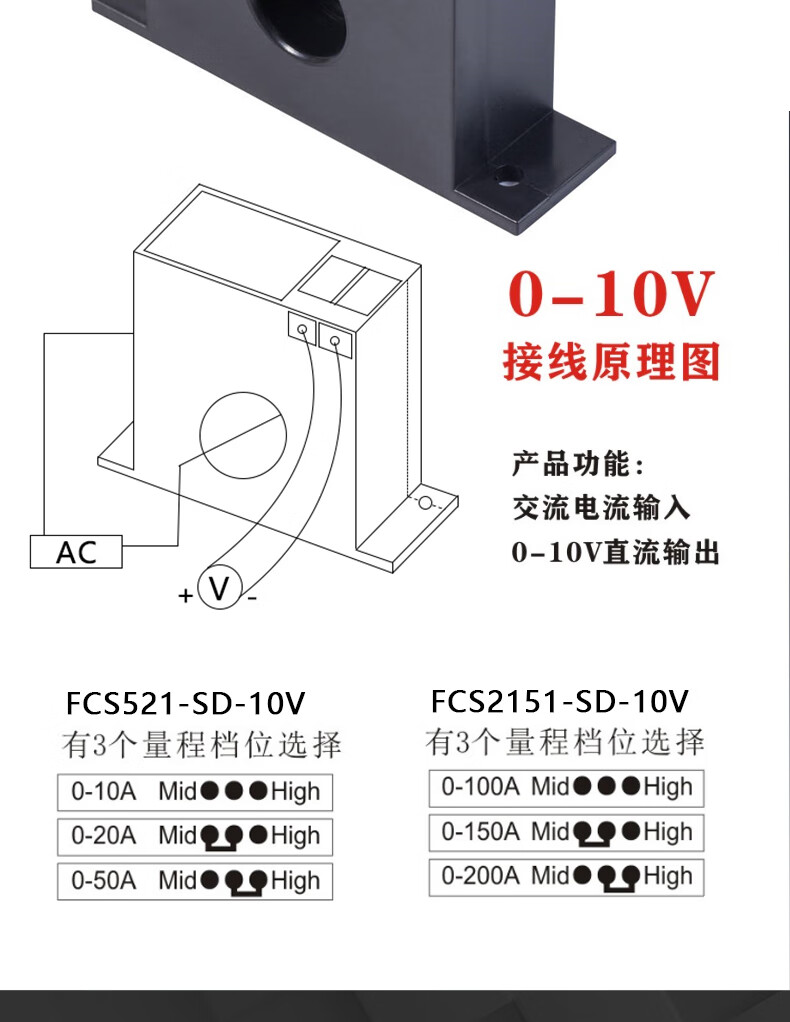High-precision AC current transmitter 420mA DC signal output perforated induction transformer FCS521-SD-10V