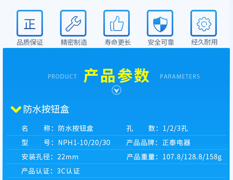 Chint Waterproof Button Box NPH1-10 NPH1-20 NPH1-30 One-digit, two-digit, three-digit button box 22mm NPH1-30 (3 digits)