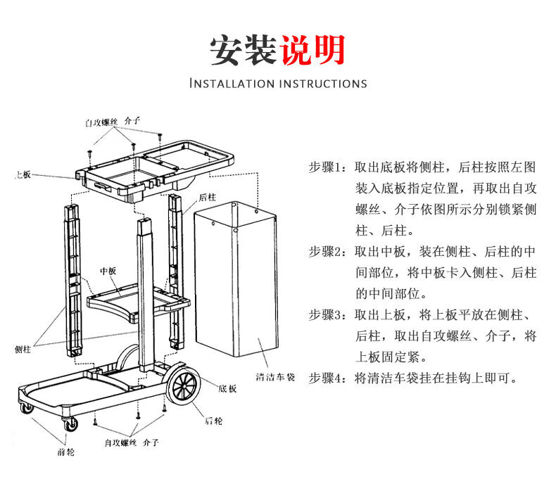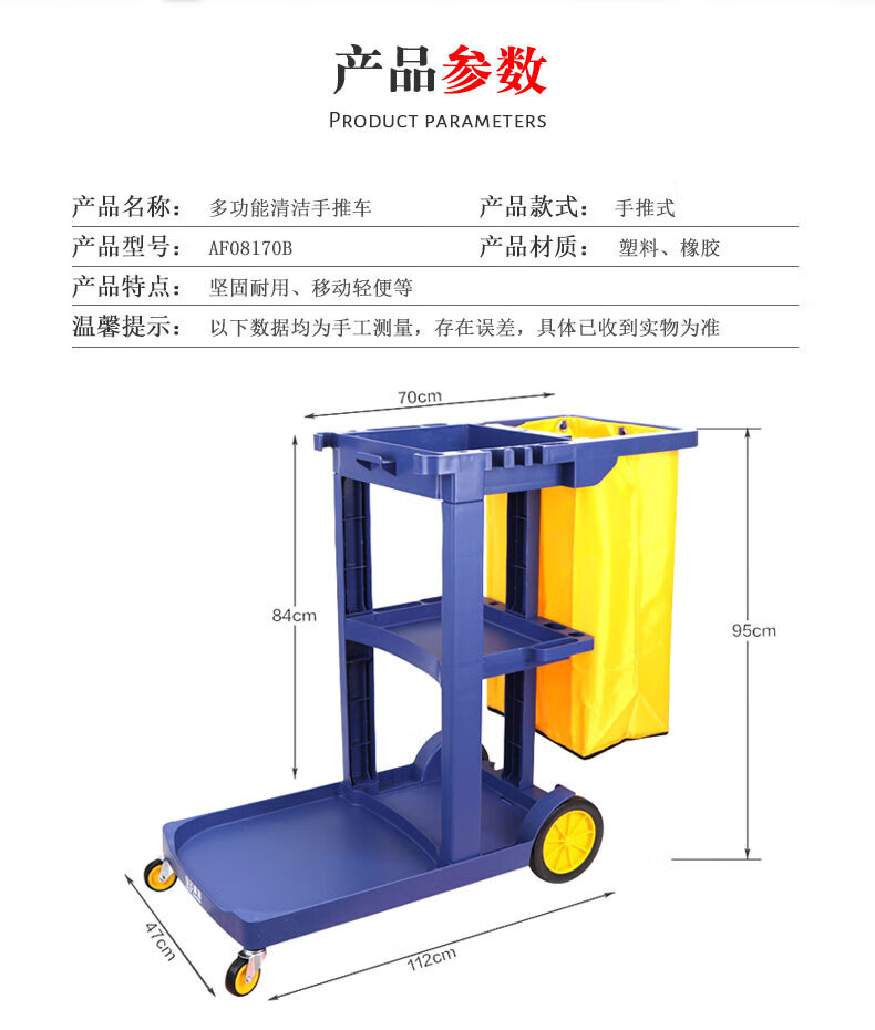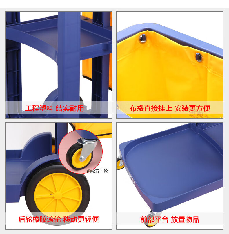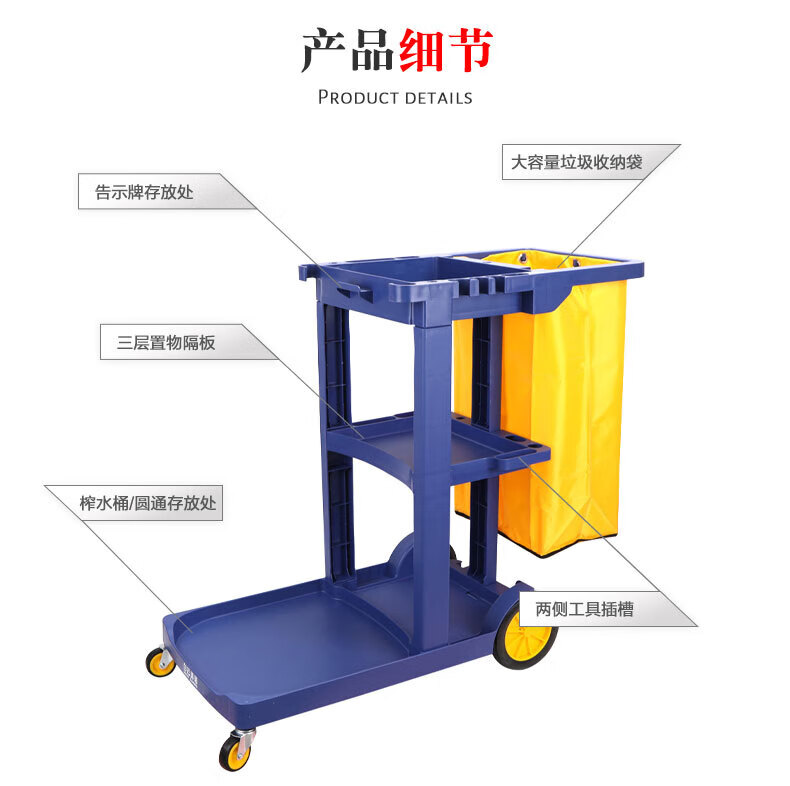 Cleaning cart multi-functional cleaning trolley hotel room special tool cart property linen hygiene cart thickened blue thickened without cover