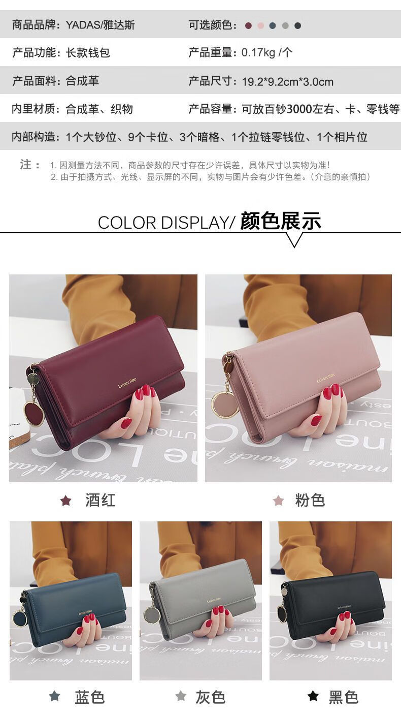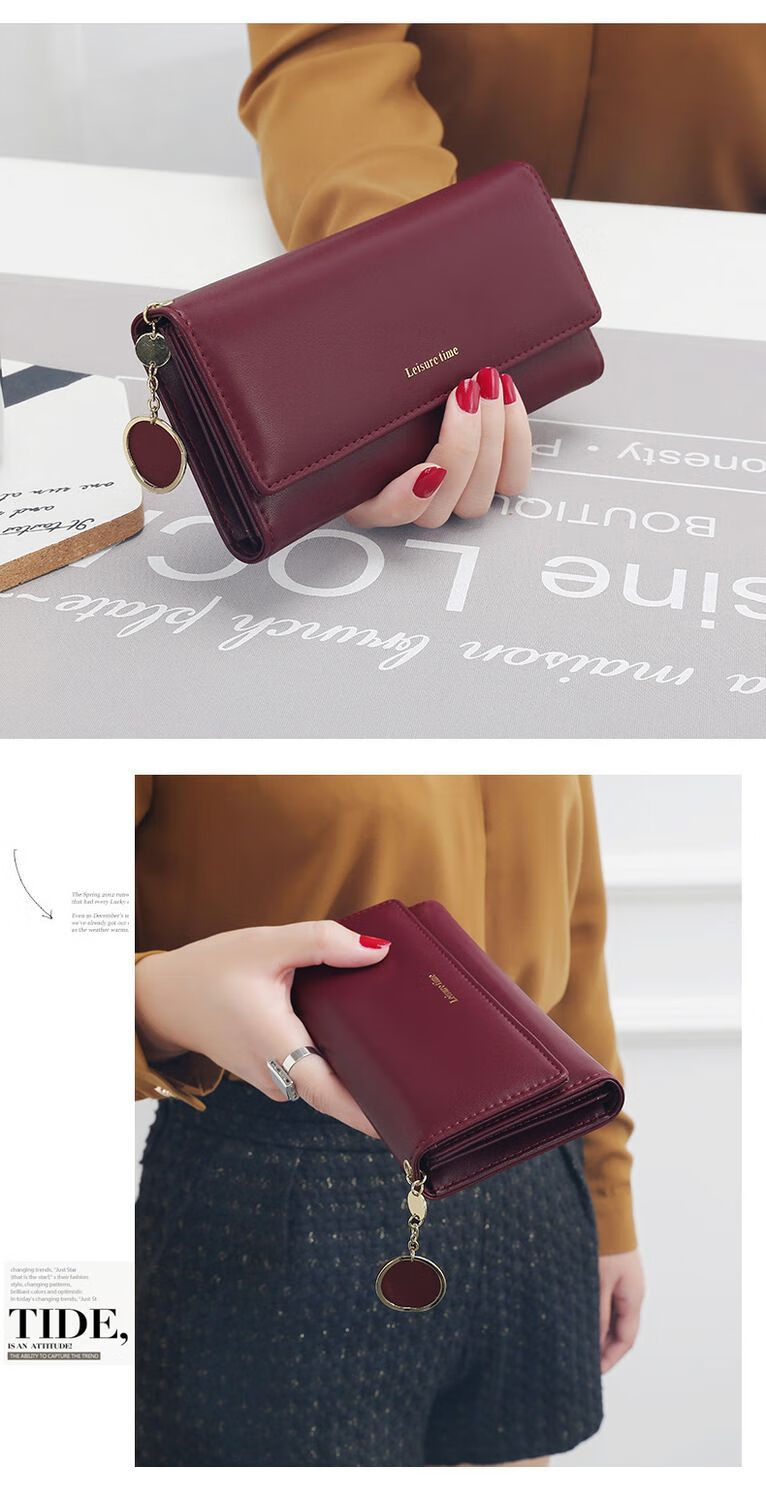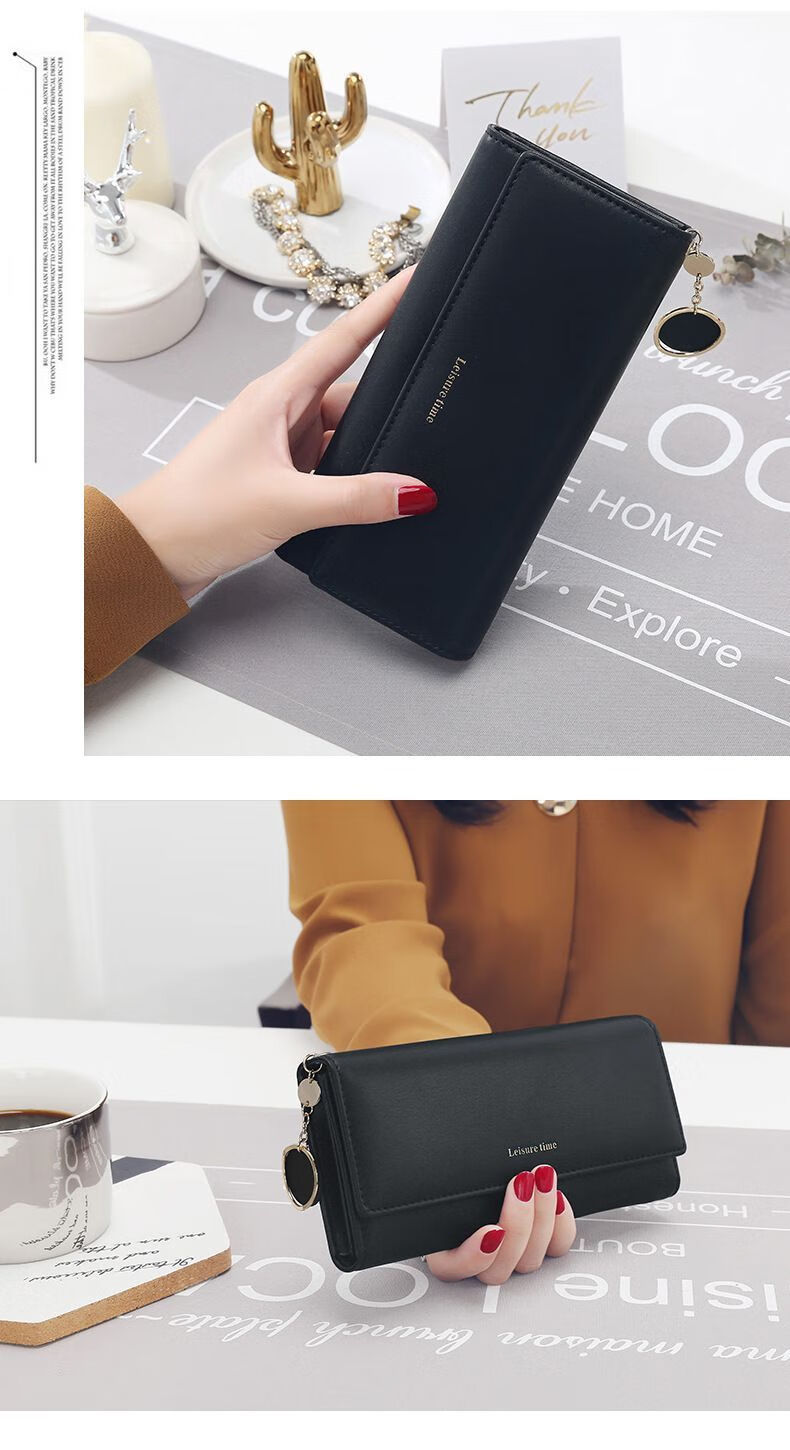 Youguan Wallet Women's Ins Style Long Clutch Women's High-end Wallet Personalized Pendant Small Fresh Multifunctional Wallet Black