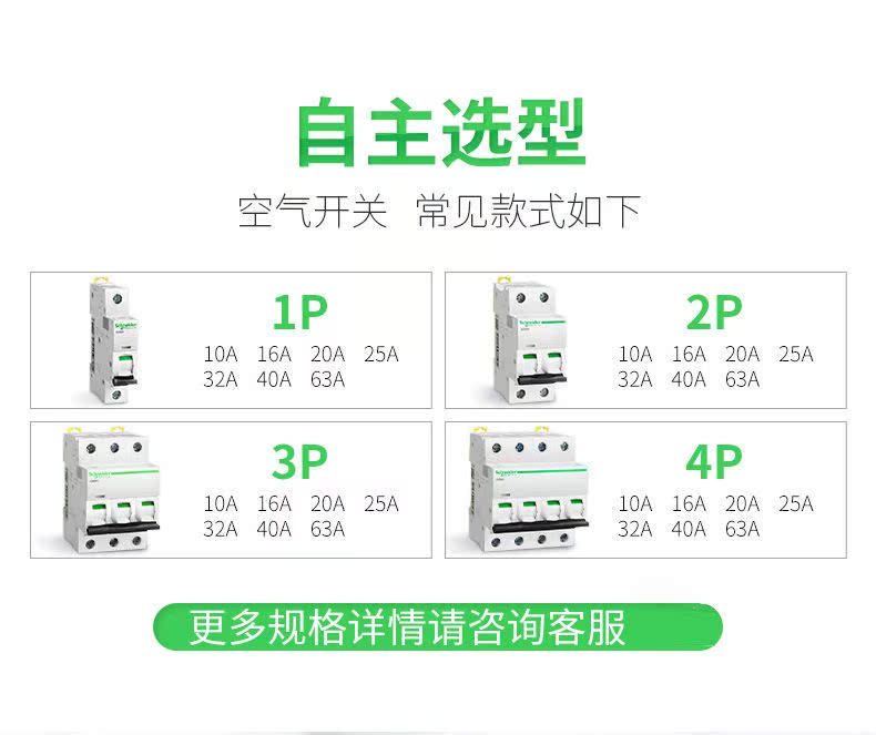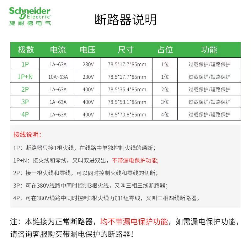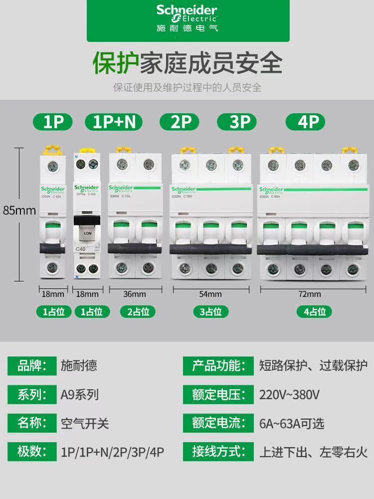 Schneider circuit breaker IC65NC type D type air switch 2P3P4PC type D type household 16A20A32A63A type C 6A 3P