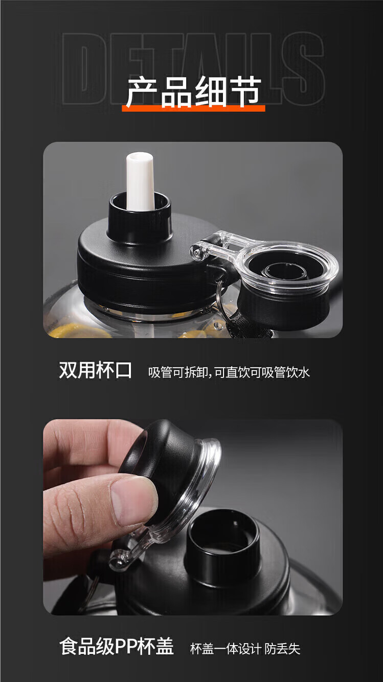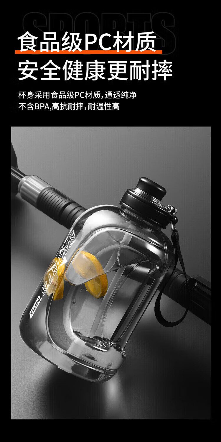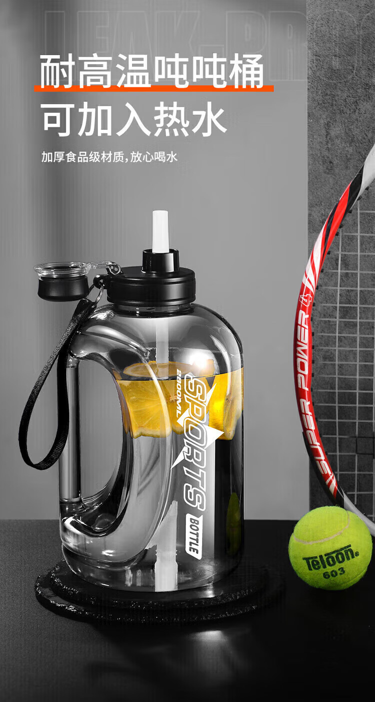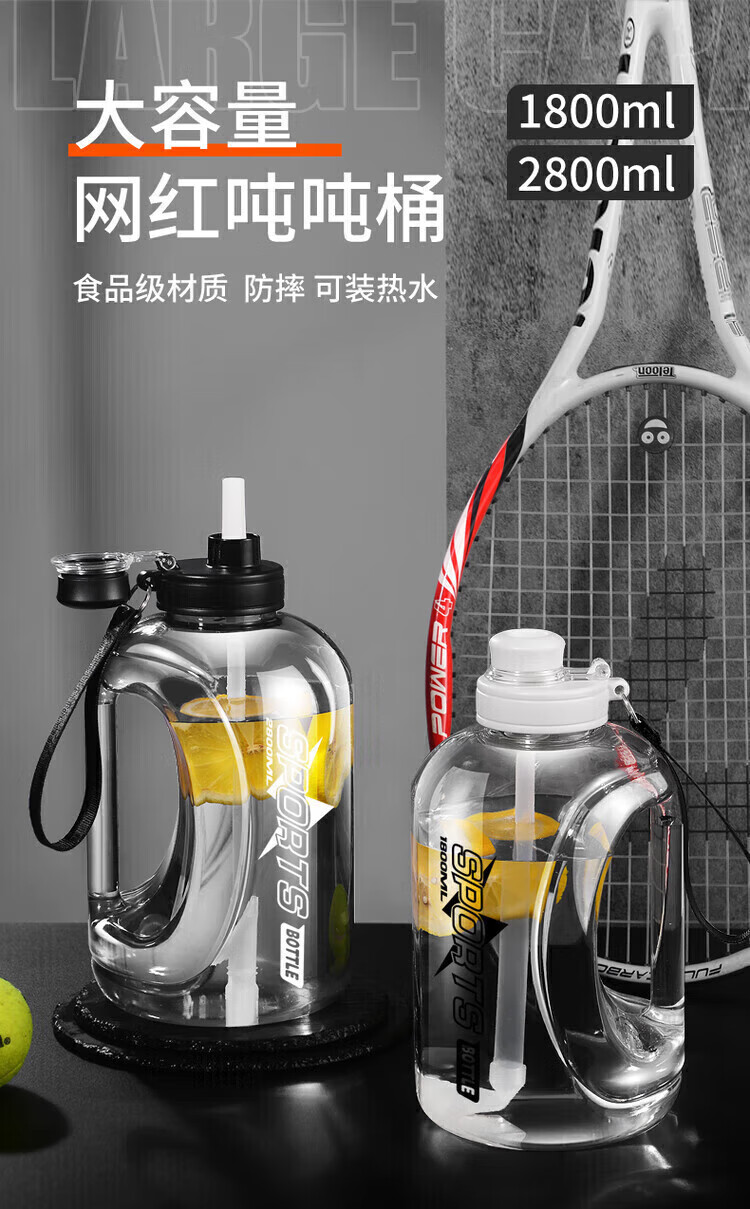 Fat Donglai Large Capacity Water Cup Men's Sports and Fitness Water Bottle Tons High Temperature Resistant Space Cup Big Belly Cup Same Style Midea Gray-1000ml