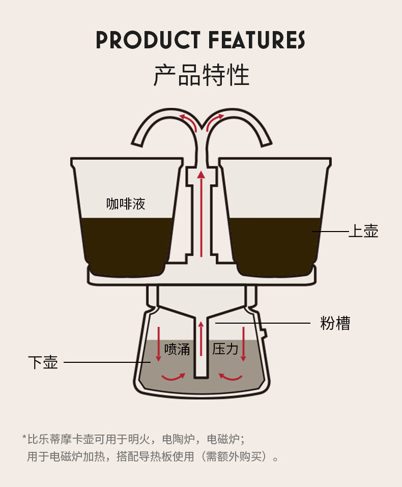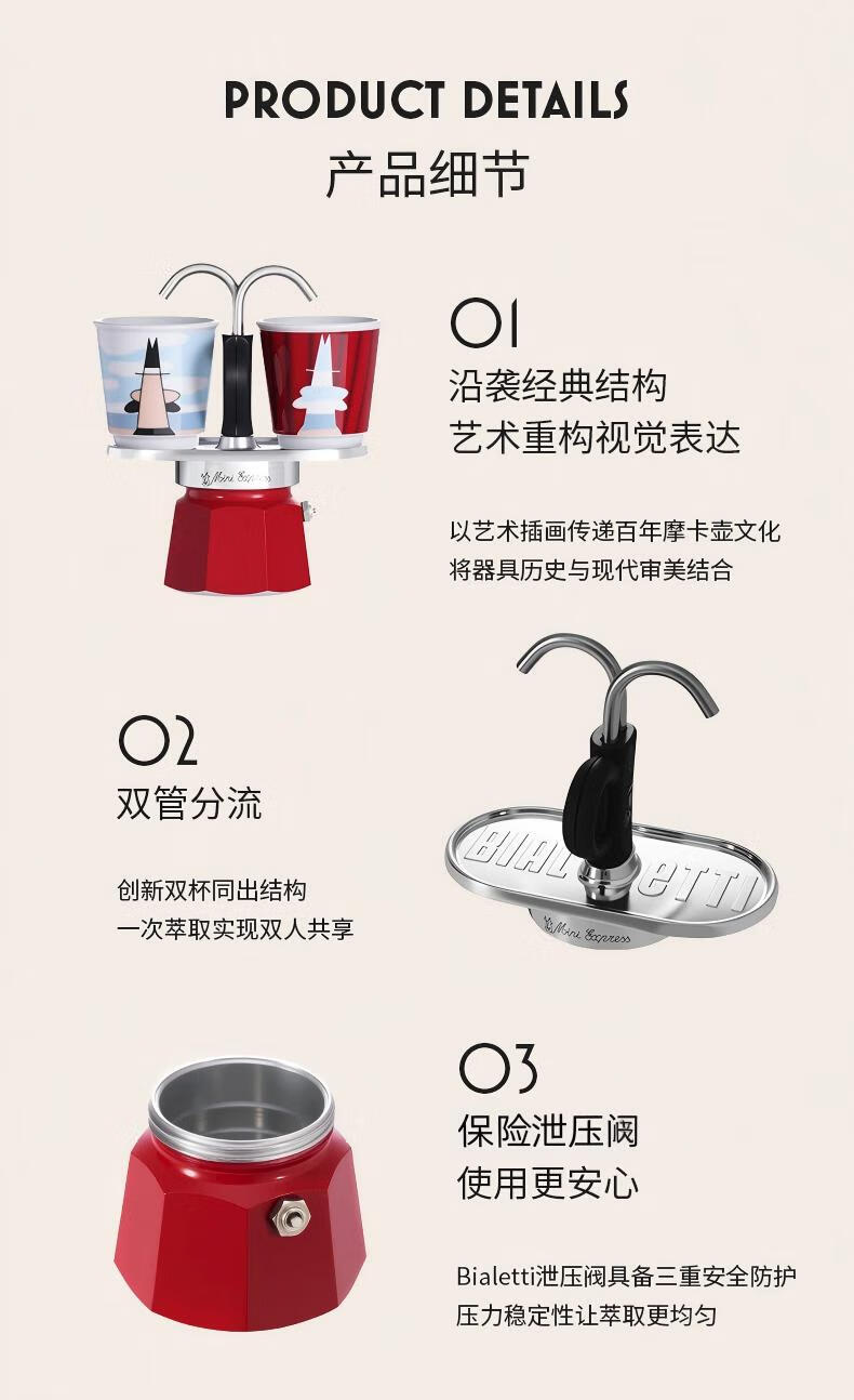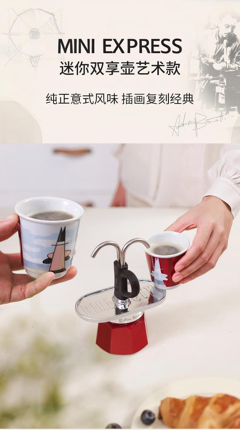 Bileti Double Enjoy Art Moka Pot Italian American Coffee Machine Home Hand-brewed Coffee Pot New Year Gift Artistic Style Red