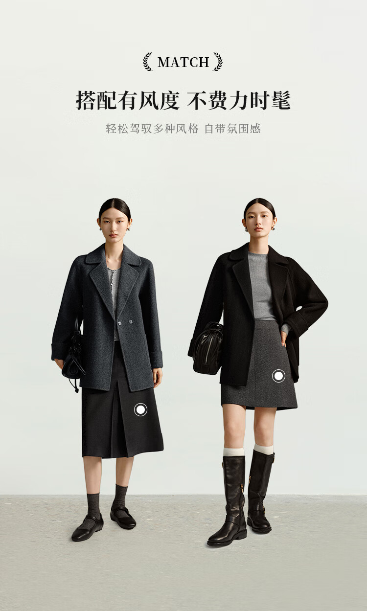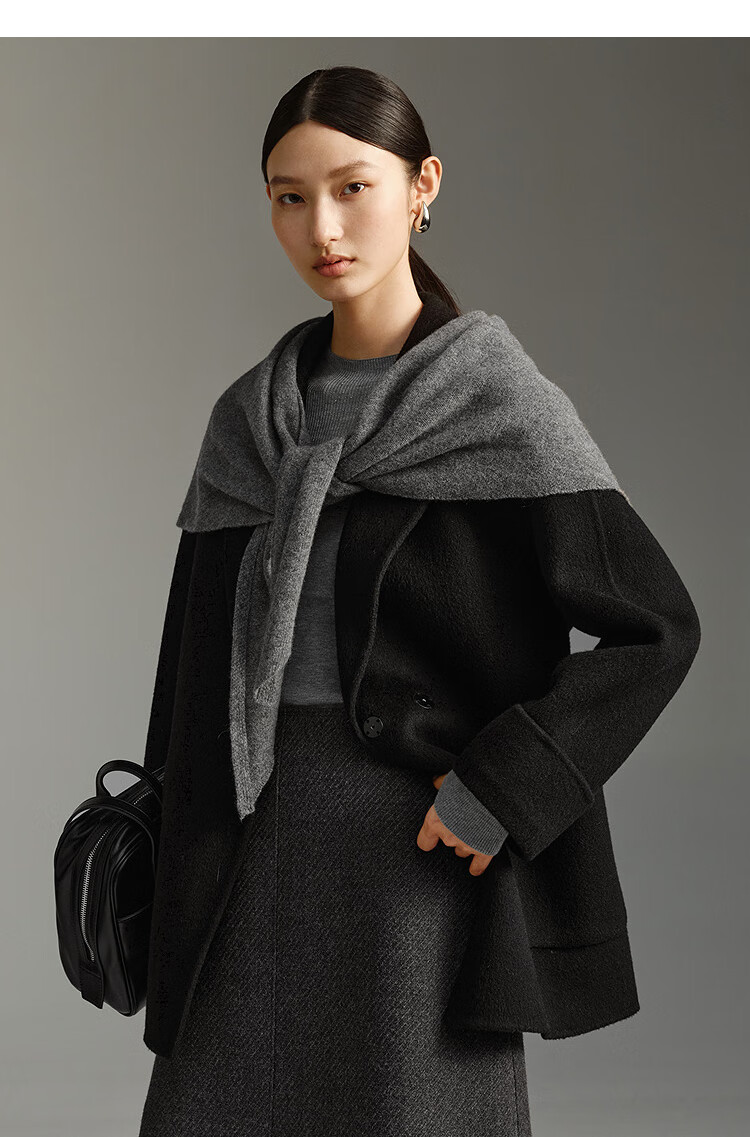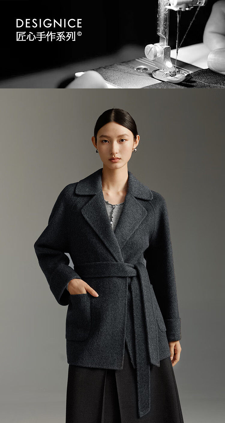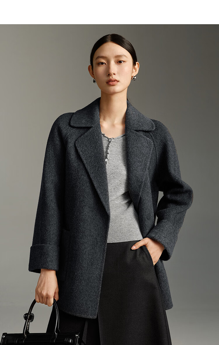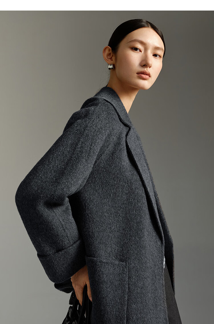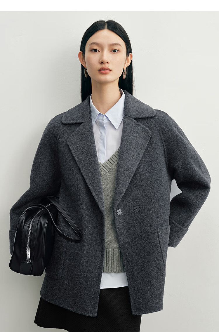 DESIGNICE 2025 winter new smart commuting temperament loose wool coat long-sleeved woolen coat for women extreme gray S