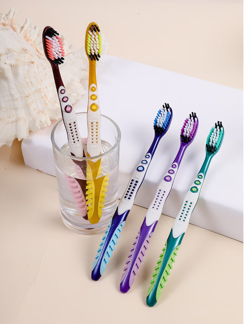 Hard-bristled toothbrush in travel accessories, household adult toothbrush, high-end individually packaged wavy brush filament, universal travel hard-bristled toothbrush - random color - 10 pieces