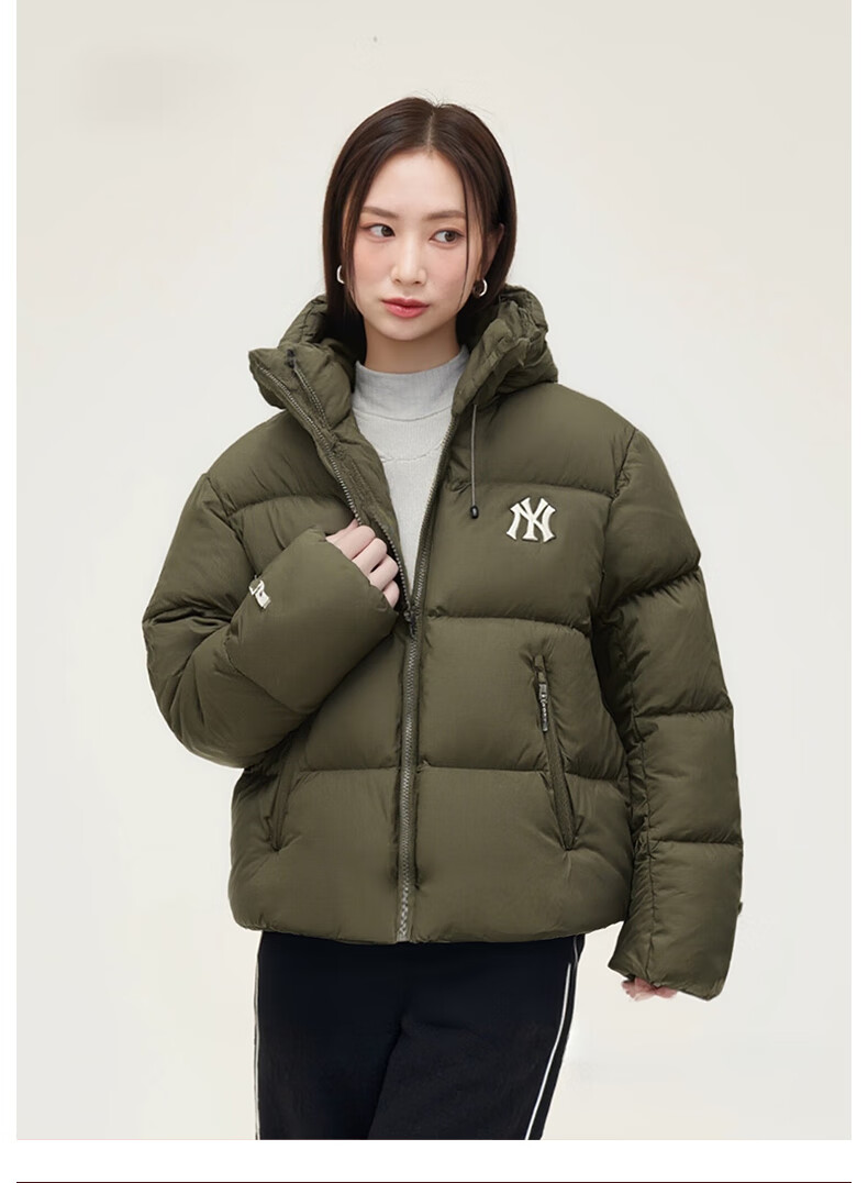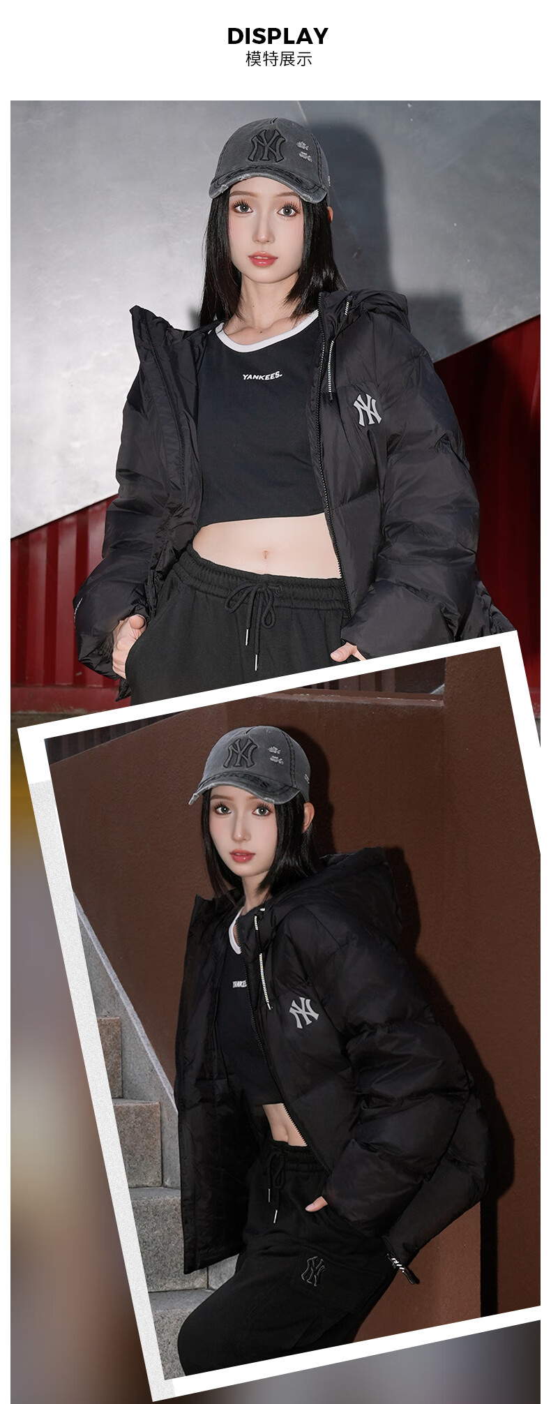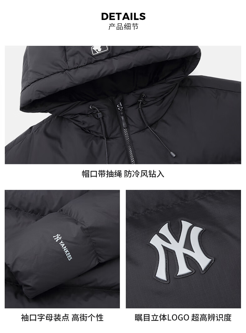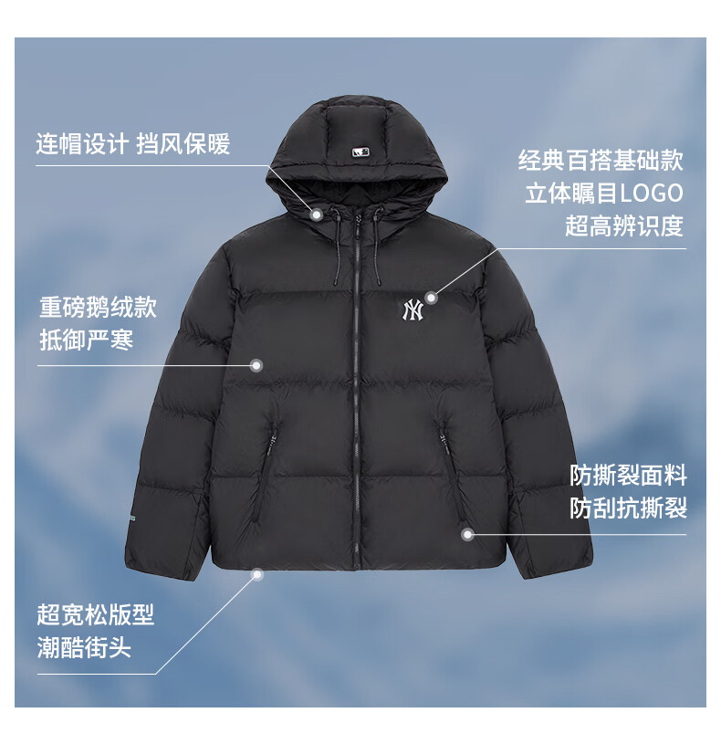 MLB Official Fashionable and Versatile Atmosphere Hooded Goose Down Down Jacket for Men and Women Couples 25 Autumn and Winter New DJB40 New York Yankees/Black M (It is recommended to take one size smaller)