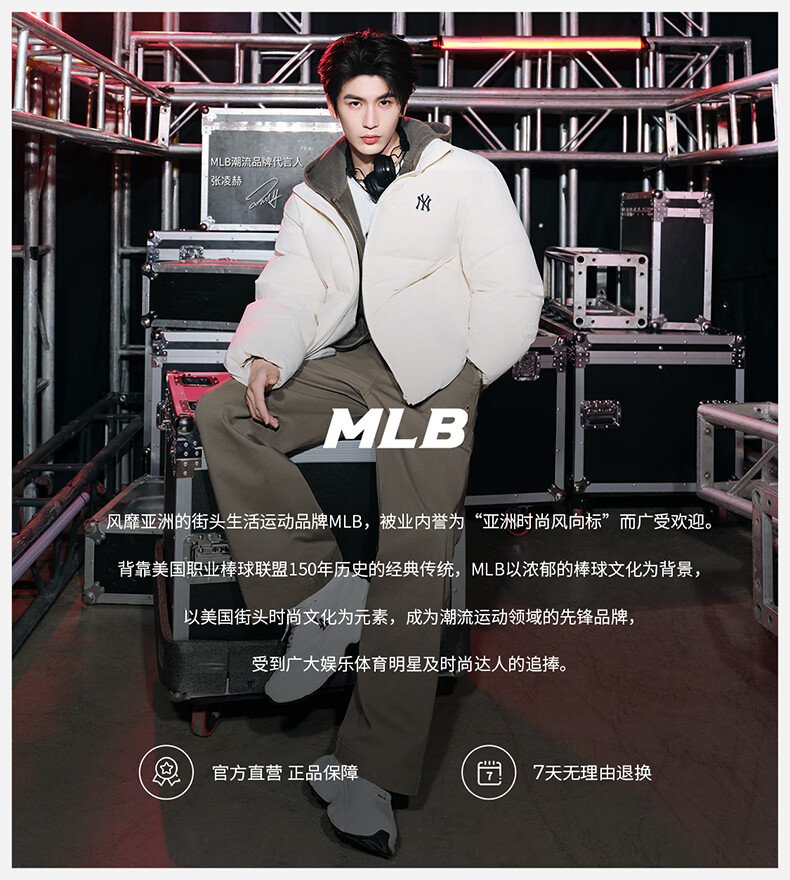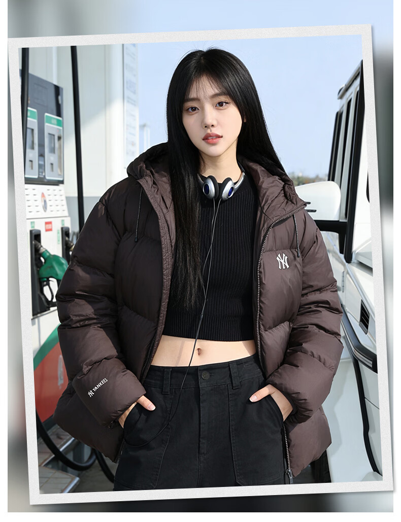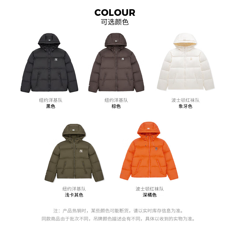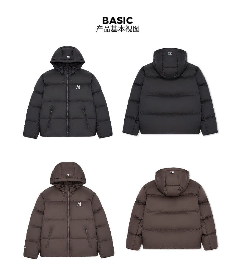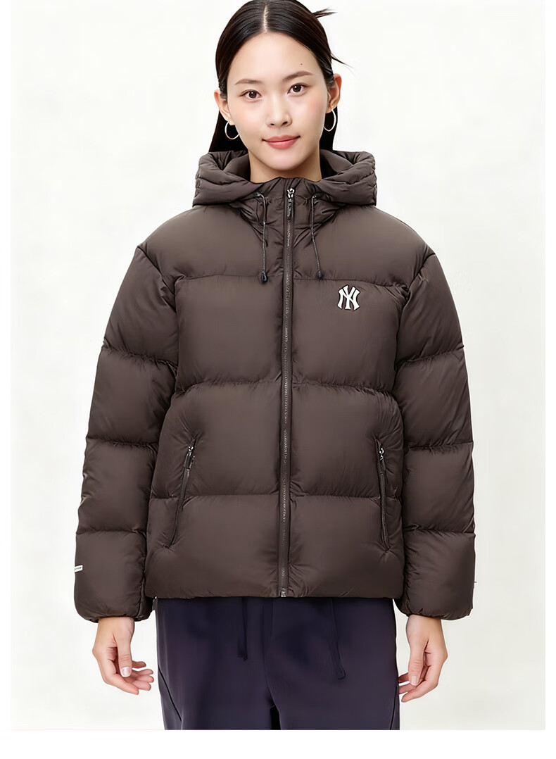 MLB Official Fashionable and Versatile Atmosphere Hooded Goose Down Down Jacket for Men and Women Couples 25 Autumn and Winter New DJB40 New York Yankees/Black M (It is recommended to take one size smaller)